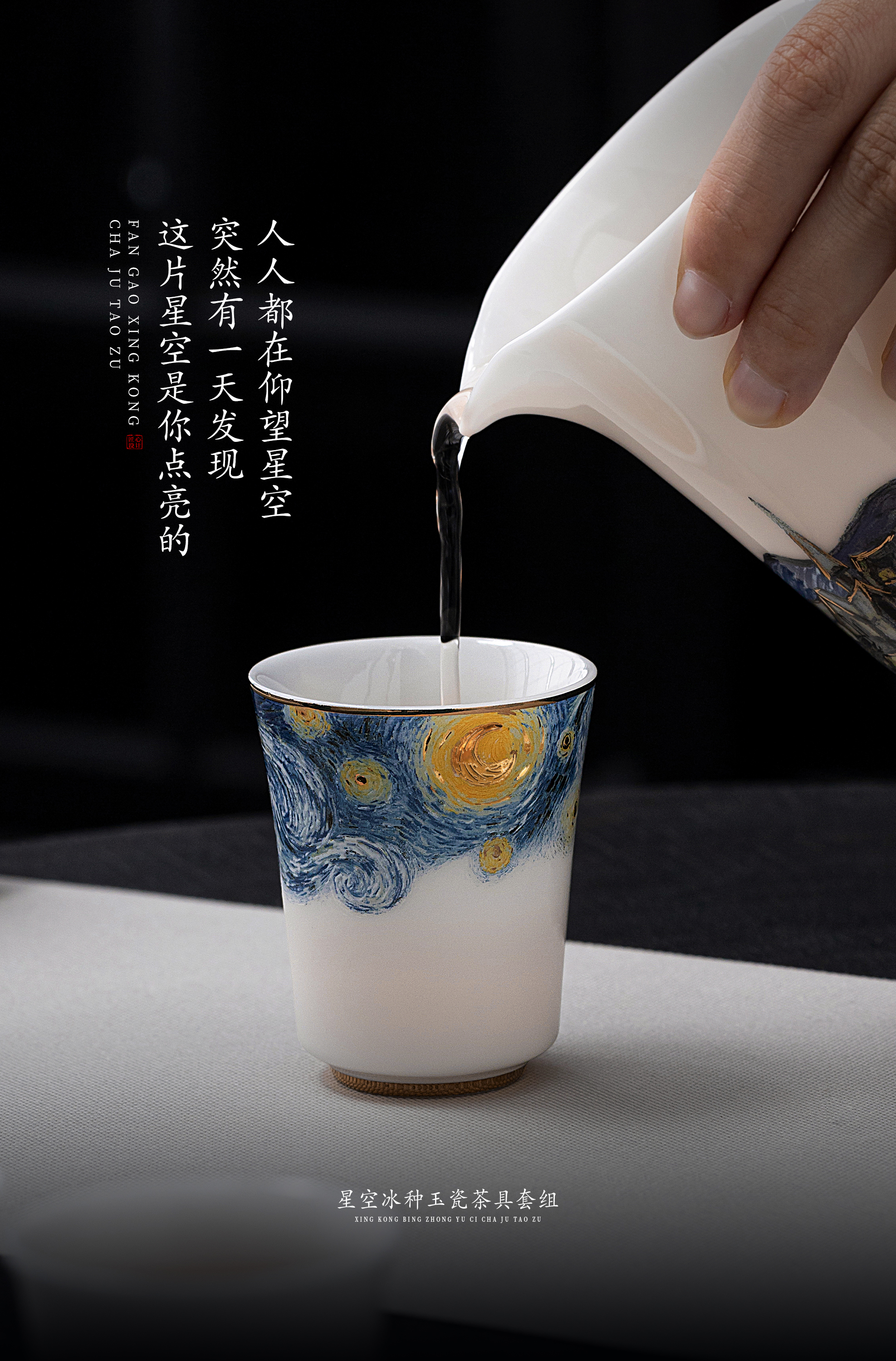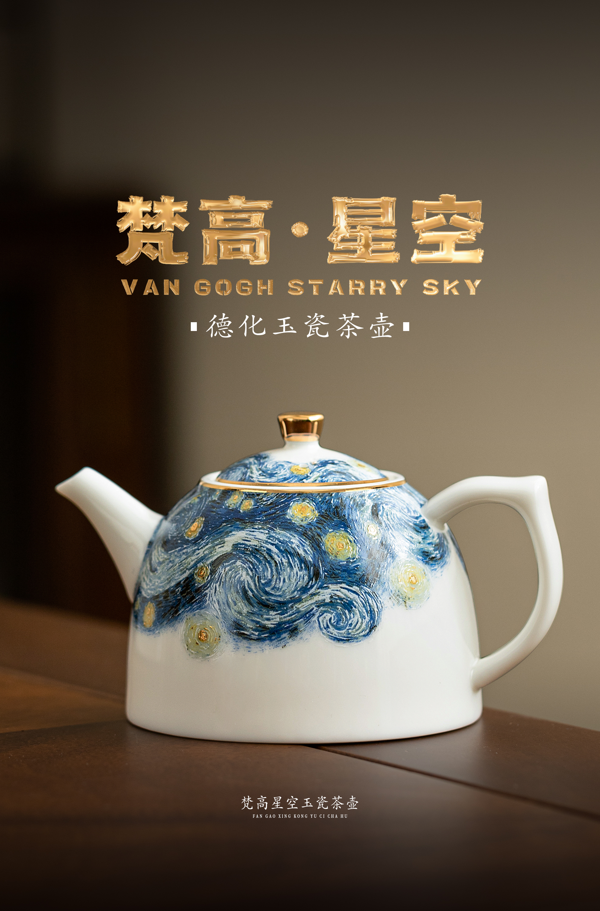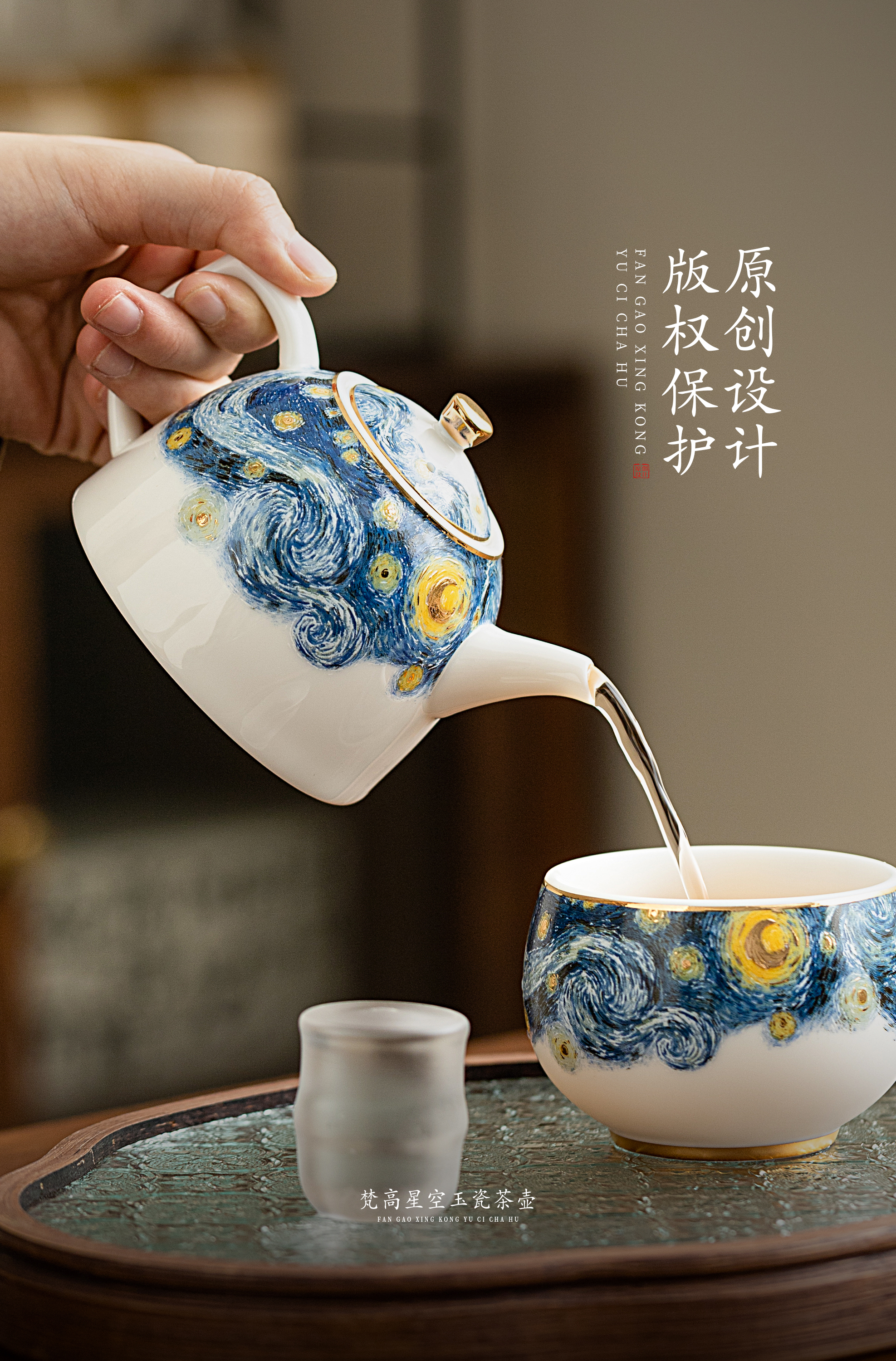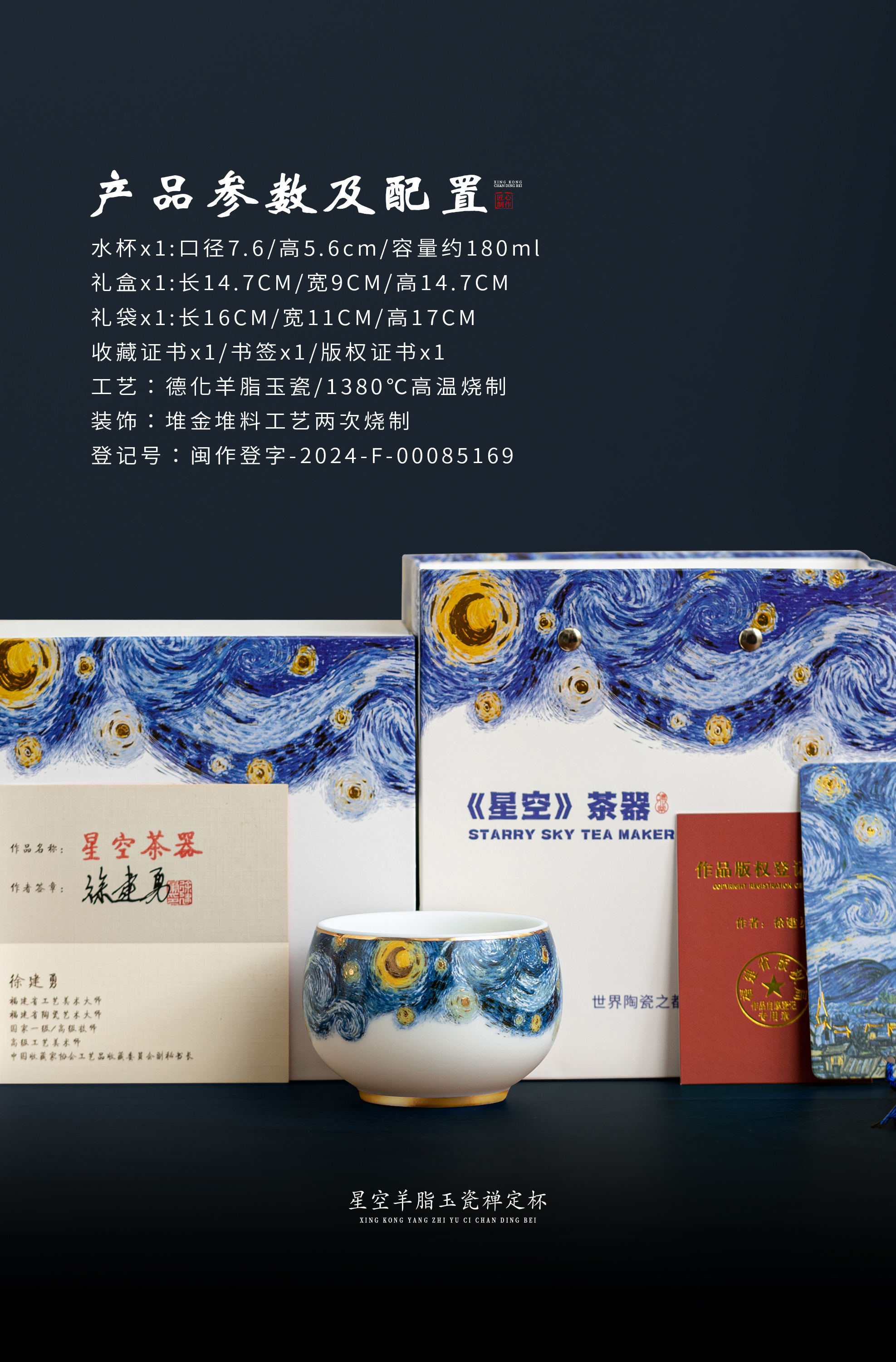 【梵高.星空】器具系列茶具套组、禅定杯、茶壶、咖啡杯,冰种玉瓷\羊脂玉瓷 温润如玉,堆金工艺 触感立体,精美包装 gao端好礼