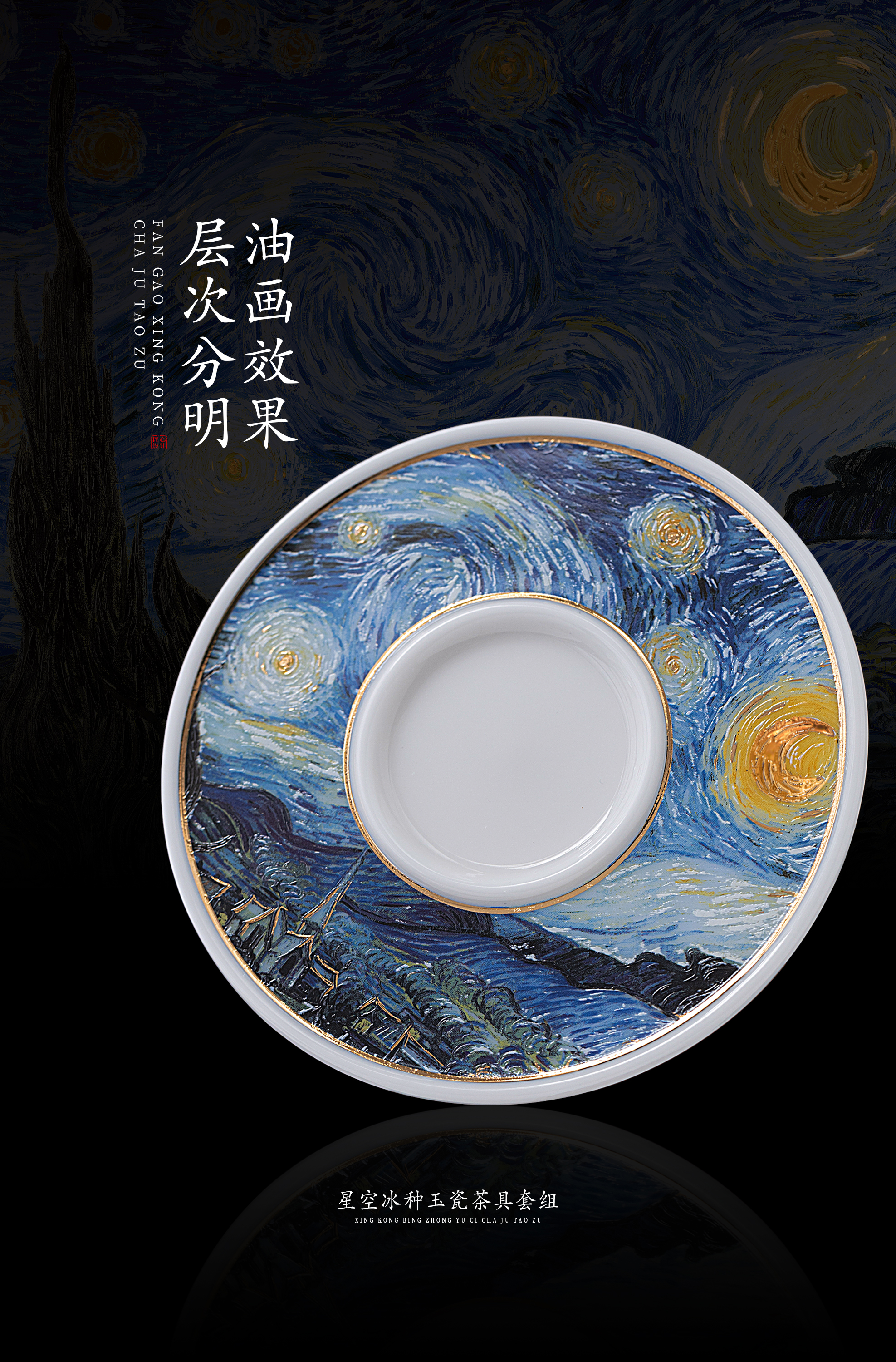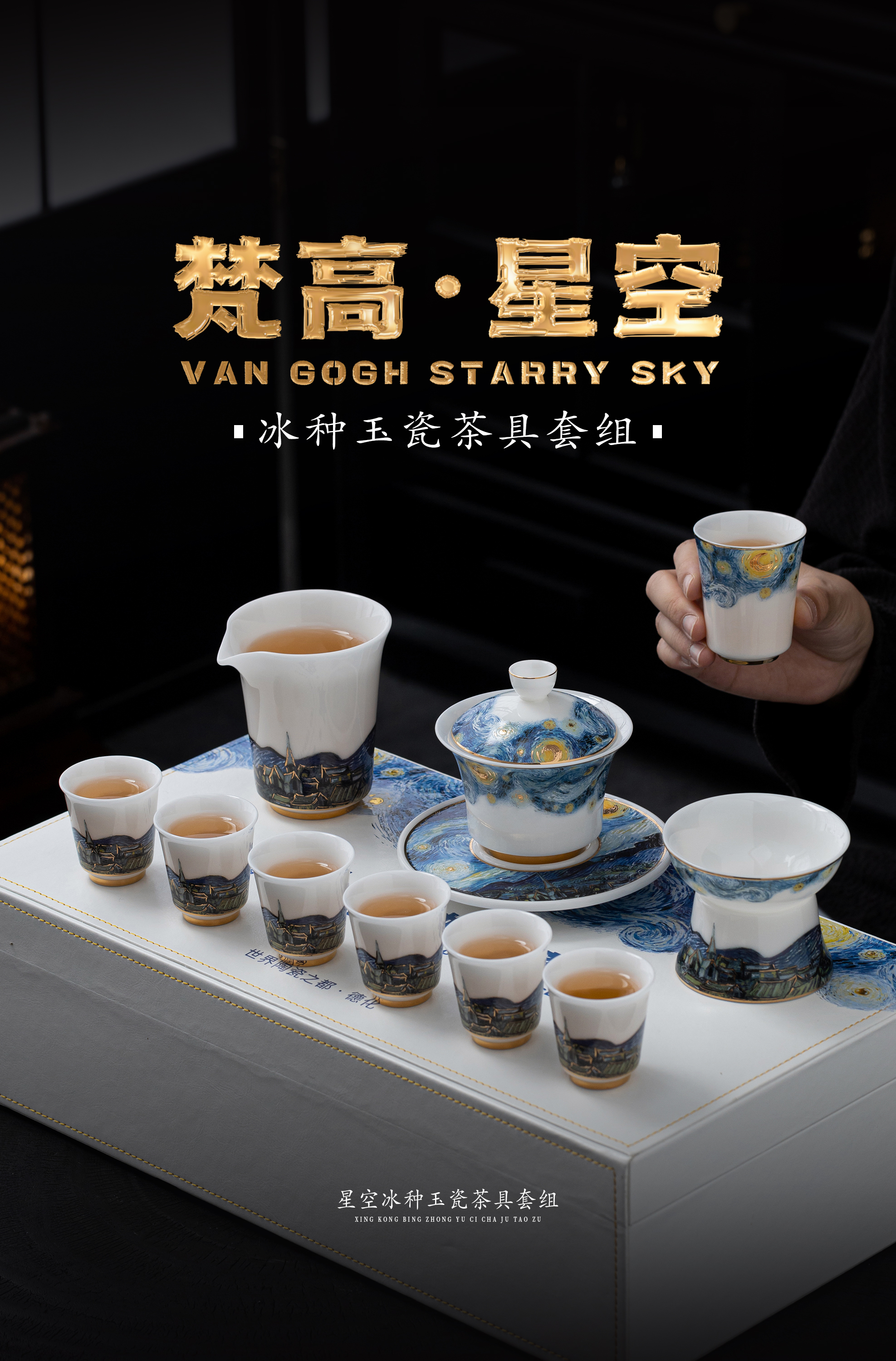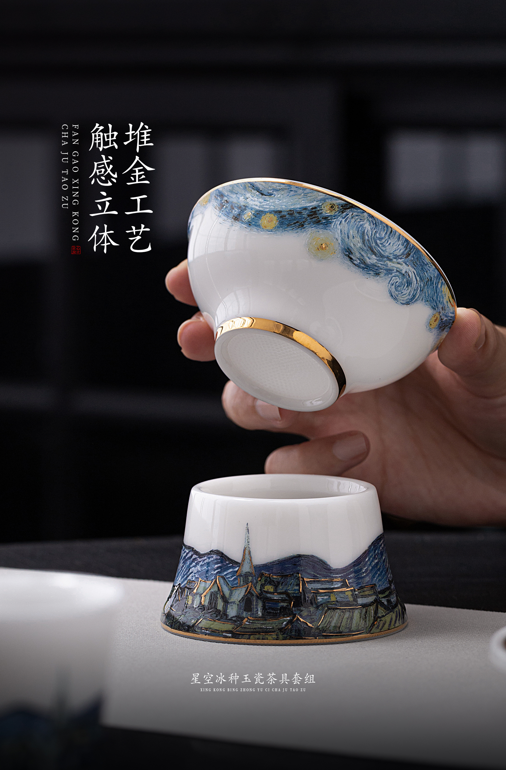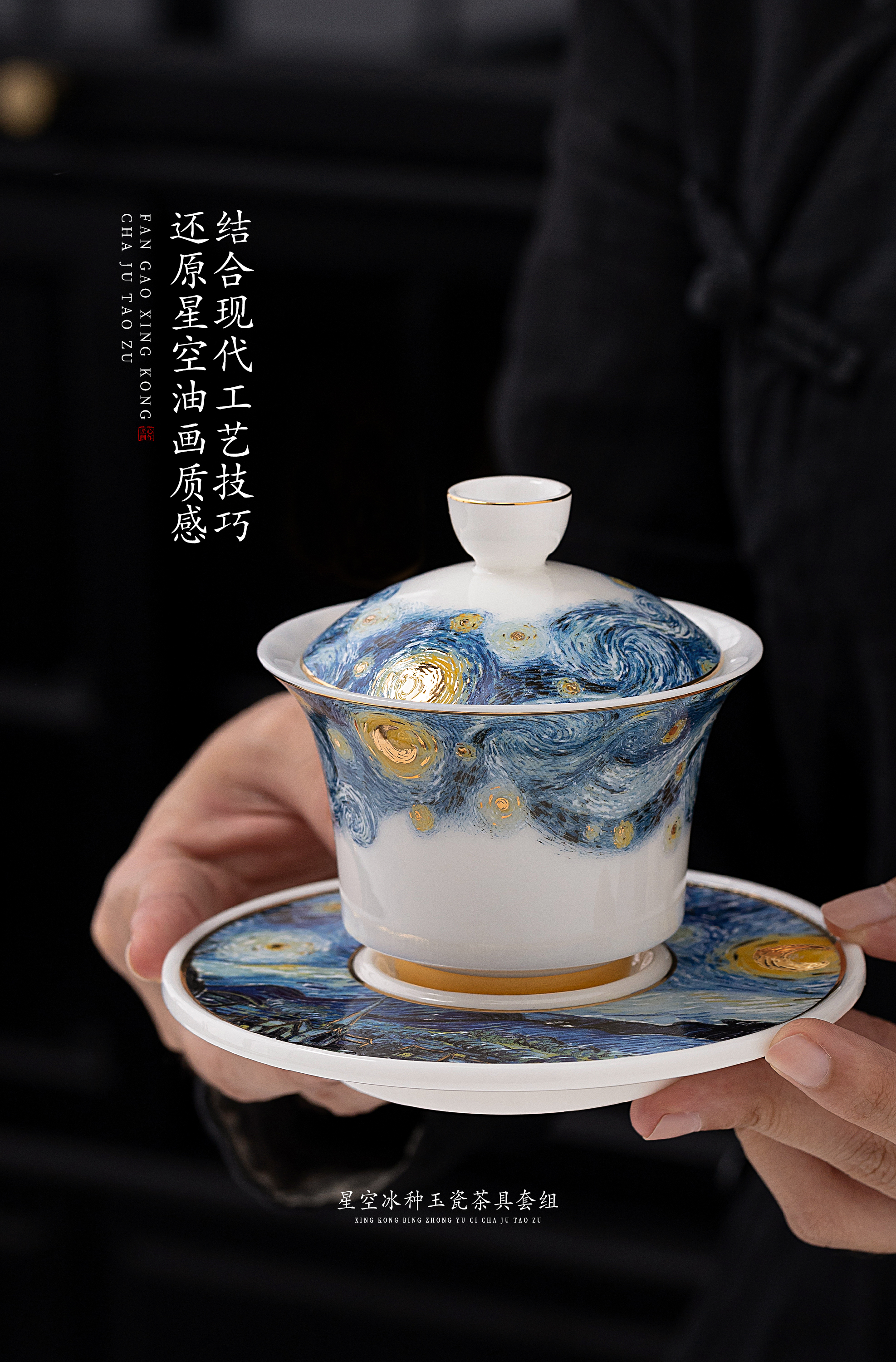 【梵高.星空】器具系列茶具套组、禅定杯、茶壶、咖啡杯,冰种玉瓷\羊脂玉瓷 温润如玉,堆金工艺 触感立体,精美包装 gao端好礼
