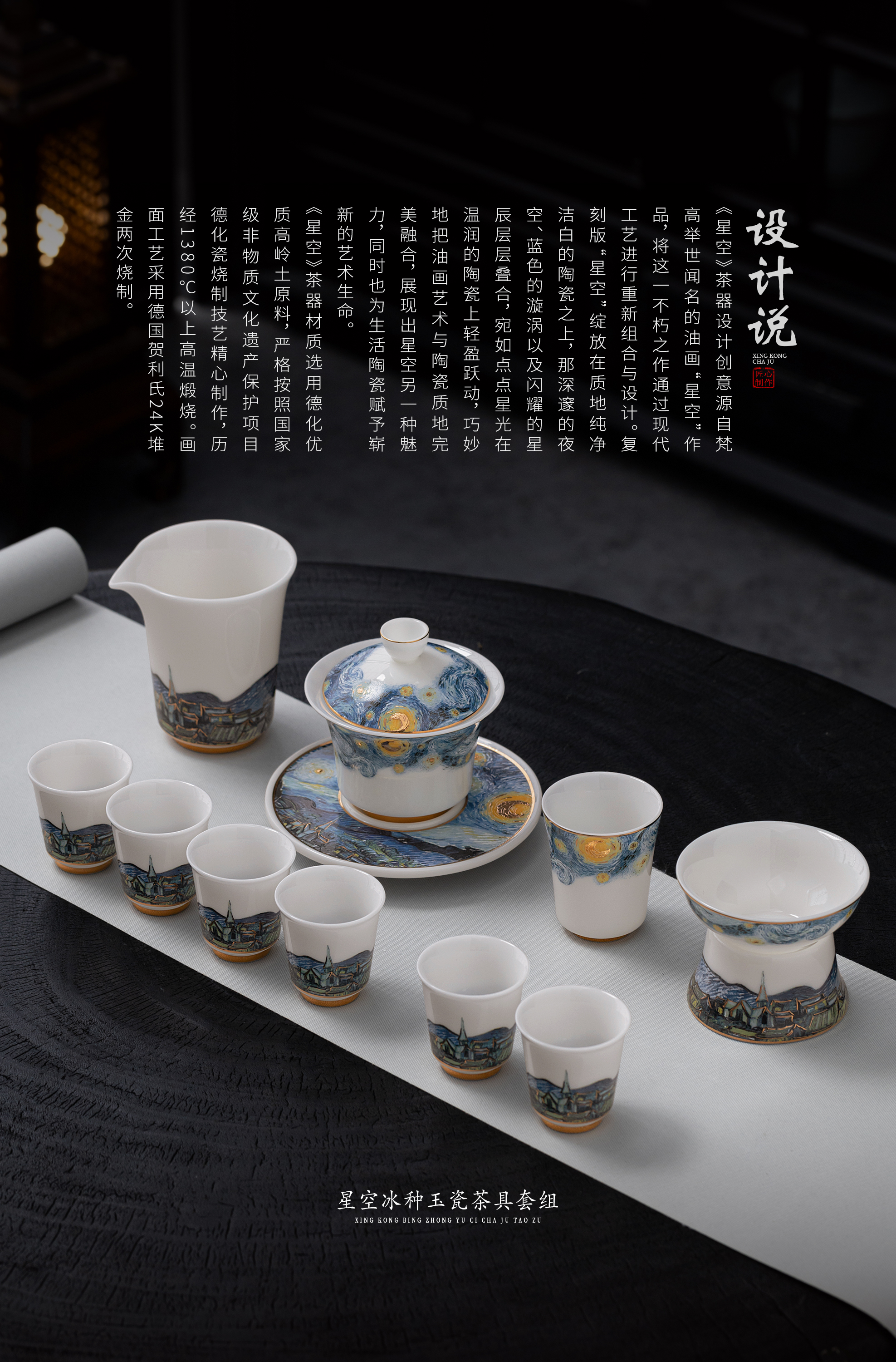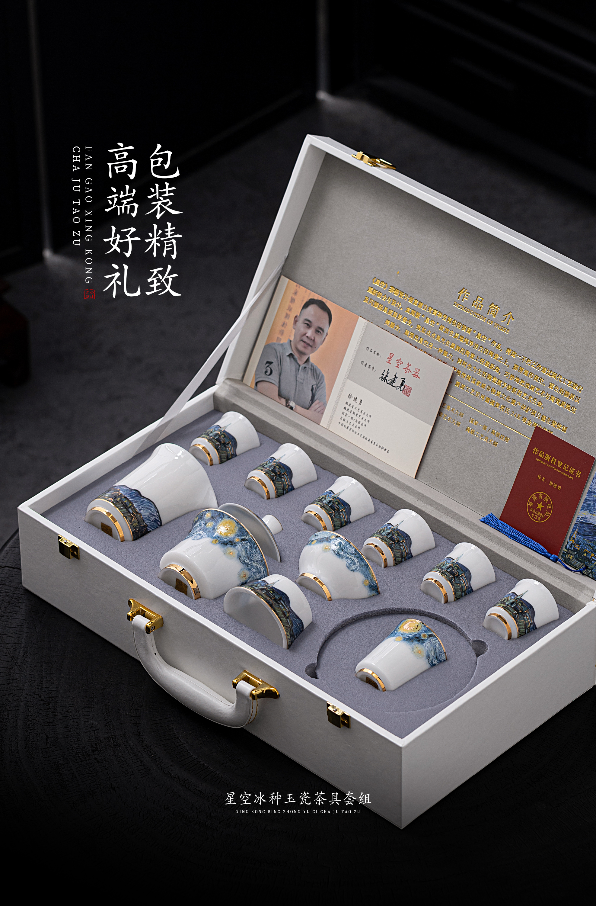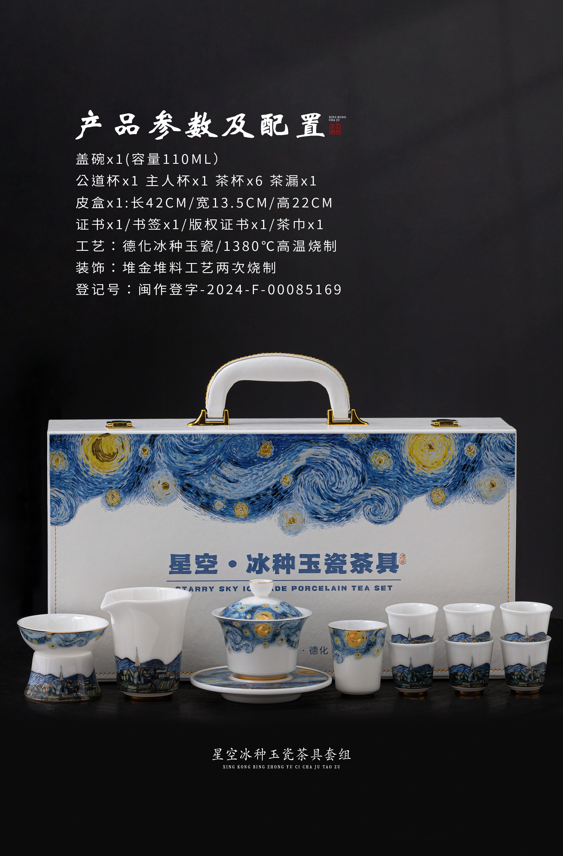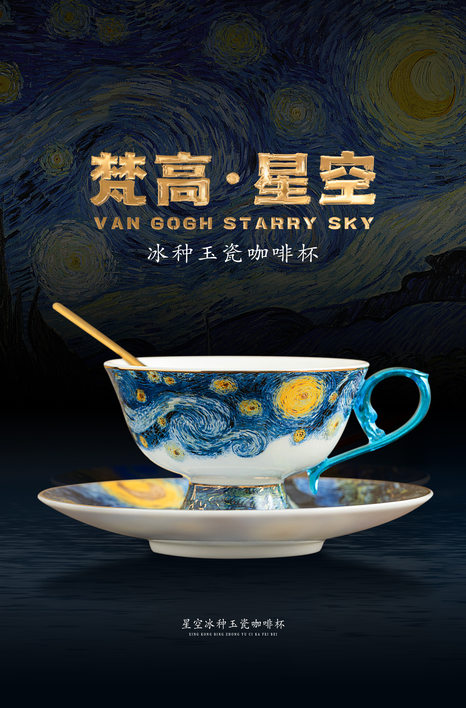 【梵高.星空】器具系列茶具套组、禅定杯、茶壶、咖啡杯,冰种玉瓷\羊脂玉瓷 温润如玉,堆金工艺 触感立体,精美包装 gao端好礼