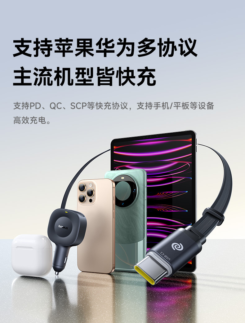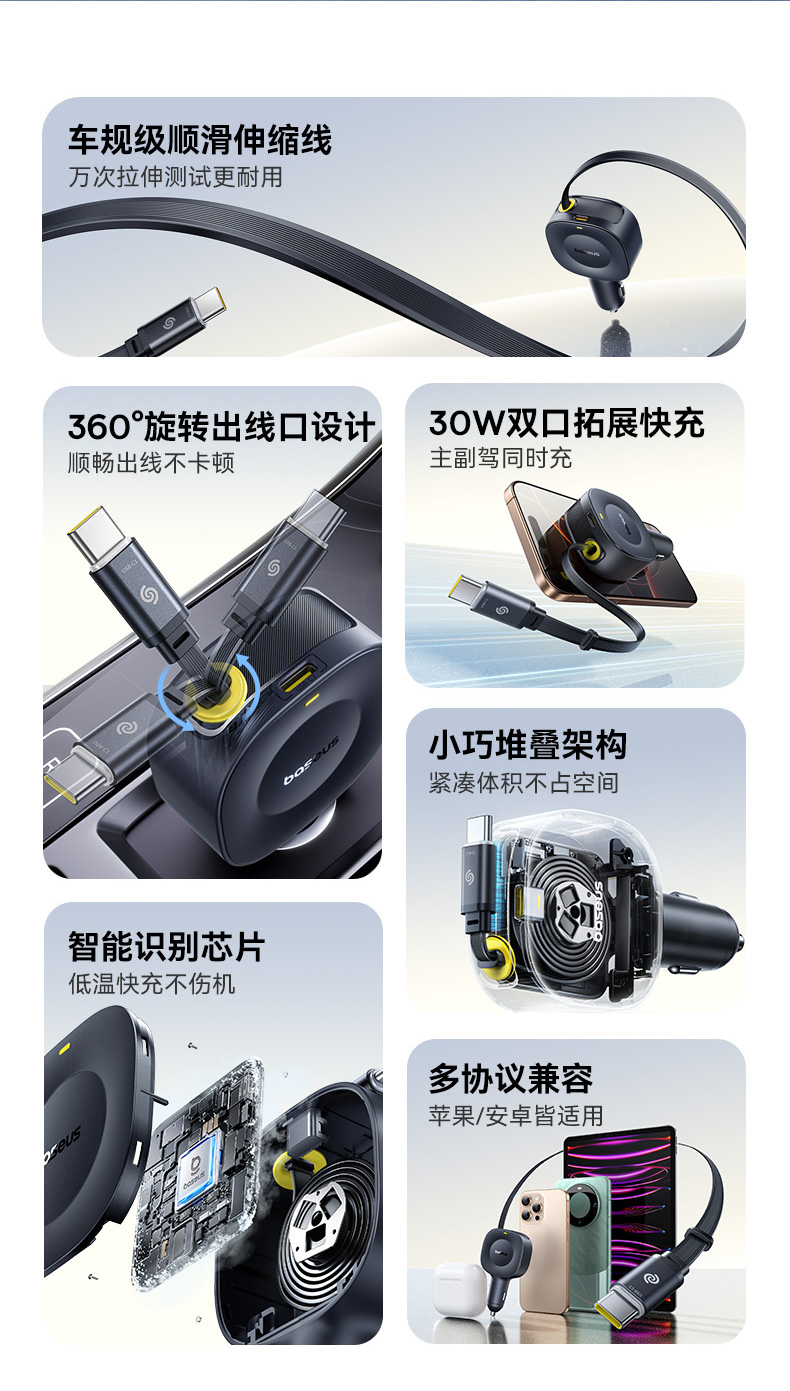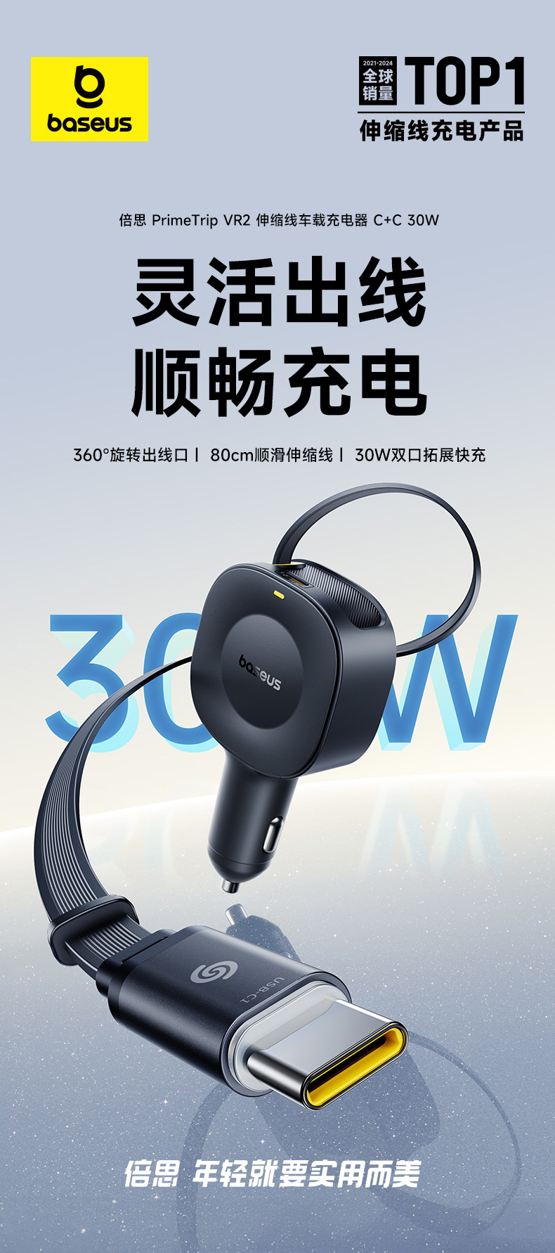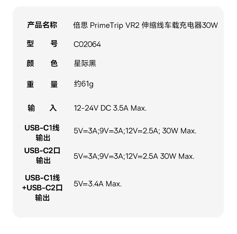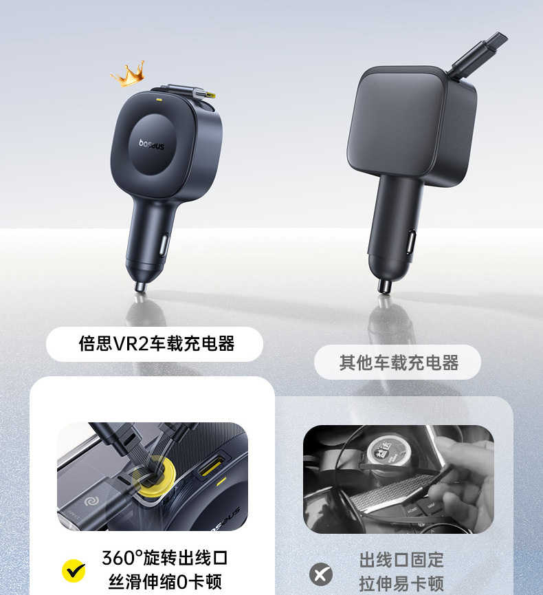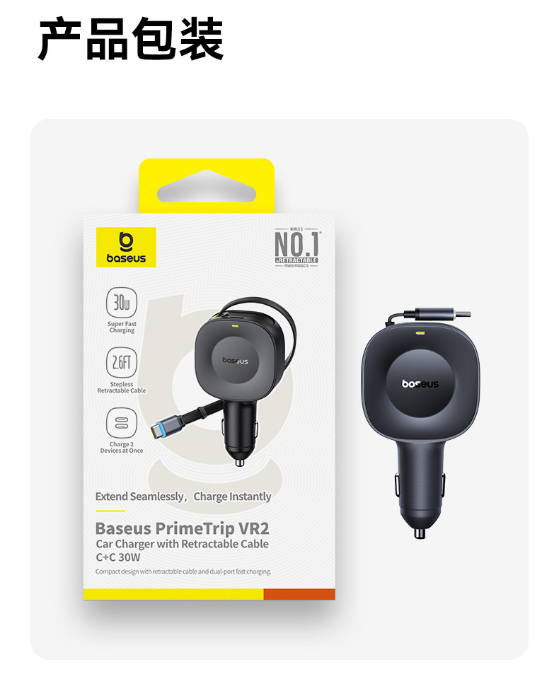 倍思 PrimeTrip VR2 伸缩线车载充电器