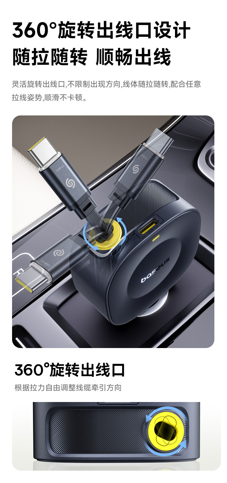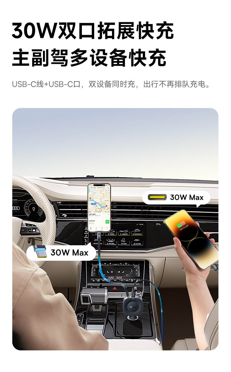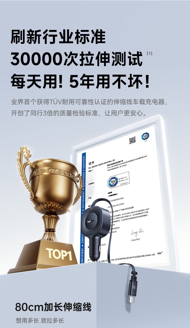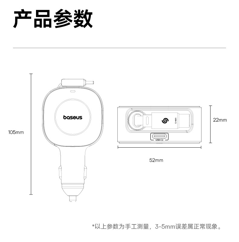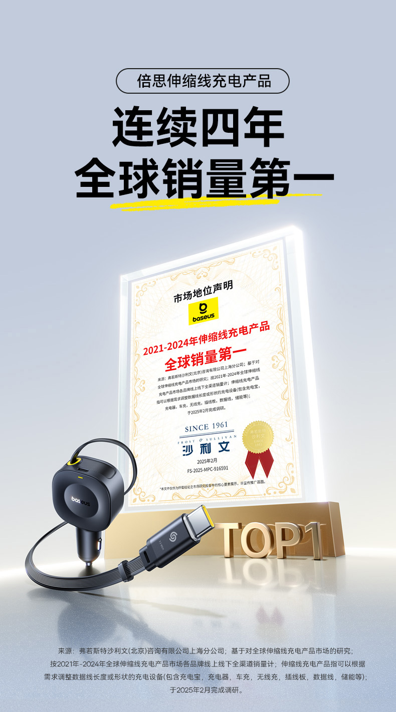 倍思 PrimeTrip VR2 伸缩线车载充电器