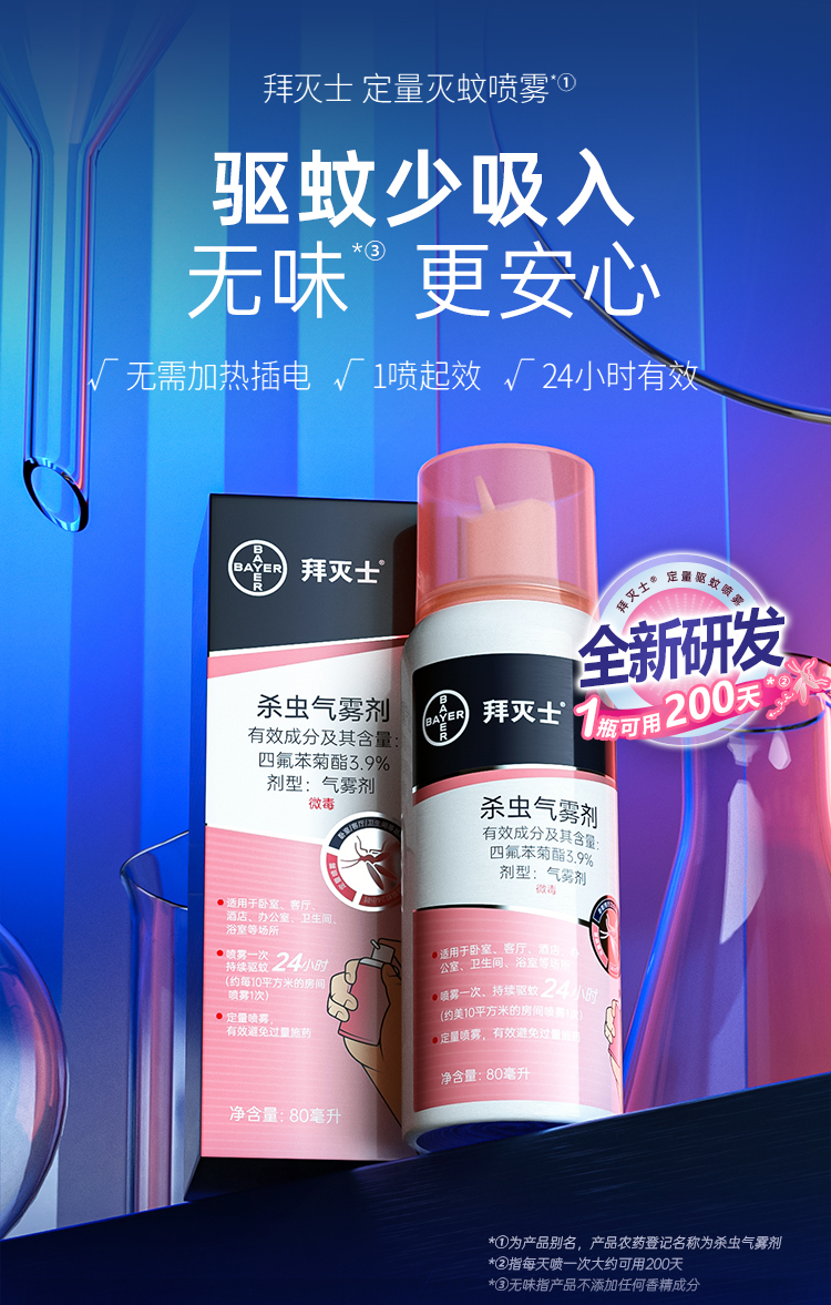 【驱蚊无发恼】 拜耳拜灭士驱蚊喷雾,创新型持续灭蚊气雾剂;无色无味无持续挥;小巧便捷,一喷即可发