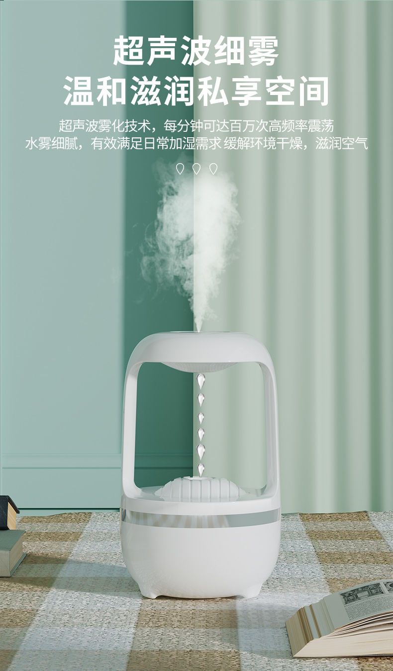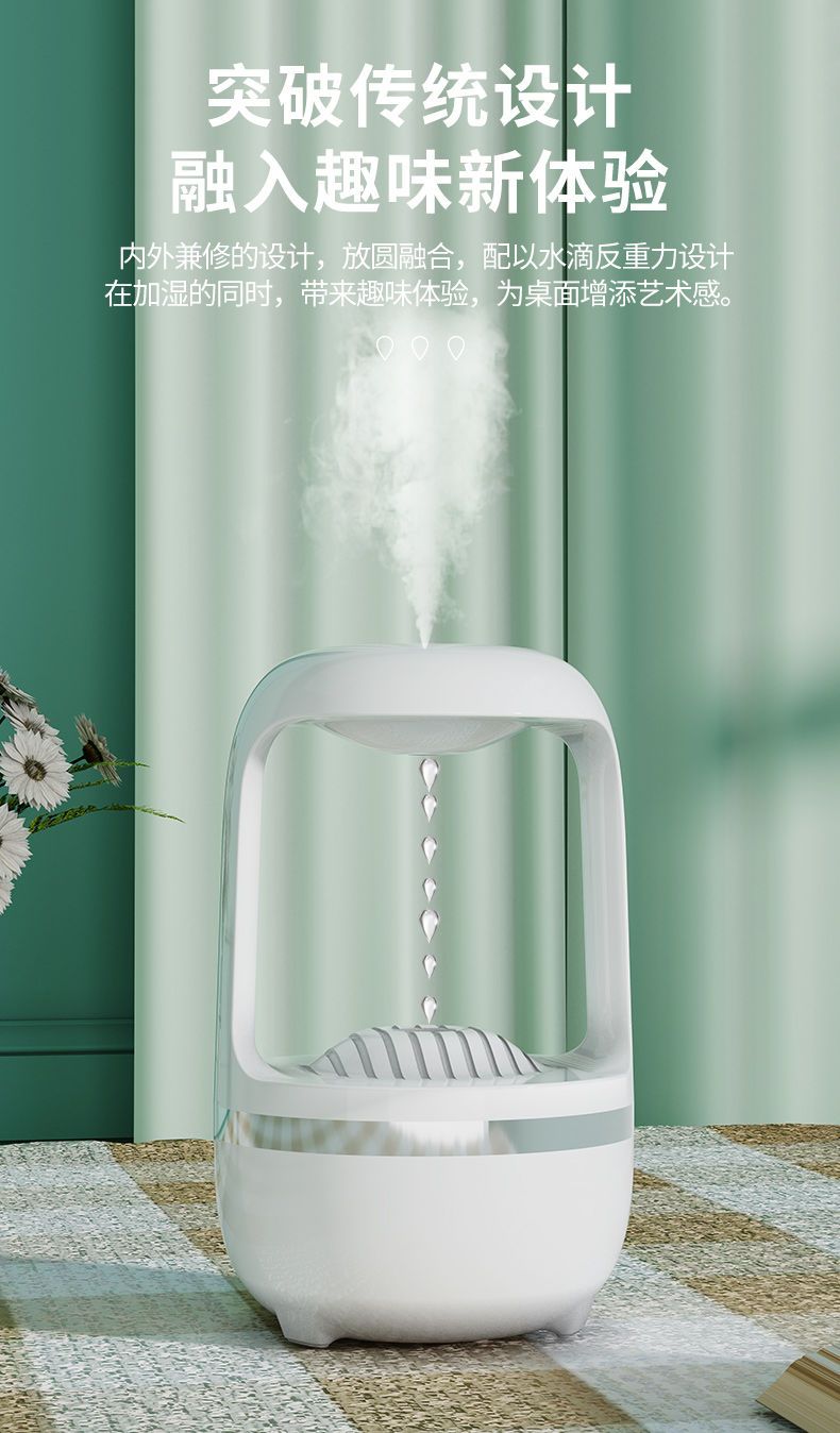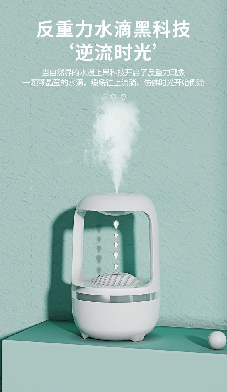 创意黑科技反重力水滴倒流加湿器家用静音卧室氛围灯小型大雾桌面