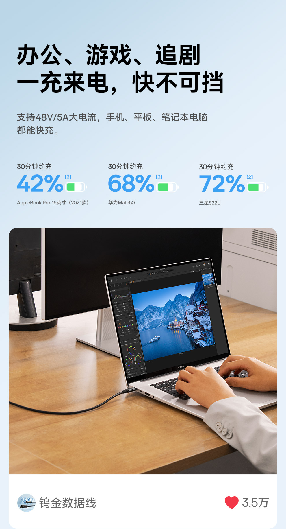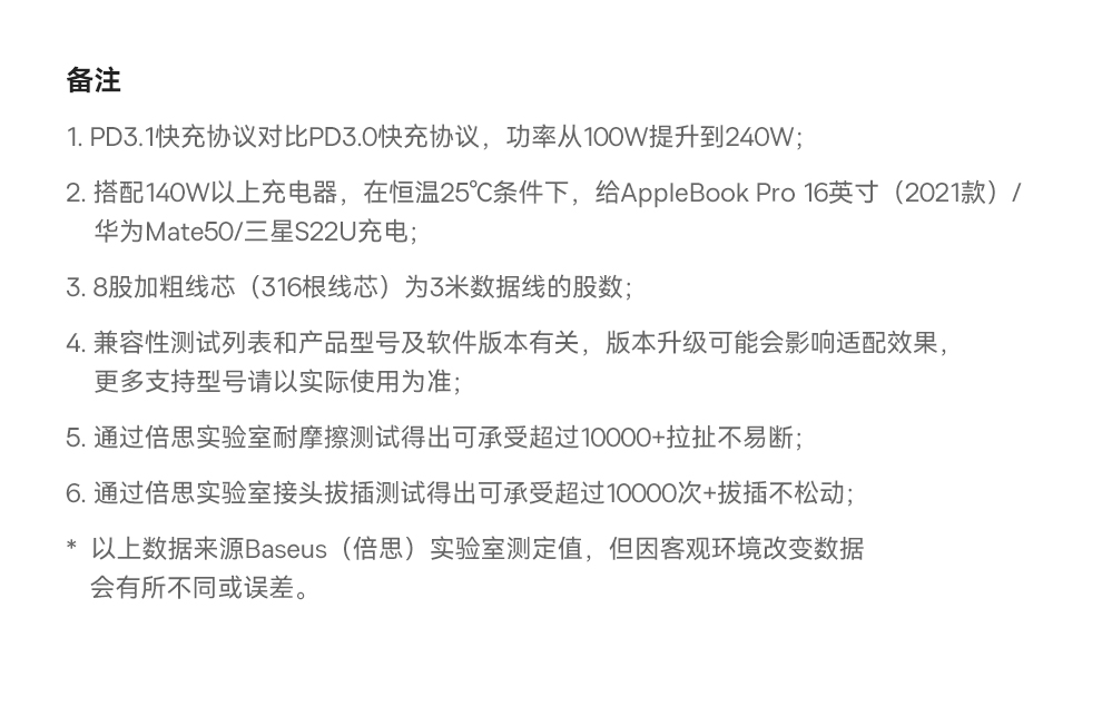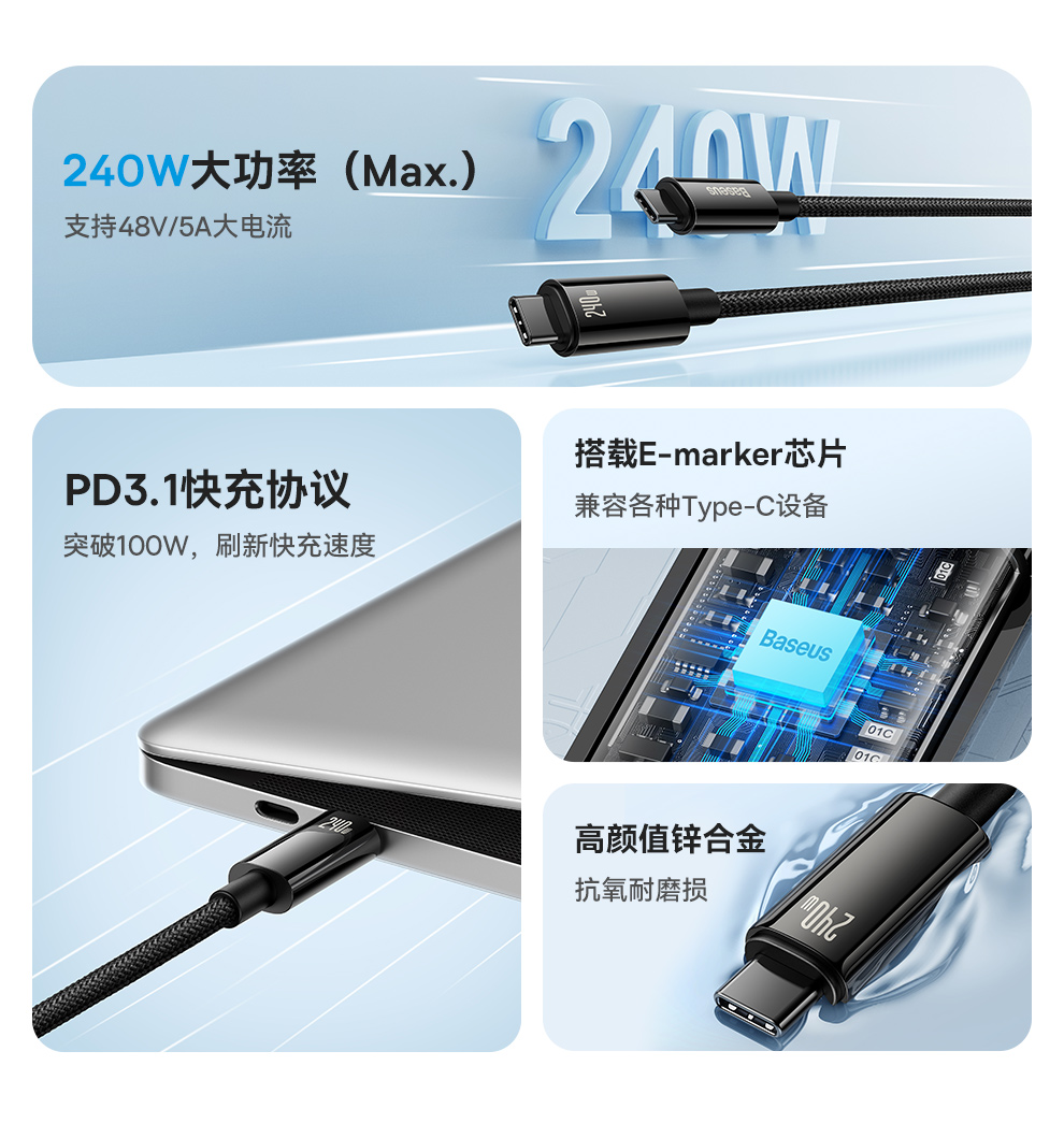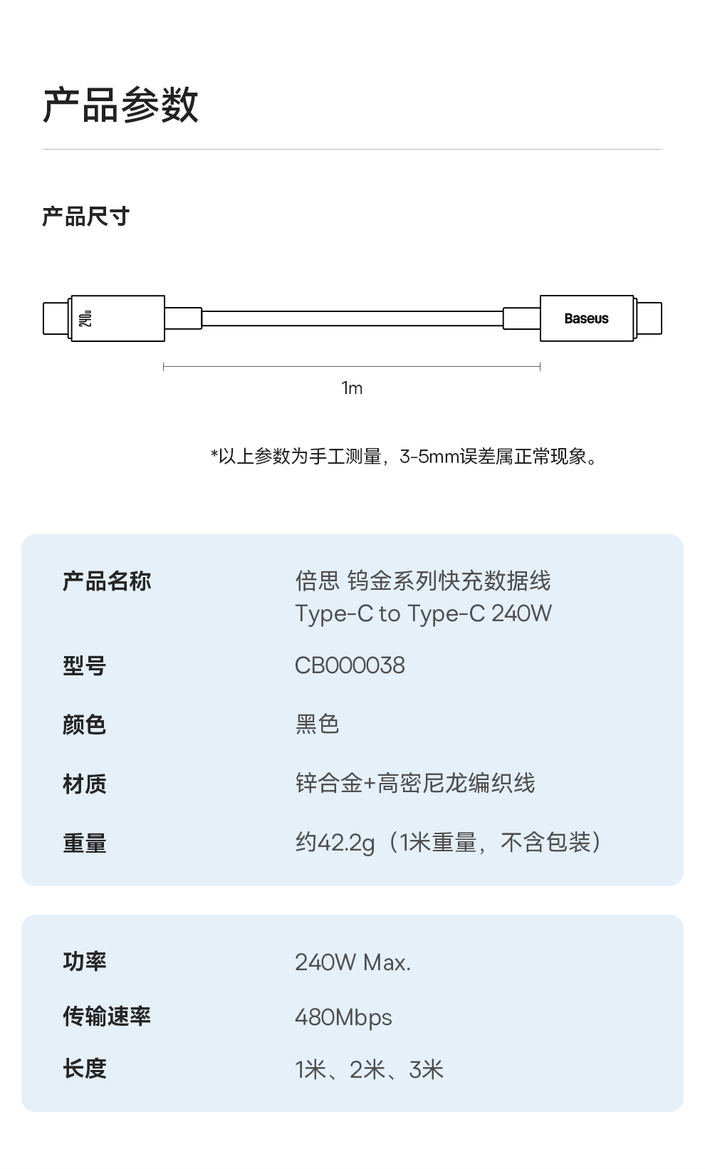 【69元3件】钨金系列 快充数据线Type-C to Type-C 240W