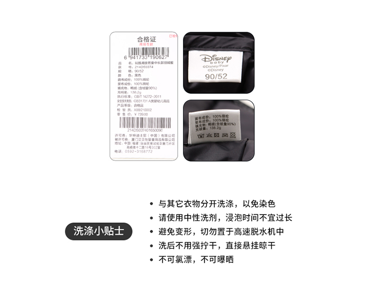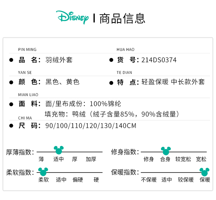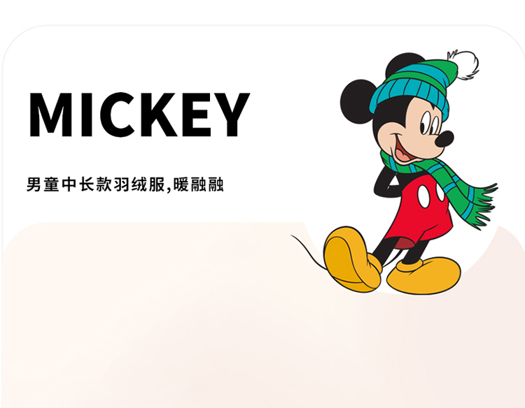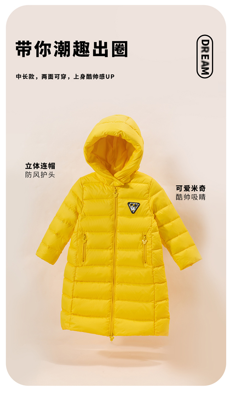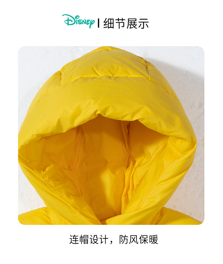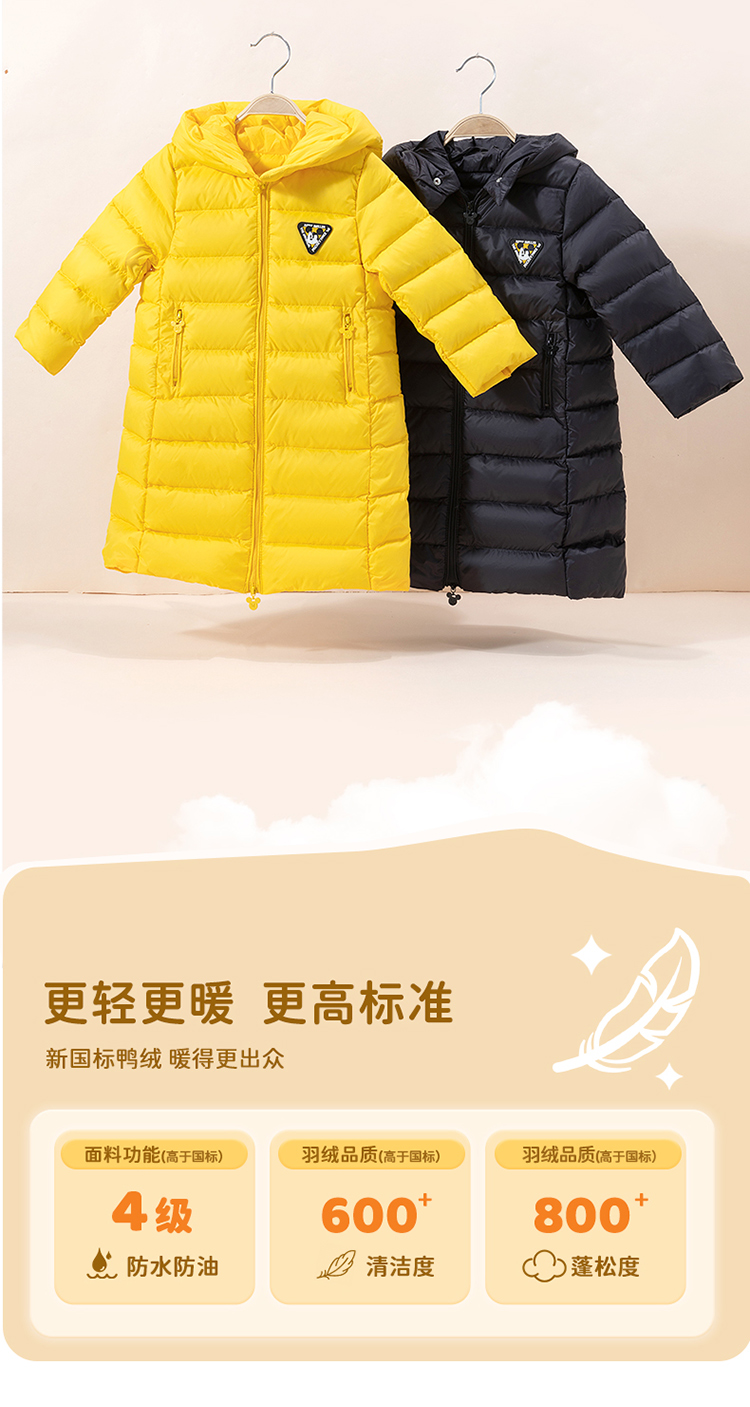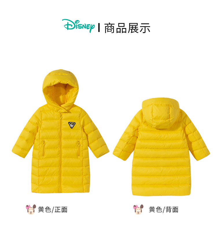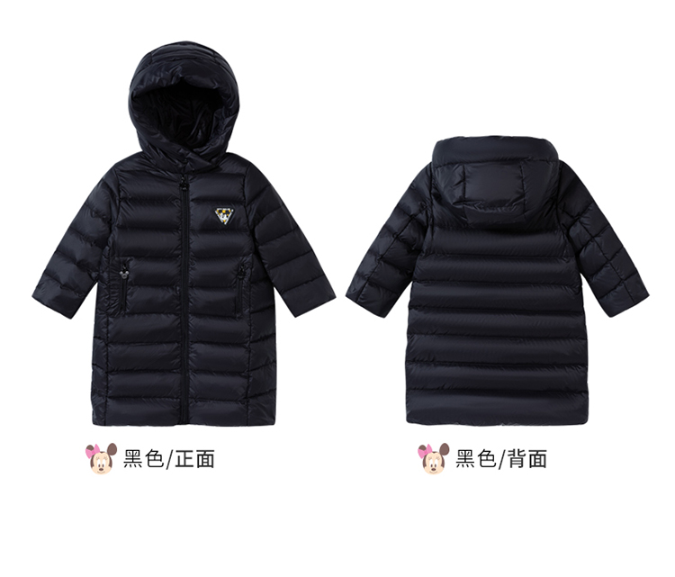 迪士尼童装男童羽绒服中长款2024冬季保暖中小童白鸭绒连帽羽绒服214DS0374