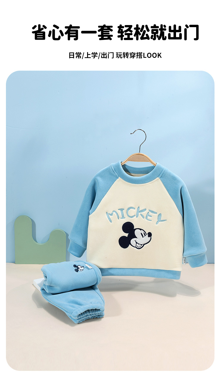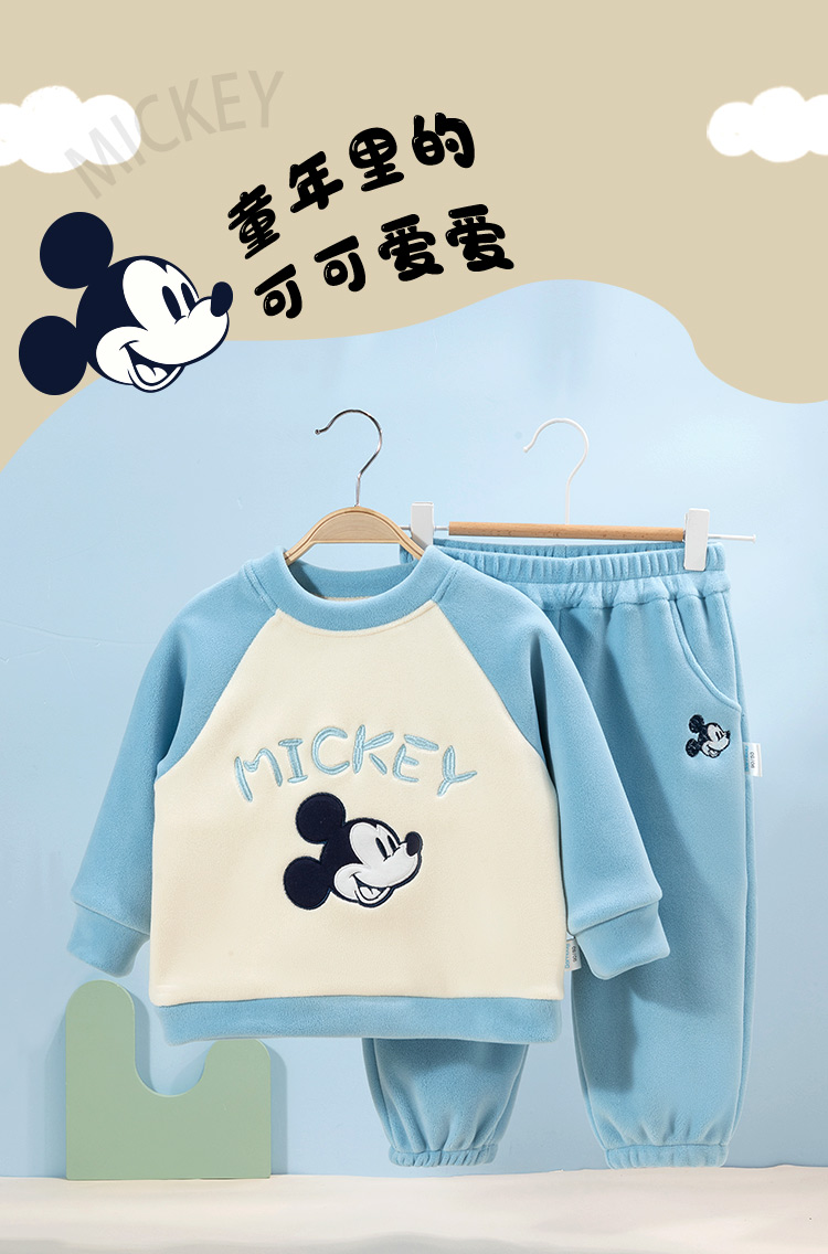 迪士尼童装男童双面奥粒绒潮酷帅气米奇儿童保暖卫衣套装ZD3DT019