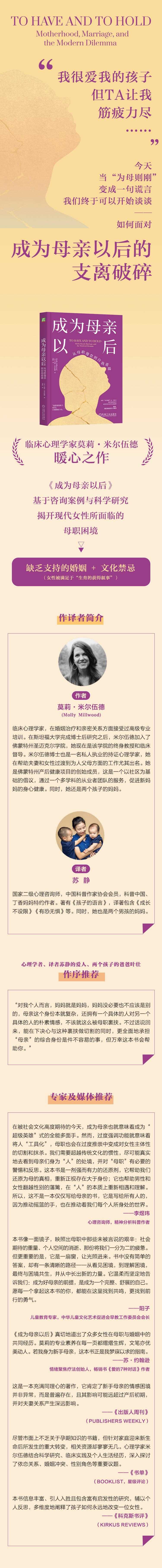 ※本书像一面镜子,映照出母职中那些未被言说的艰辛:社会期待的重量、个人空间的消逝、那份将我们一分为二的疲惫。但更重要的是,它是一扇窗,让光照进来。书中没有简单的答案,却有一条清晰的路径从看见困境,到理解困境,最终与困境共生,并从中长出新的力量。阳子 儿童教育专家,中华儿童文化艺术促进会早教工作委员会会长