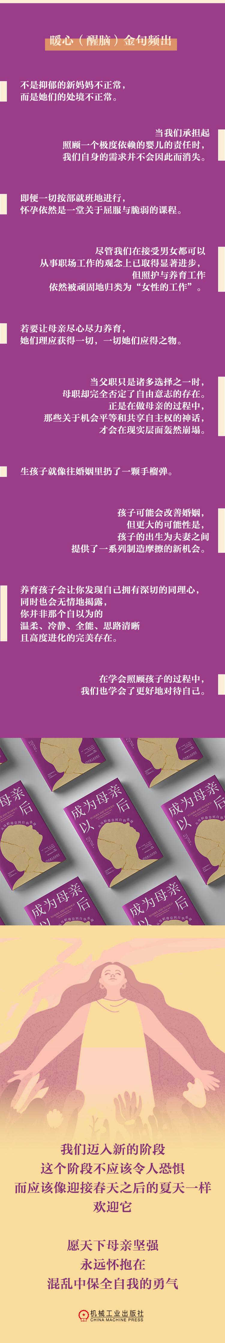 ※当;为母则刚是一句谎言,我们该如何面对成为母亲以后的支离破碎?就此,我们谈论得并不够多。而若我们想无限逼近成为母亲以后的真相,必须足够坦诚和勇敢,不与他人一起做加害者。我们可以始终以一位普通人类的姿态去弄清楚,母职和女性的自我何以冲突?
