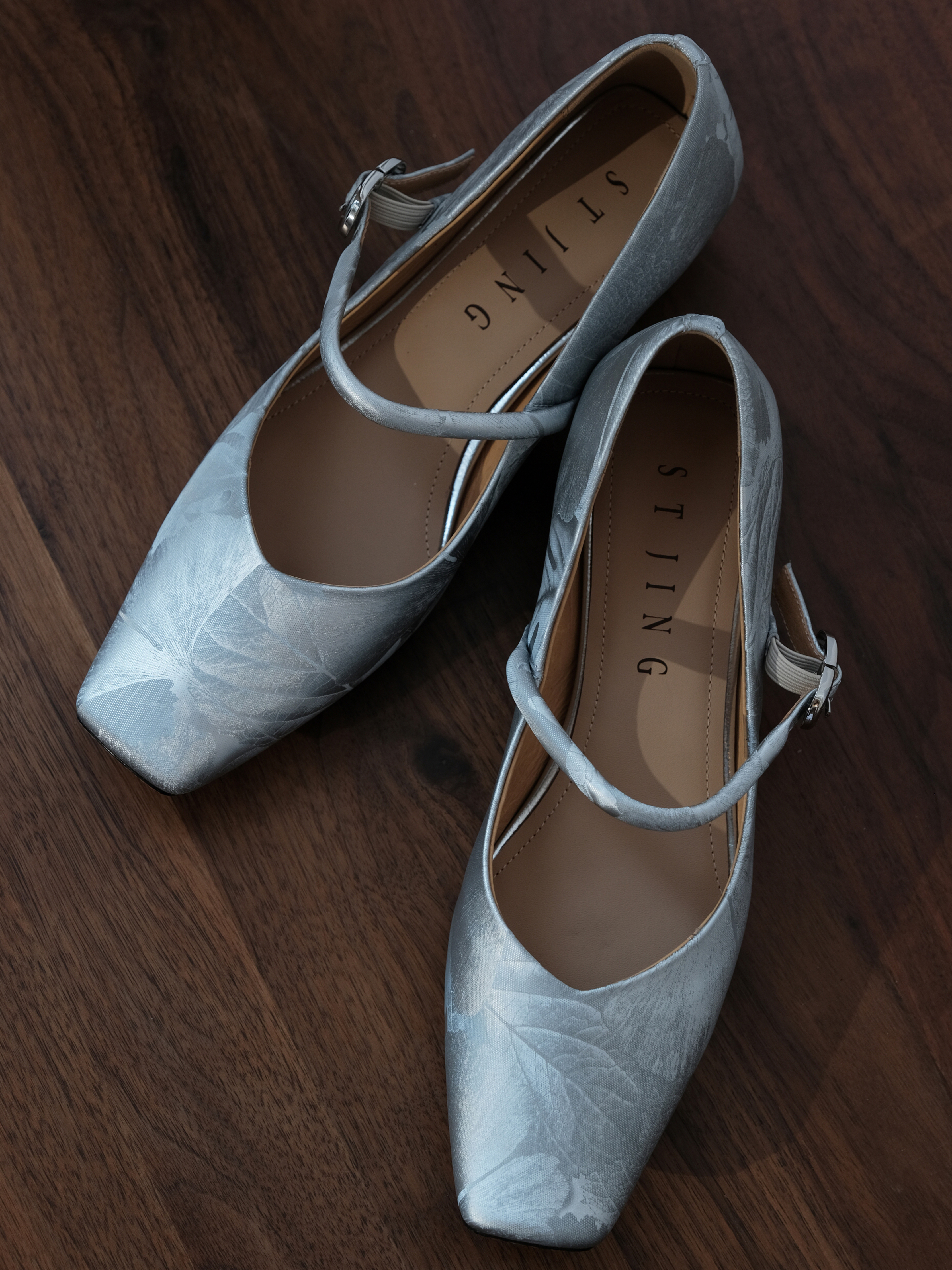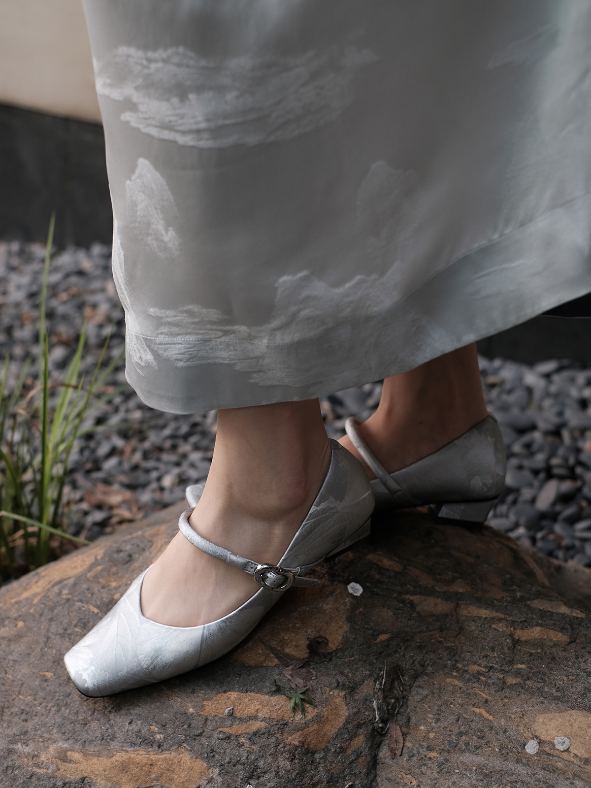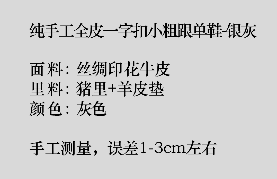 盛唐婧 |纯手工全皮一字扣小粗跟单鞋-银灰(特殊商品不退不换)
