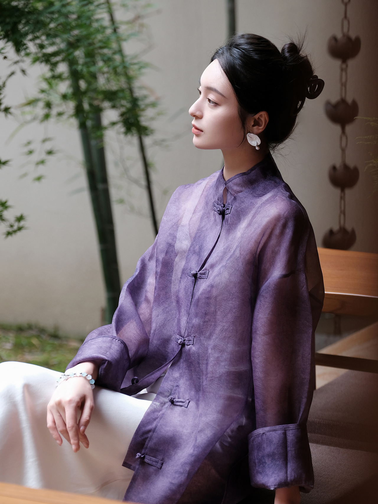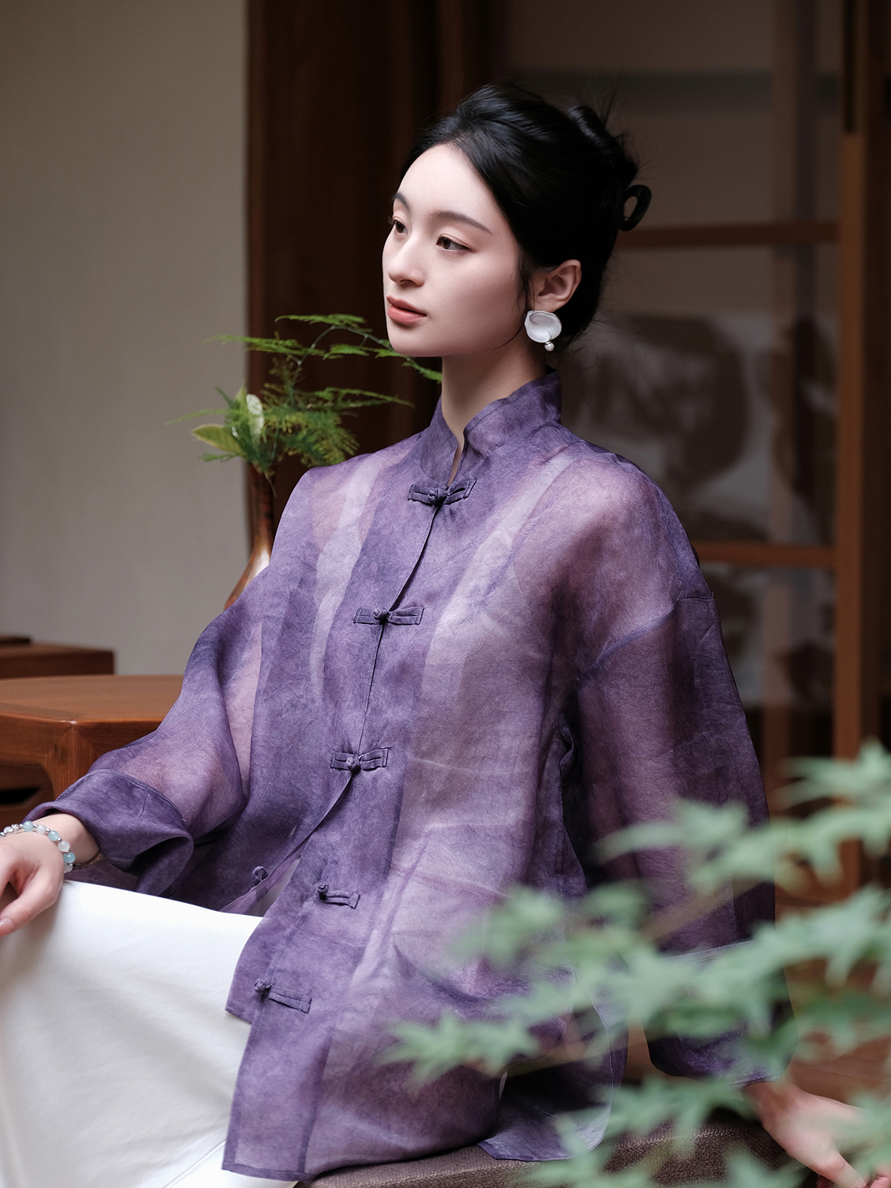 盛唐牡丹 |炒色真丝欧根缎对襟外套-紫色(售完不补)