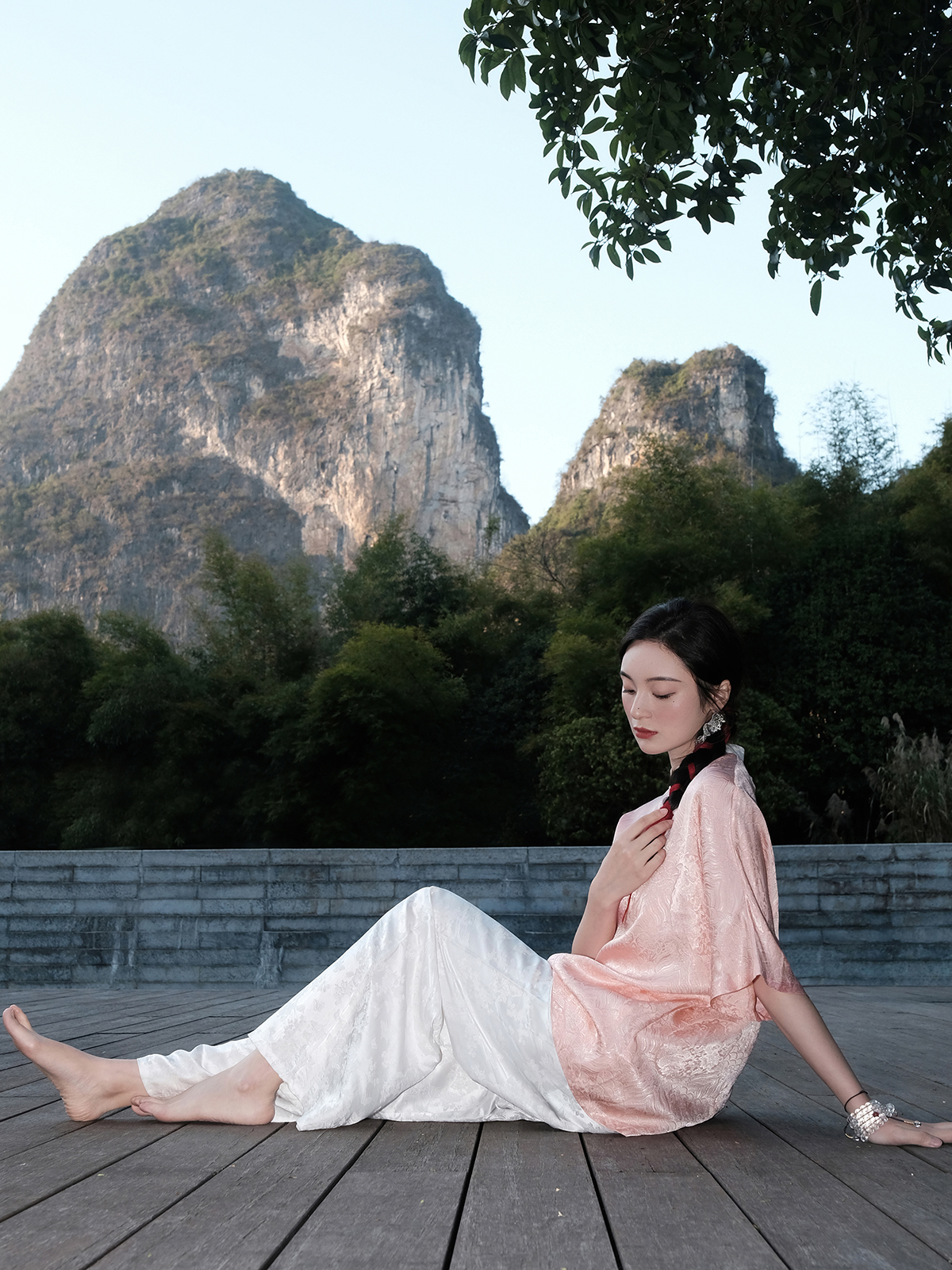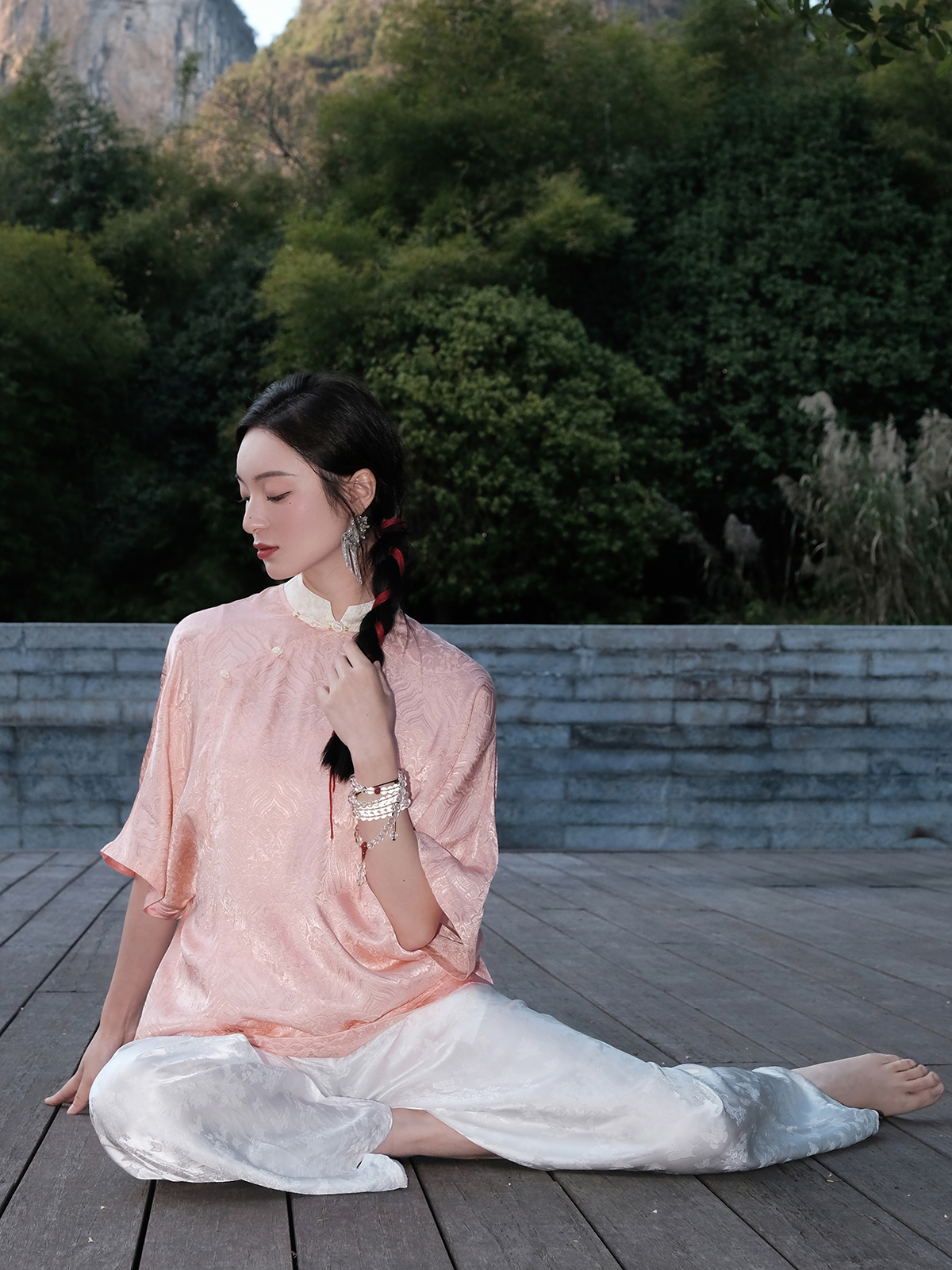 盛唐婧 |桃夭粉新中式国风提花上衣