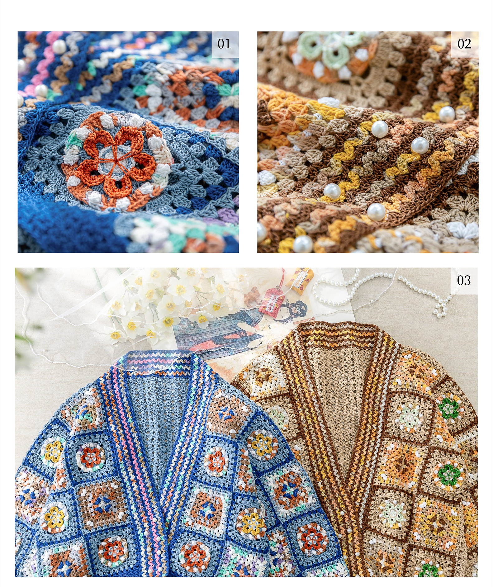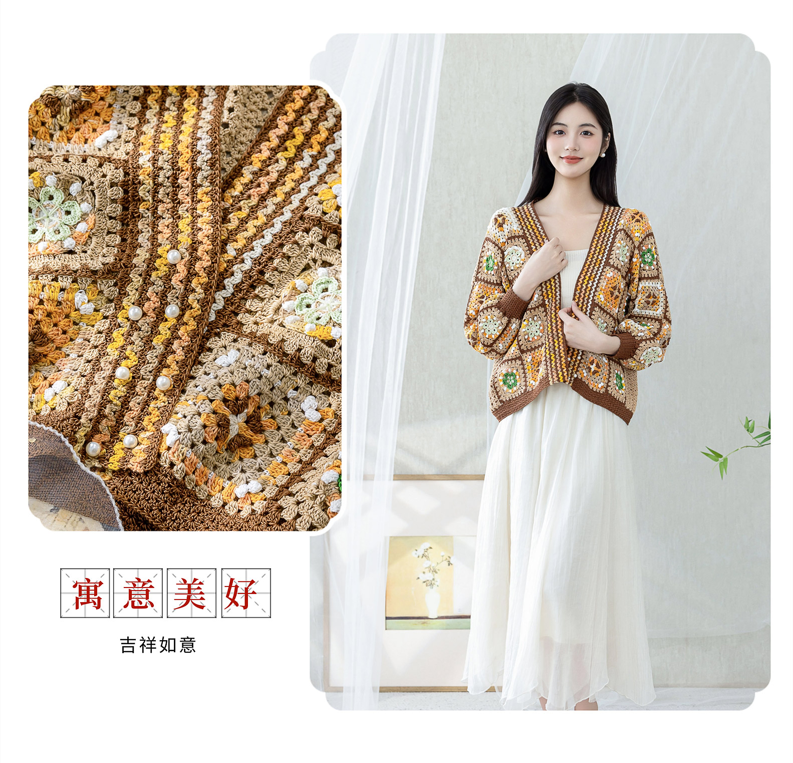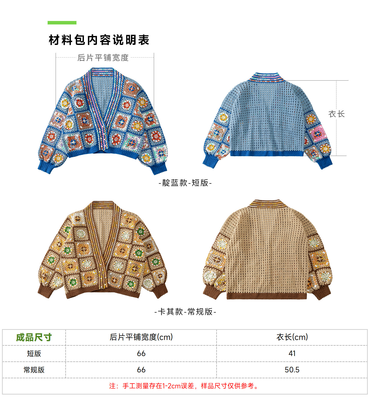 苏苏姐家联珠棋格开衫手工DIY钩针纯棉蕾丝线毛线团自制材料包