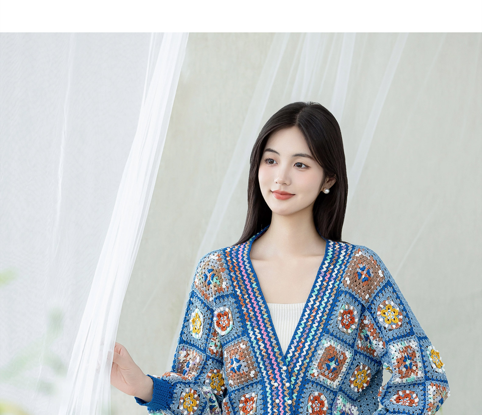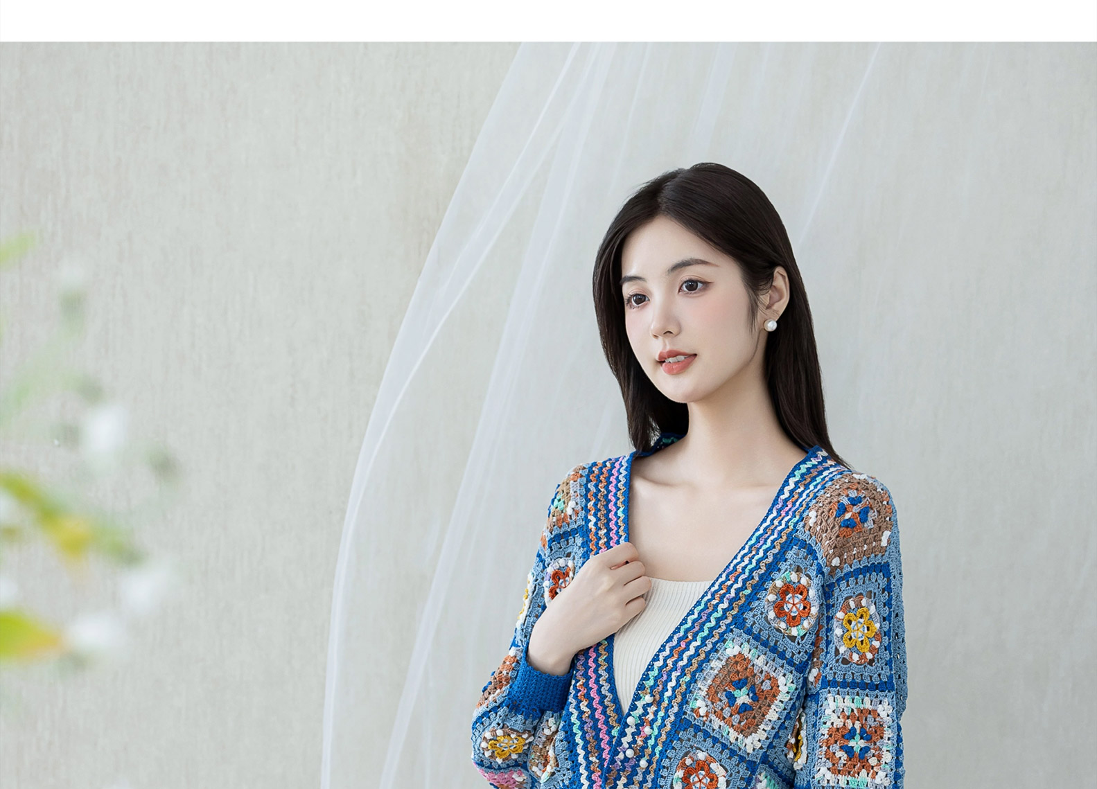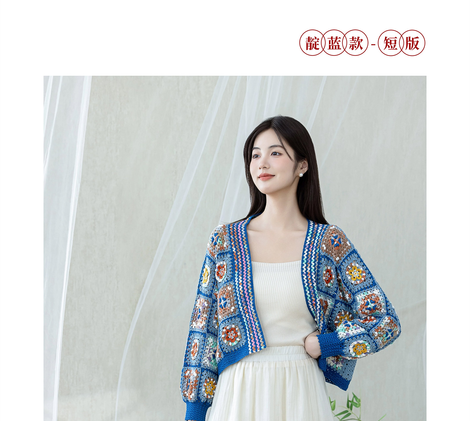 苏苏姐家联珠棋格开衫手工DIY钩针纯棉蕾丝线毛线团自制材料包