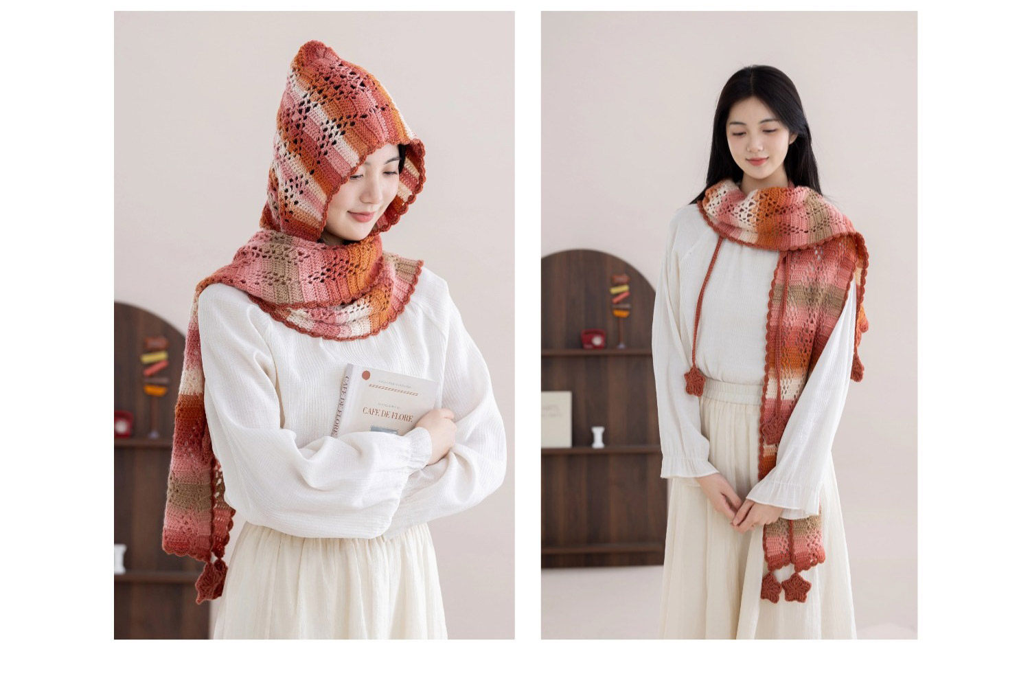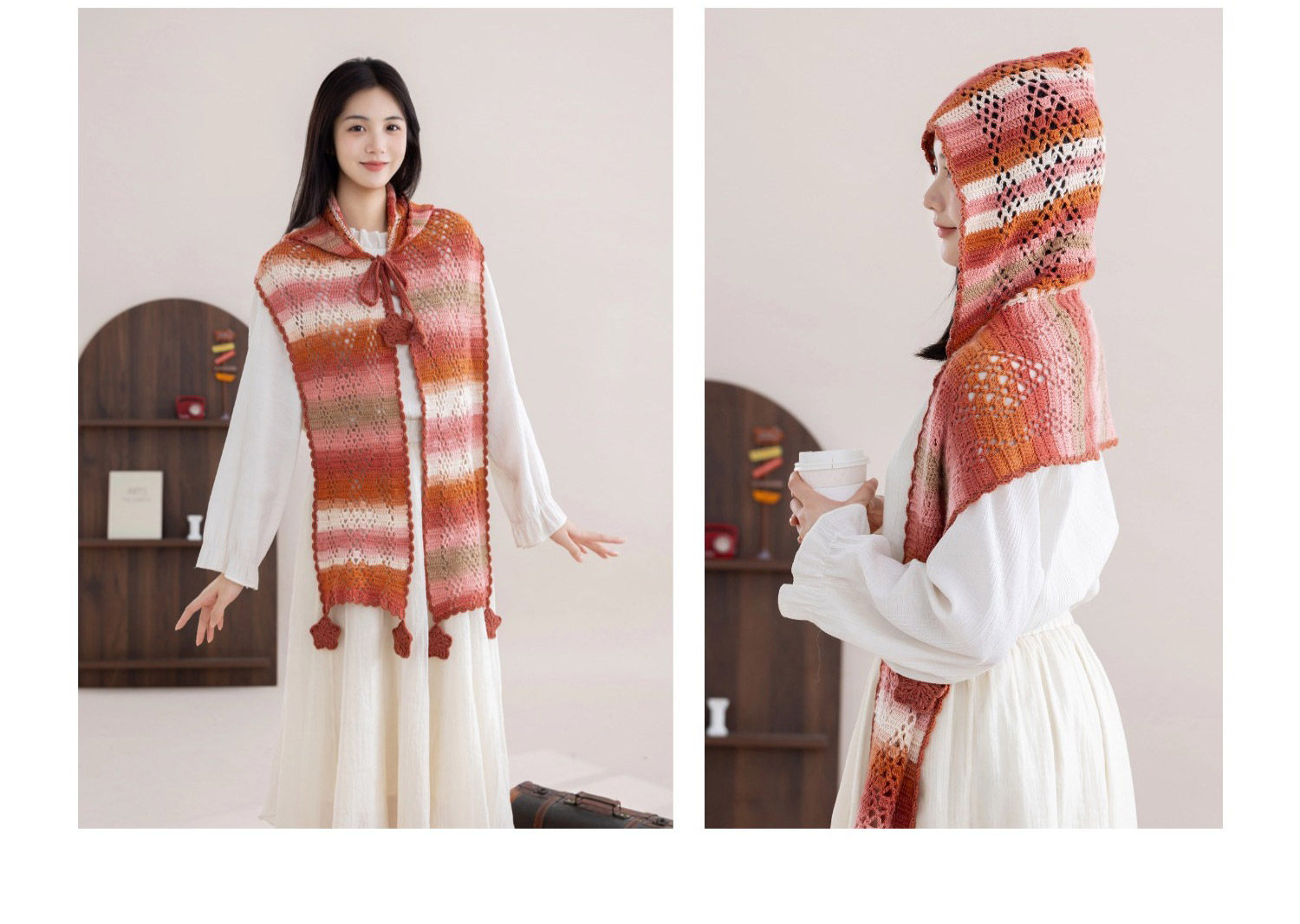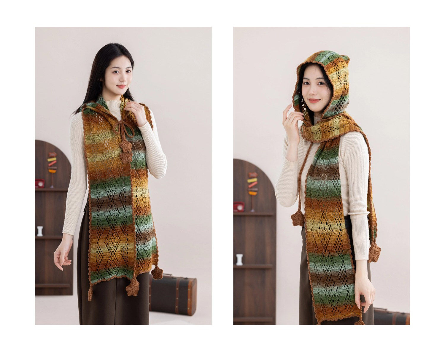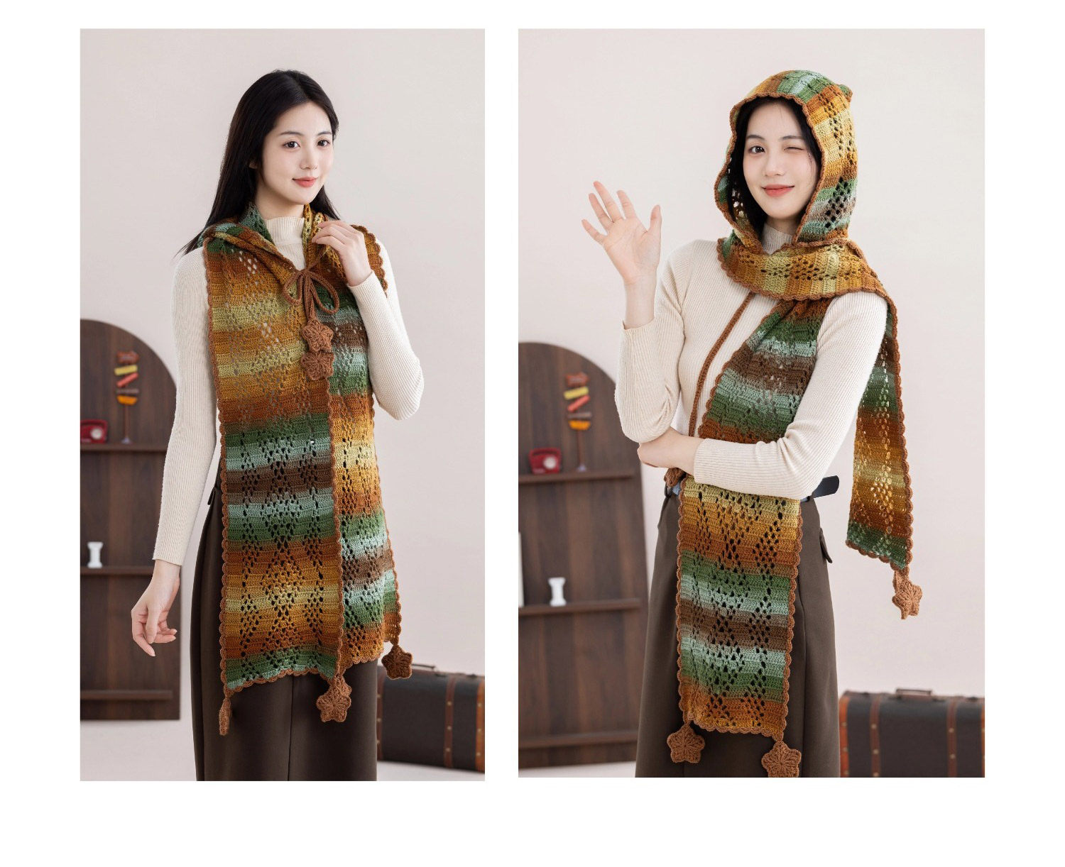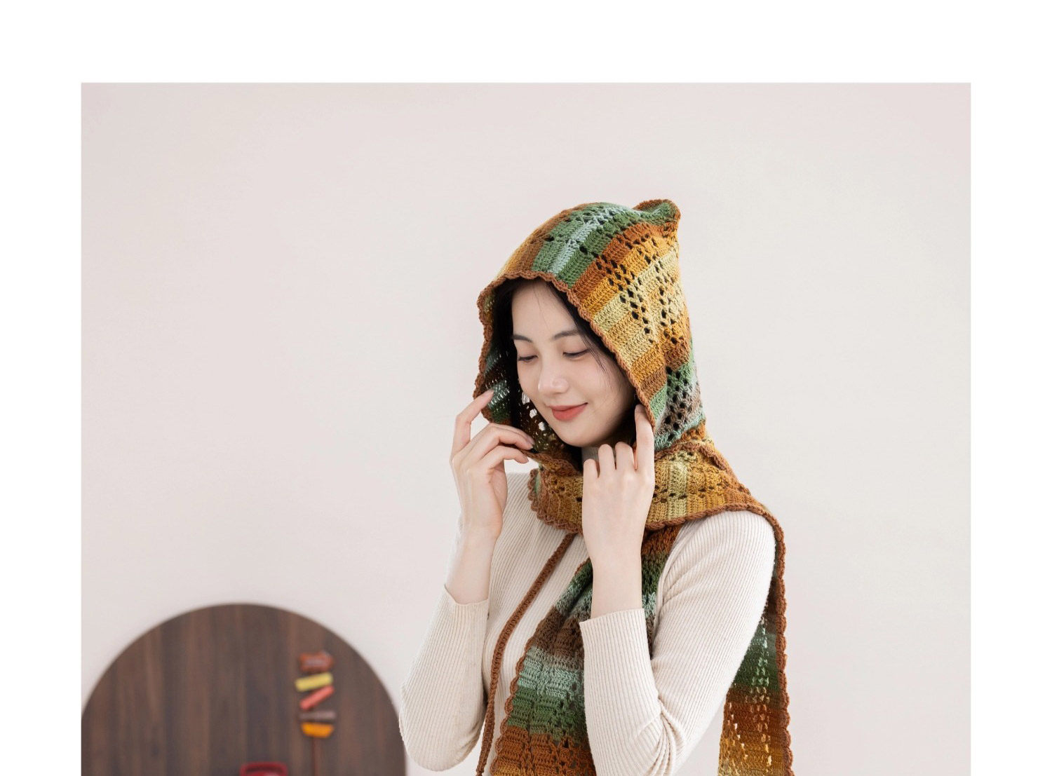 苏苏姐家冬禧连帽围巾手工diy编织钩针印象莫奈毛线团围巾材料包