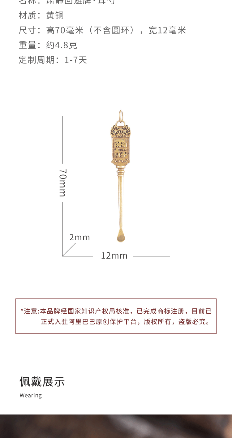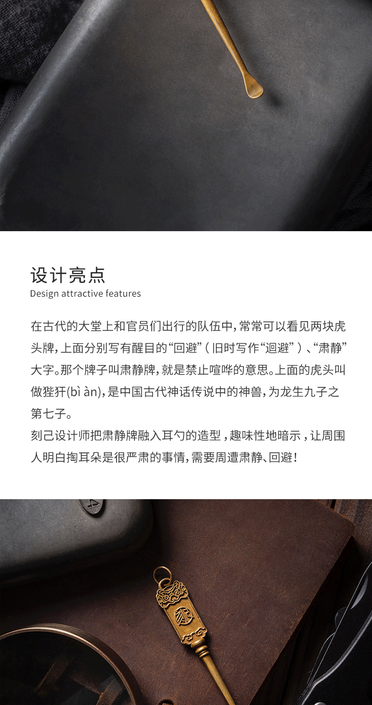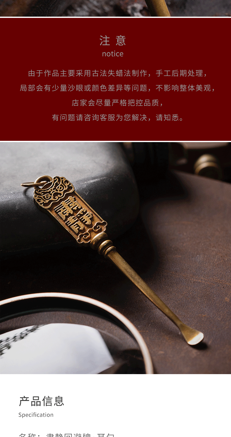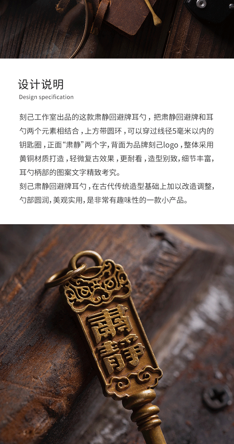 刻己-黄铜掏耳勺 肃静牌传统国潮钥匙扣复古饰品配饰【官方授权 】【48小时发货】