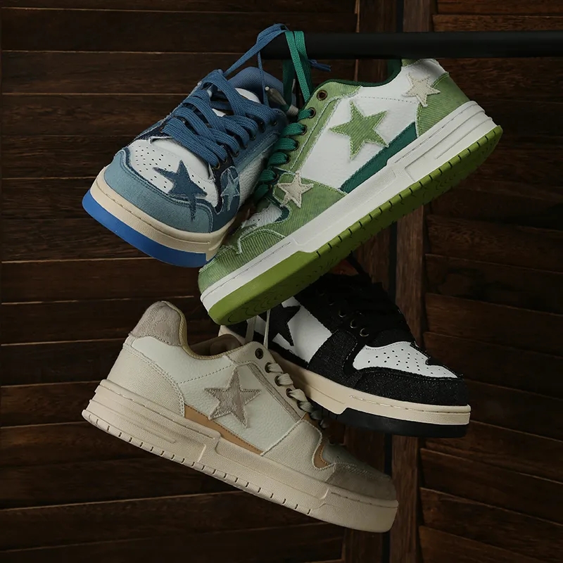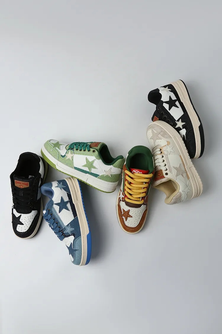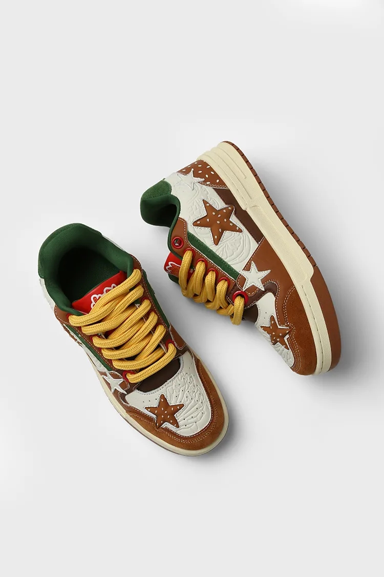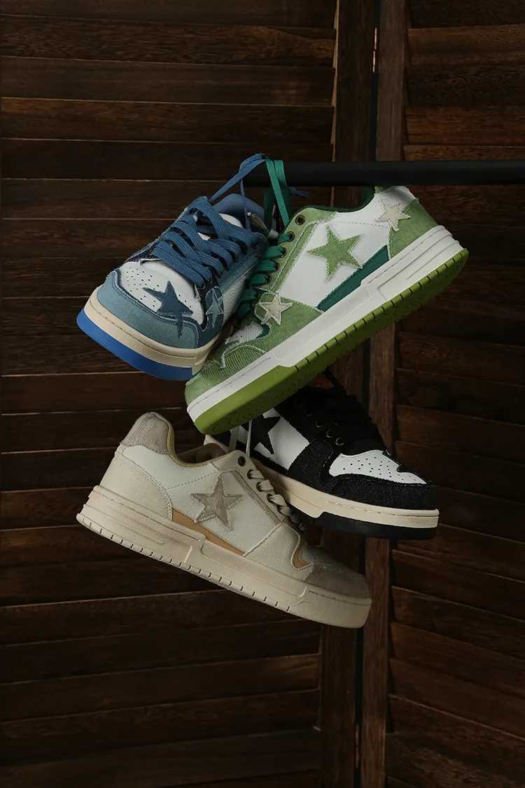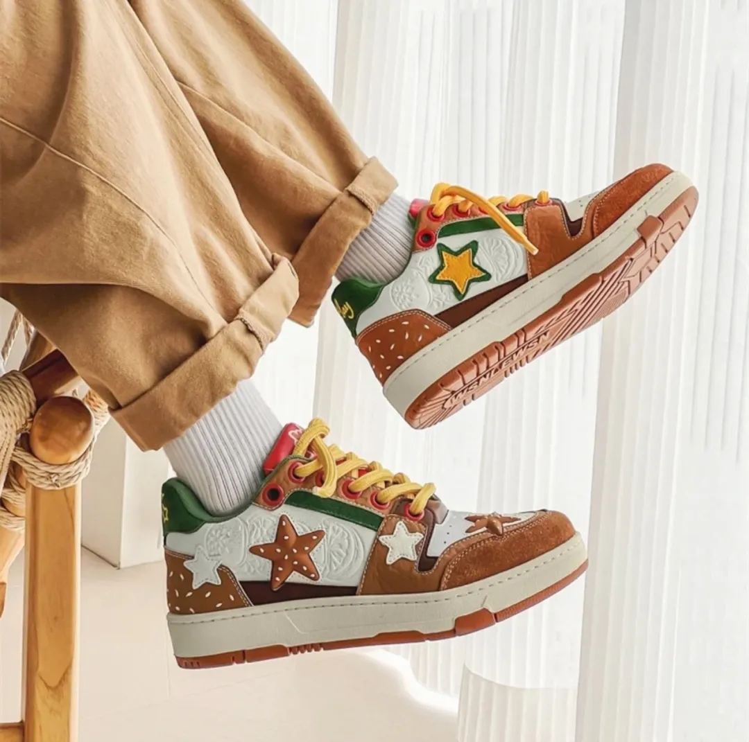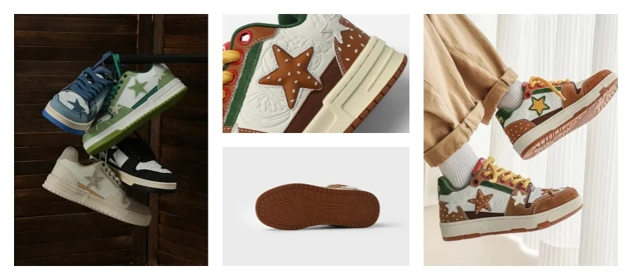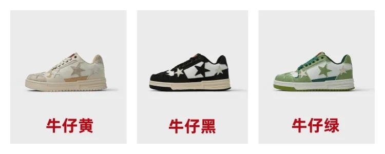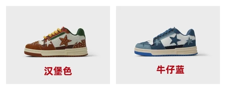 星星元素 贯穿整个鞋子的设计。联名款 汉堡色 、牛仔色、帆布色,颜值色系实在抗打