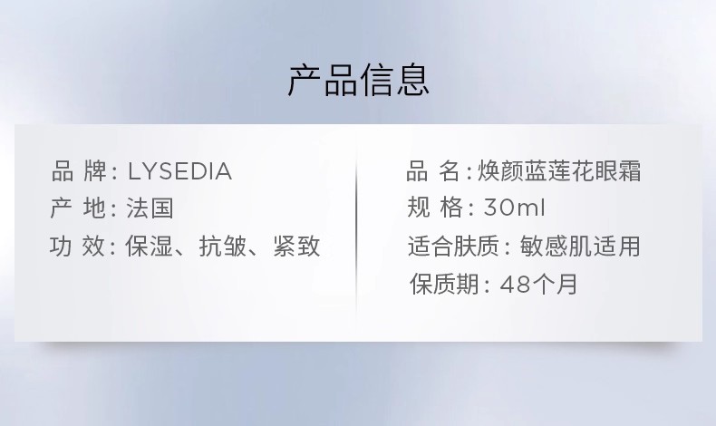 「买30ml🉐️44ml」“眼霜眼精华眼膜”三合一 · 法国Lysedia蓝莲花眼霜眼部保湿精华抗皱紧致大容量眼膜润泽肌肤30ml|品牌直发