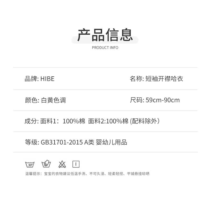 怡比美好农场短袖开襟哈衣HY26SUN070白黄色调59#-80#