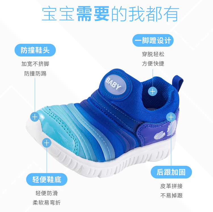 贝贝怡男女童春秋宝宝毛毛虫一脚蹬童鞋百搭防滑耐磨运动鞋213X329