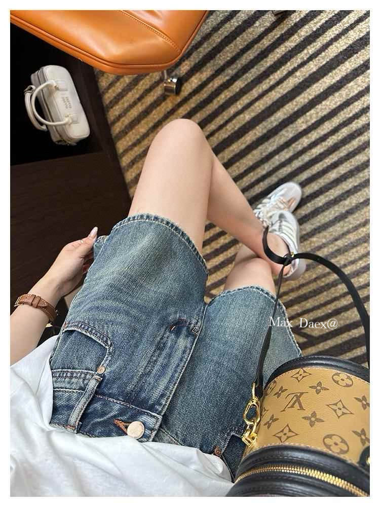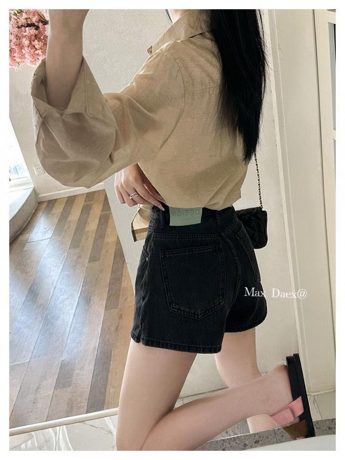 【Max Daex®高腰开叉牛仔短裤】炭灰/复古蓝双色入,高腰开衩设计 ,秒变夏日腿精! 独特双侧开衩剪裁,视觉拉长腿部线条,小个子也能穿出大长腿!