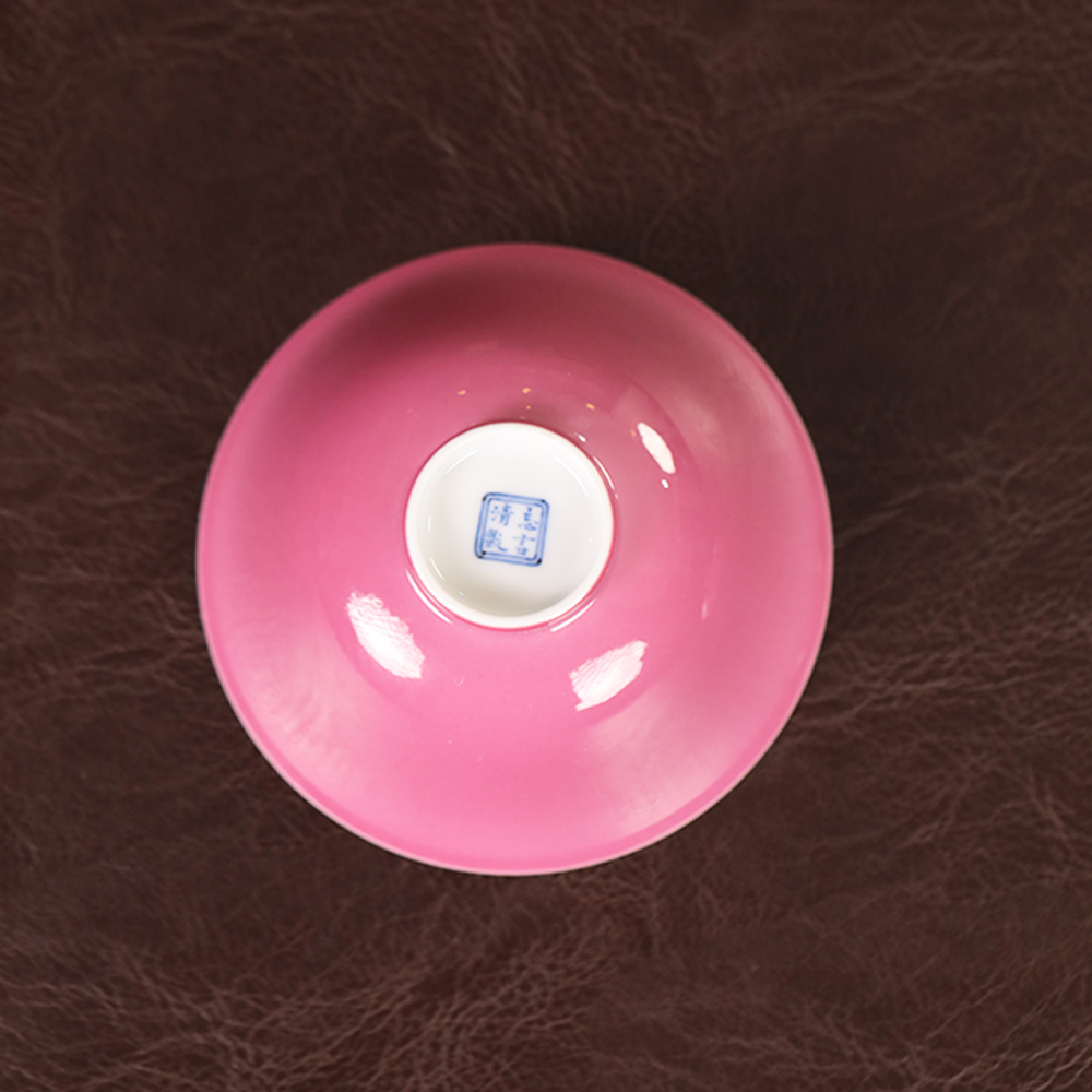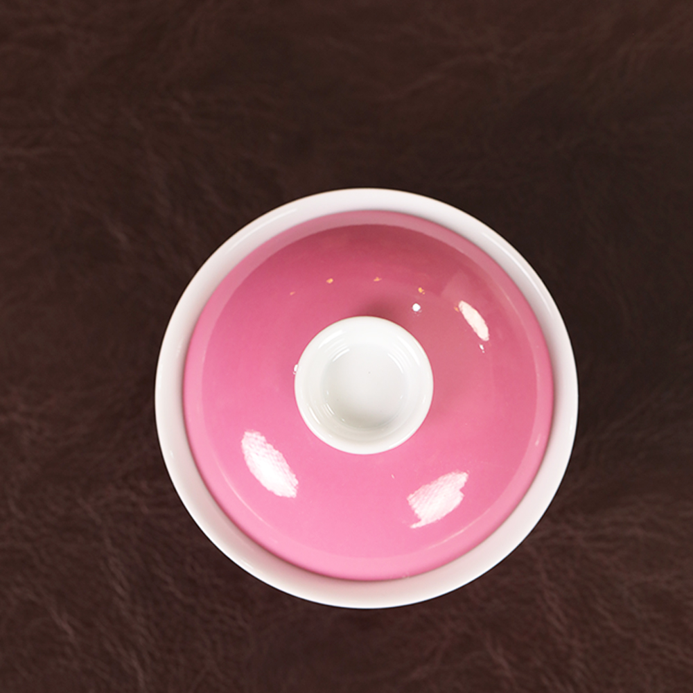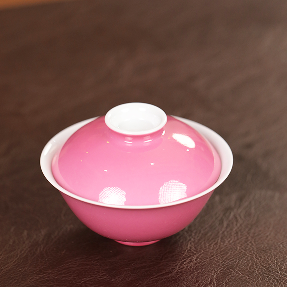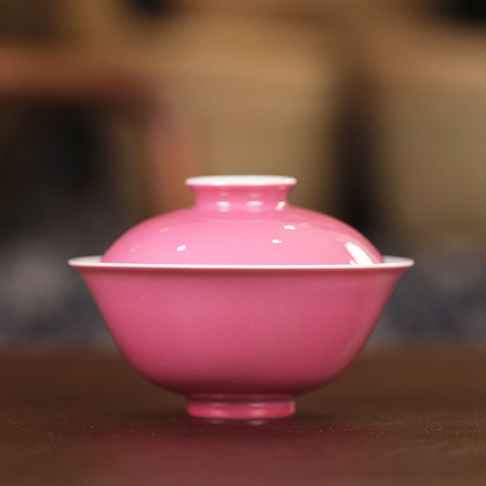 【忘言】胭脂红釉圆柏茶圆 盖碗 曰何文人器