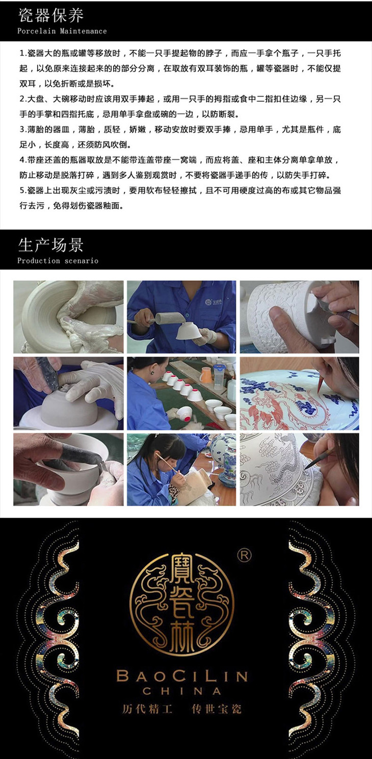 宝瓷林,2008年创立,是一家将传统清宫官窑制瓷技艺,移植于当代家居日用瓷品上的景德镇陶瓷骨干企业,是当下唯一一家代表“千年瓷都-景德镇”走向全球的陶瓷连锁品牌,被誉为陶瓷界的“国酒茅台”。