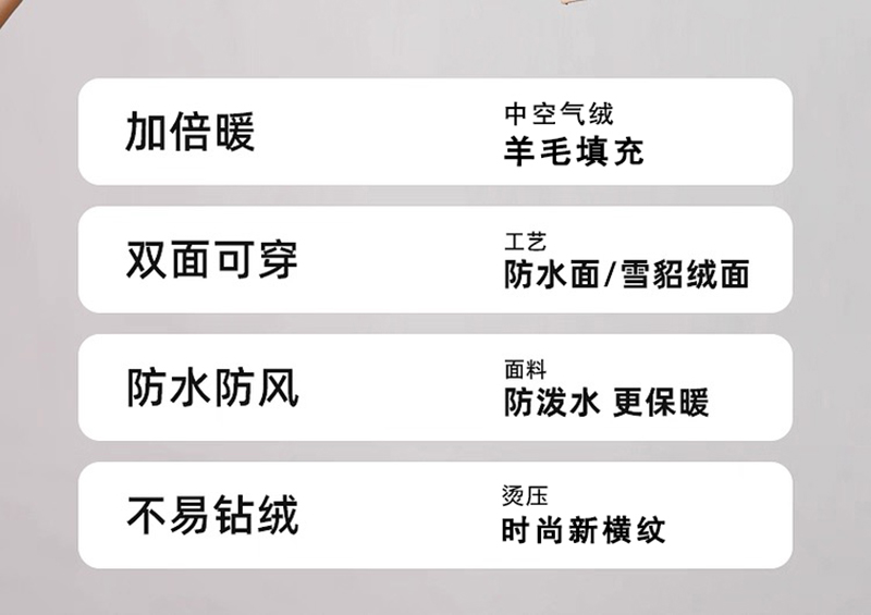 【品名】BEICAIRONG 北彩绒 仿雪貂绒羊毛气绒衣 双面可穿 防水防风 保暖舒适 男女款 【规格】 女款:黑色、紫色、白色 男款:黑色、灰色、咖色 【产地】国内 【材质】 面层:羊毛100% 夹层1:羊毛气绒衣100% 夹层2:羊毛气绒衣100% 里层:羊毛气绒衣100% 夹层1+夹层2:羊毛气绒衣100% 【发货包装】独立包装 【发货地】浙江 【发货快递】中通、EMS随机发 【补邮费地区】新疆、西藏+30元 【发货时效】48-72小时,周末节假日顺延 |