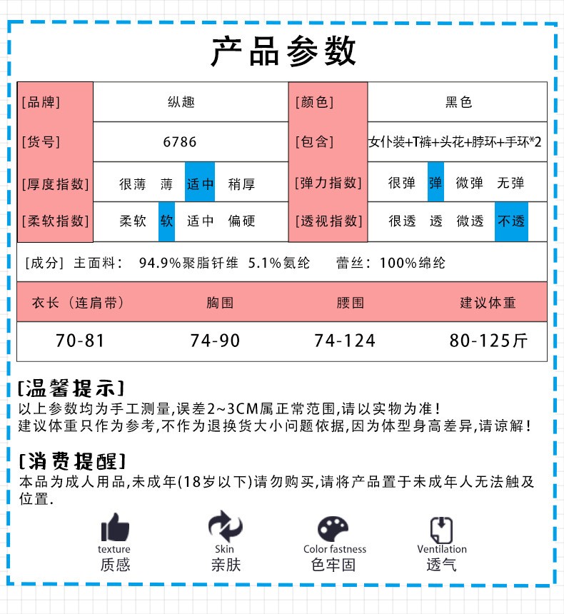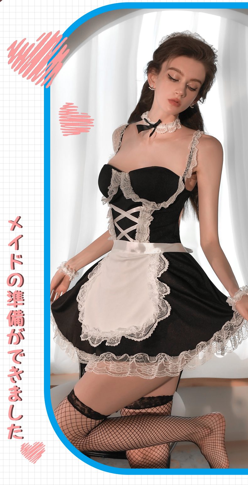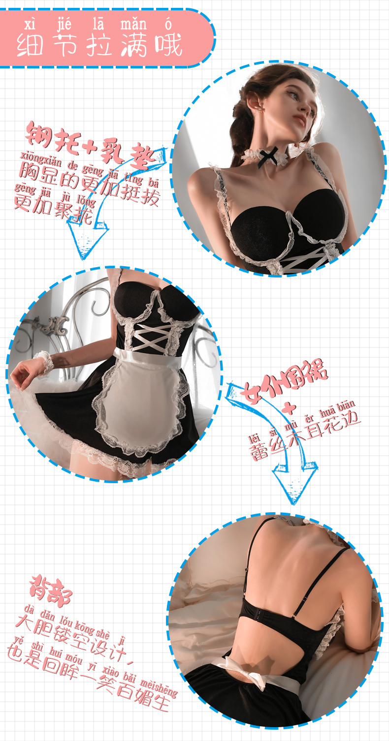 【性感制服】性感女仆装制服睡衣 头饰+脖环+手环+T裤+女仆装 纯欲诱惑性感甜美情趣内衣睡裙6786