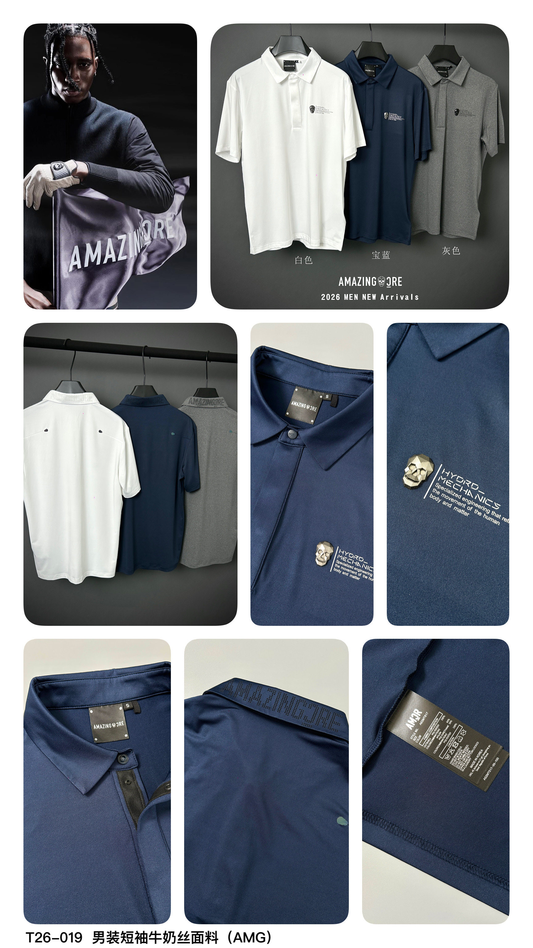 高尔夫服装2026男士春夏季新款透气吸汗时尚百搭休闲户外运动球衣
