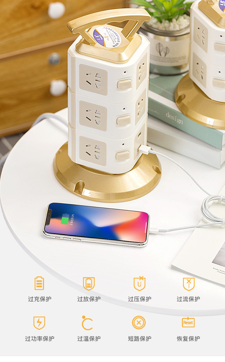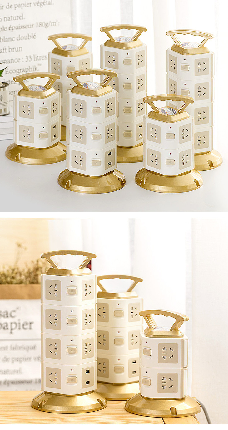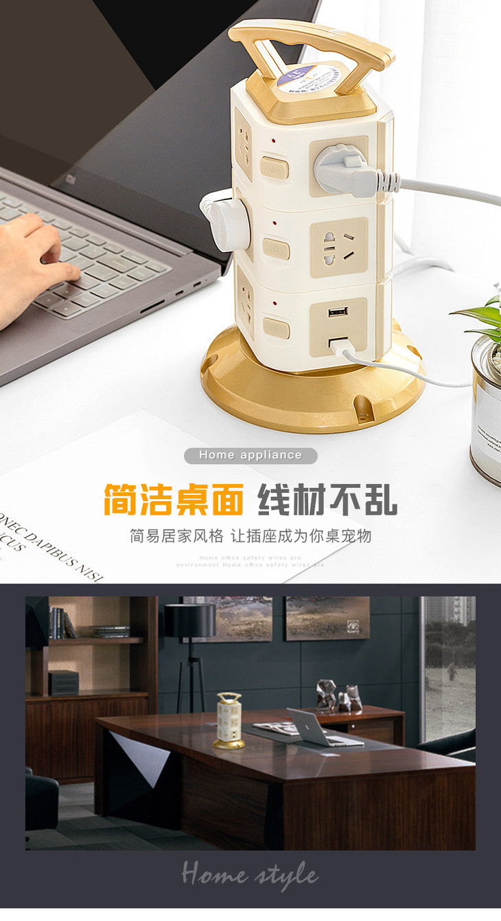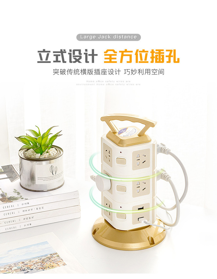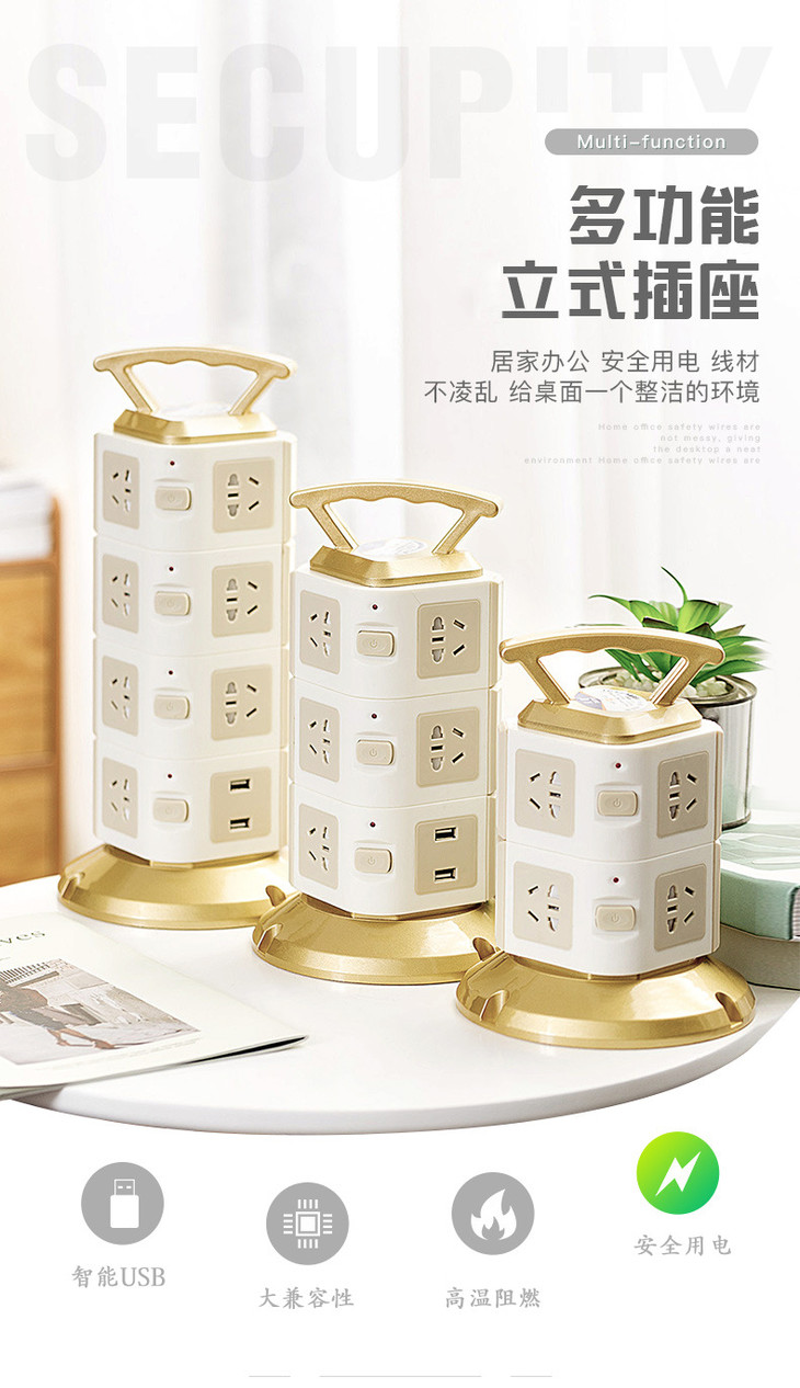 【电源插座】立式塔形插座排插带安全门家用多功能插线板多孔接线板带
