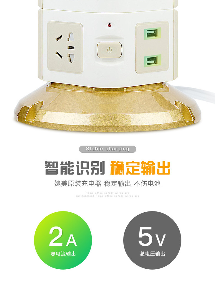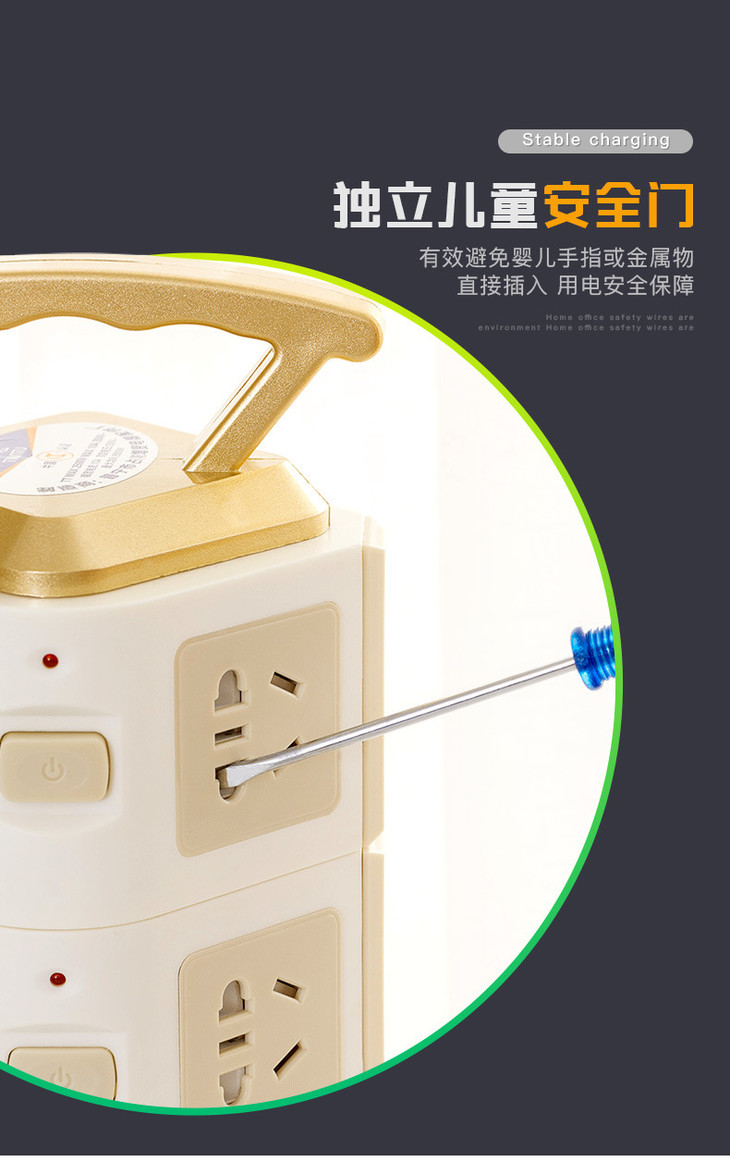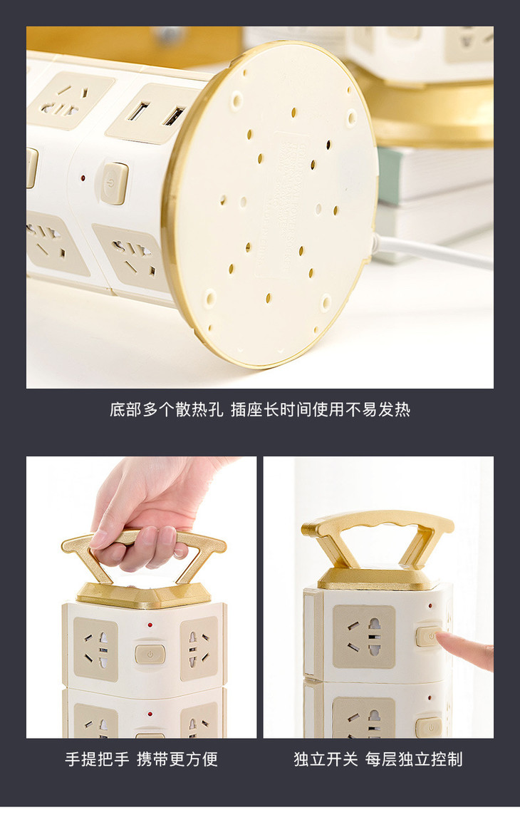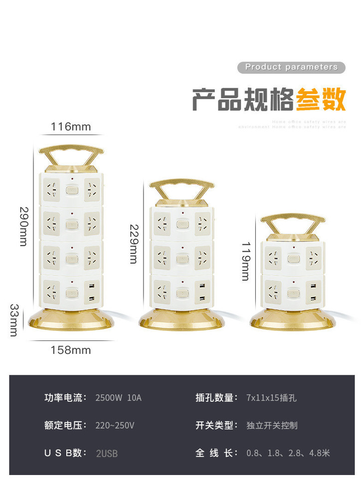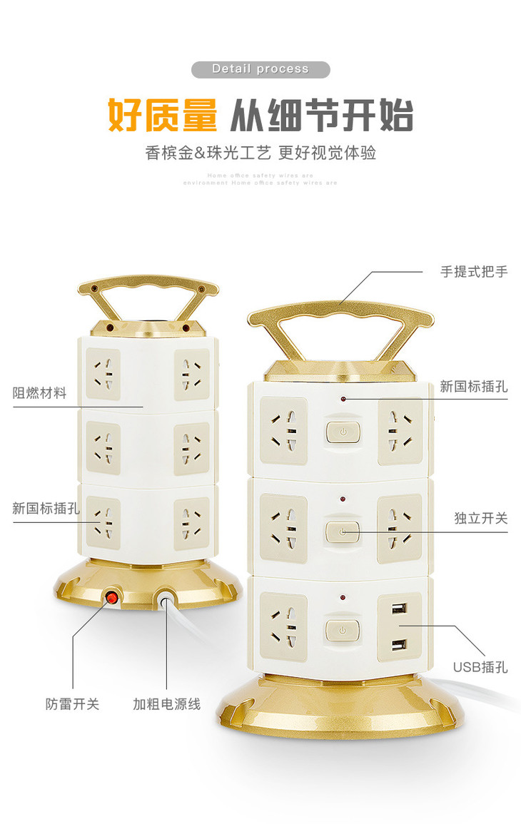 【电源插座】立式塔形插座排插带安全门家用多功能插线板多孔接线板带