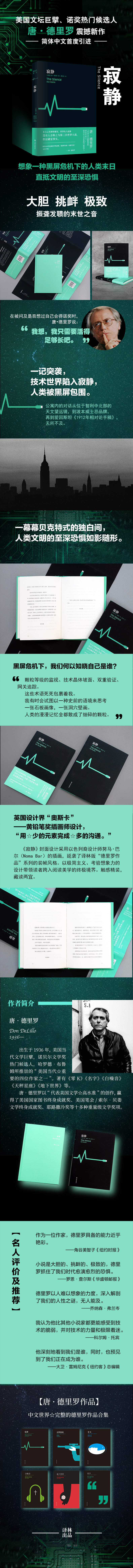 ◇曾预言世贸中心遇袭的唐·德里罗被称为“后工业时代的先知”。篇幅仅几万字的末世纪启示录《寂静》将再次展现他“近乎艳彩”(角谷美智子)的能力