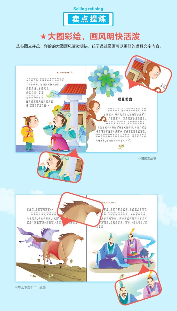本书图文并茂,每册包含百余幅彩绘大图,画风活泼明快,孩子通过图画能够更好地理解文字内容。
