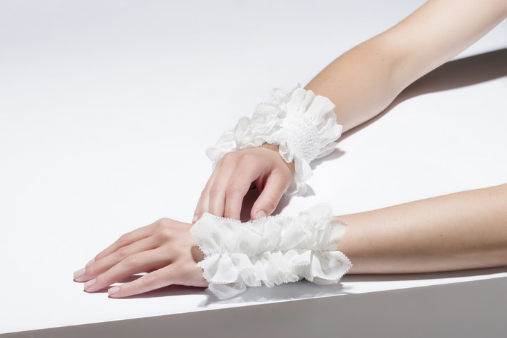 北京仓|Catherine Osti-Louisa-法国里昂真丝 袖饰(白色)[法国设计师]