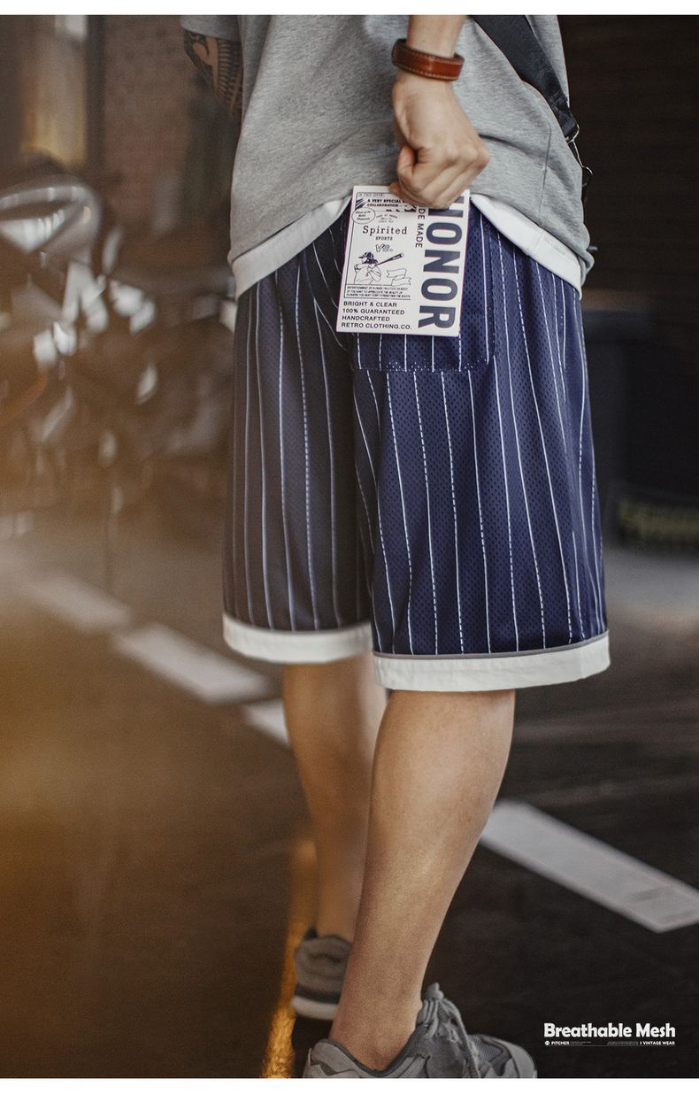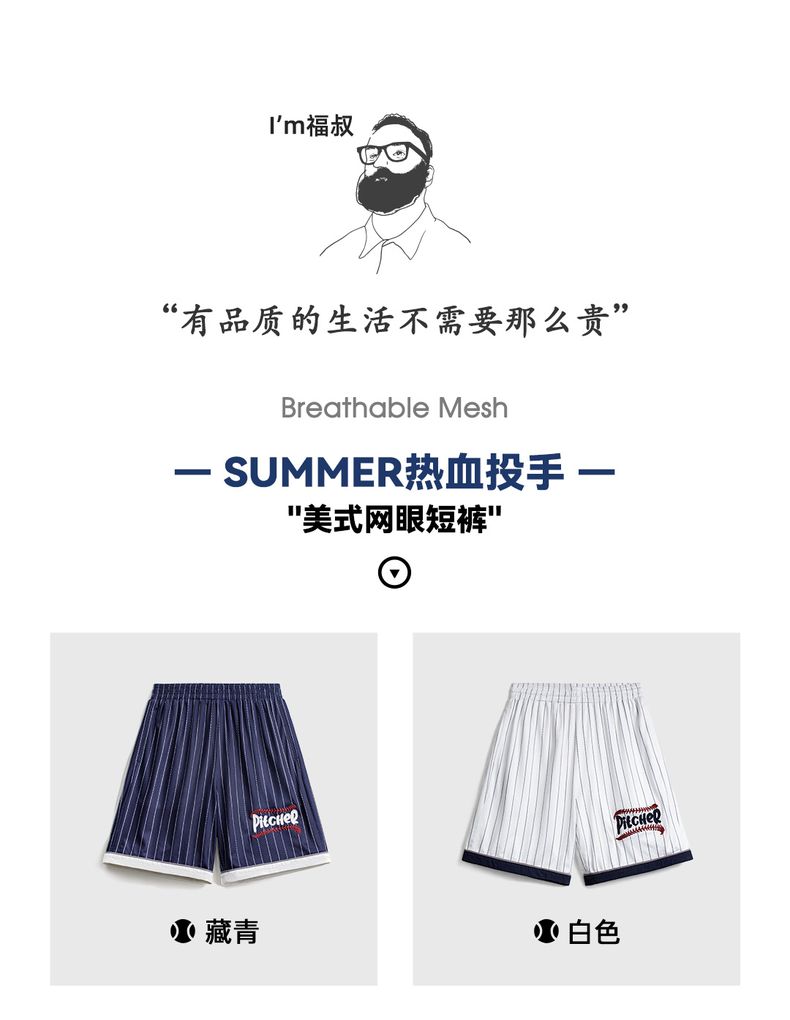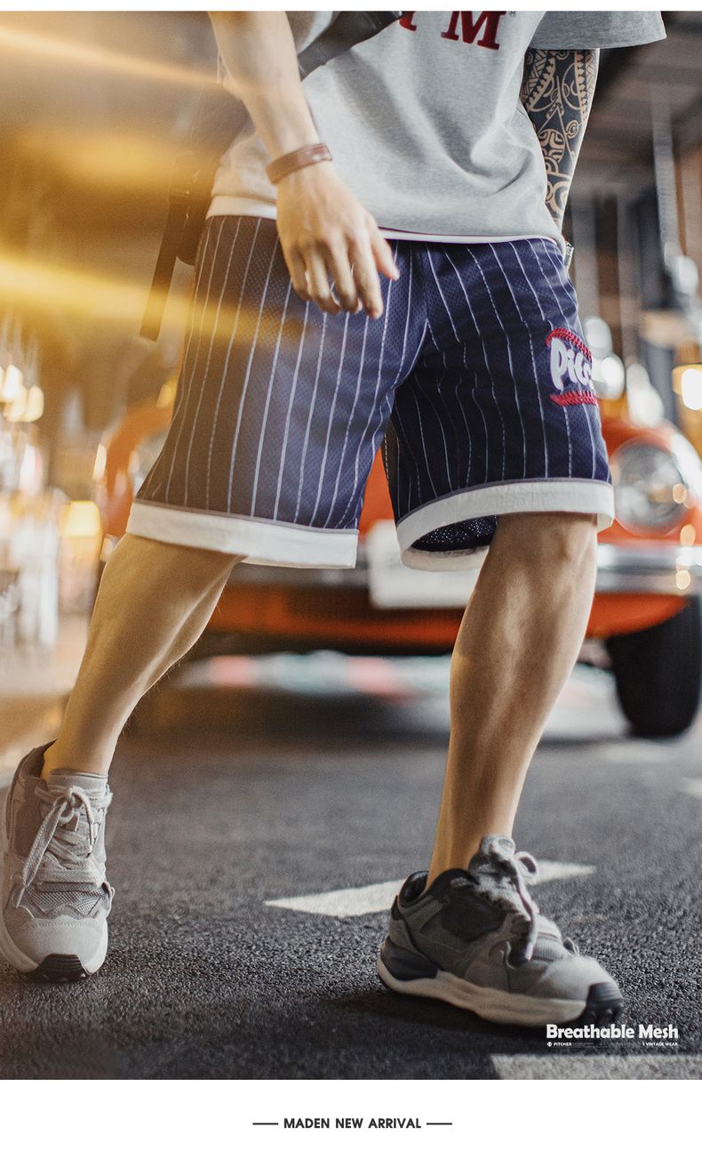 工装优选美式复古透气篮球网眼短裤训练宽松刺绣棒球五分裤男夏
