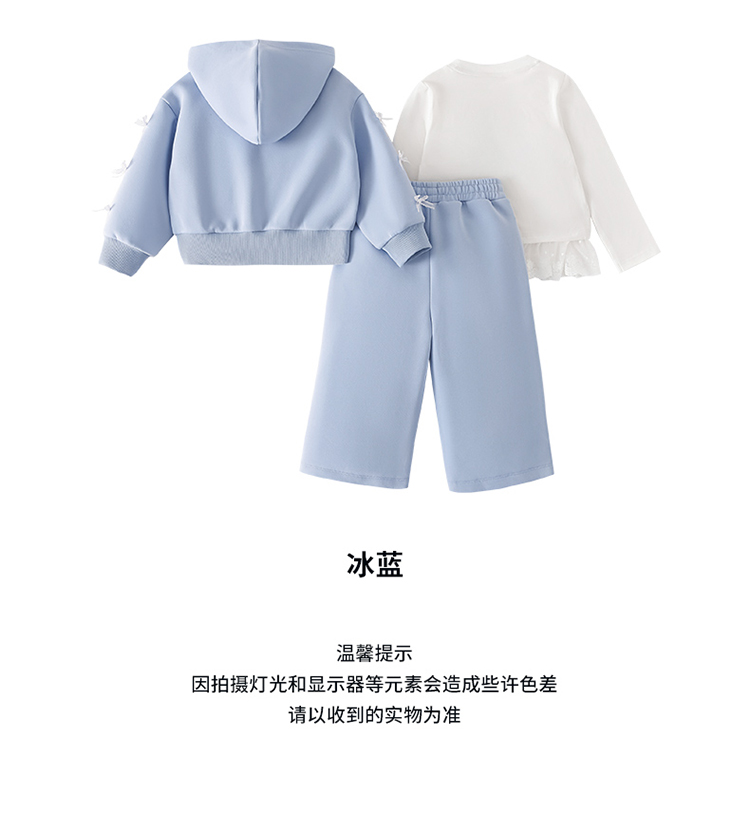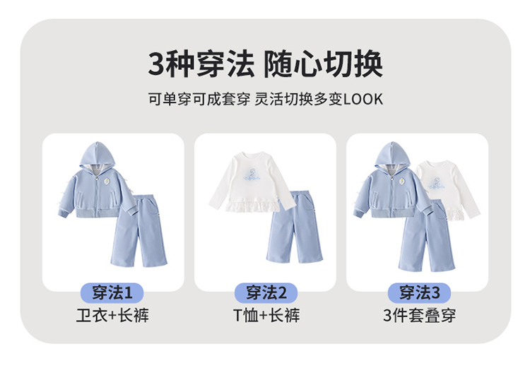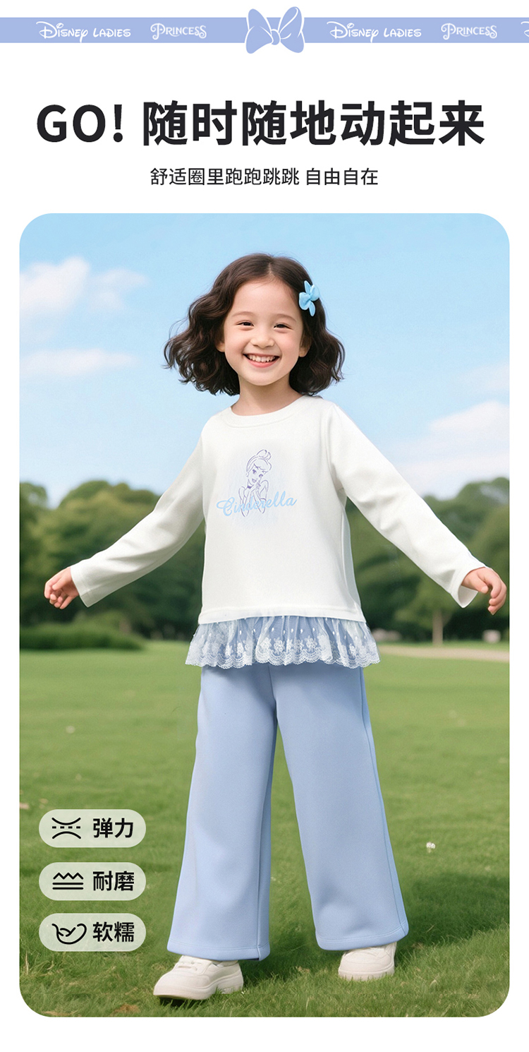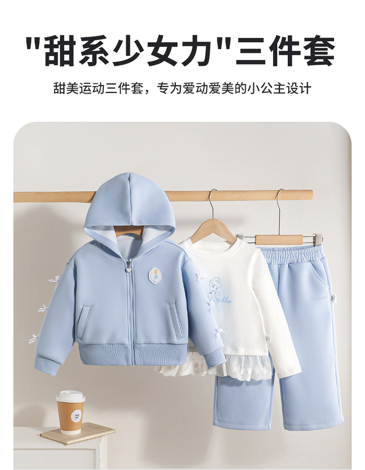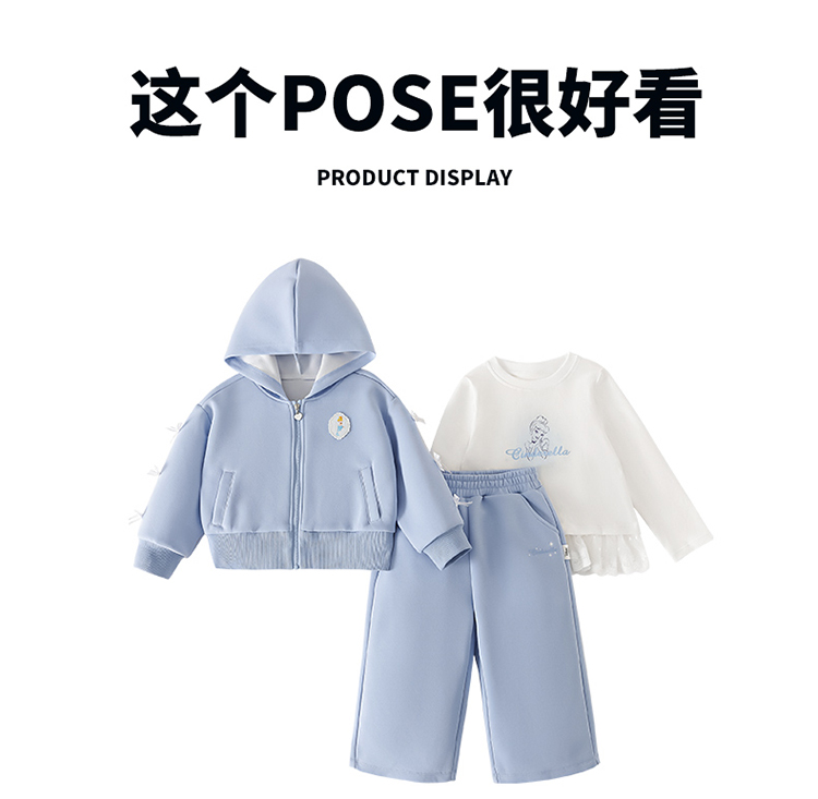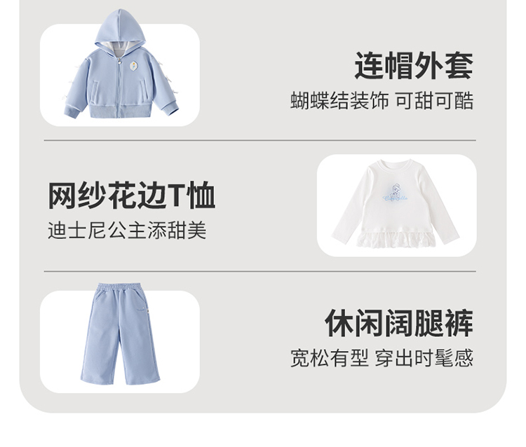 迪士尼春秋新款女童舒适耐磨卫衣卫裤T恤运动休闲三件套ZD3ET024