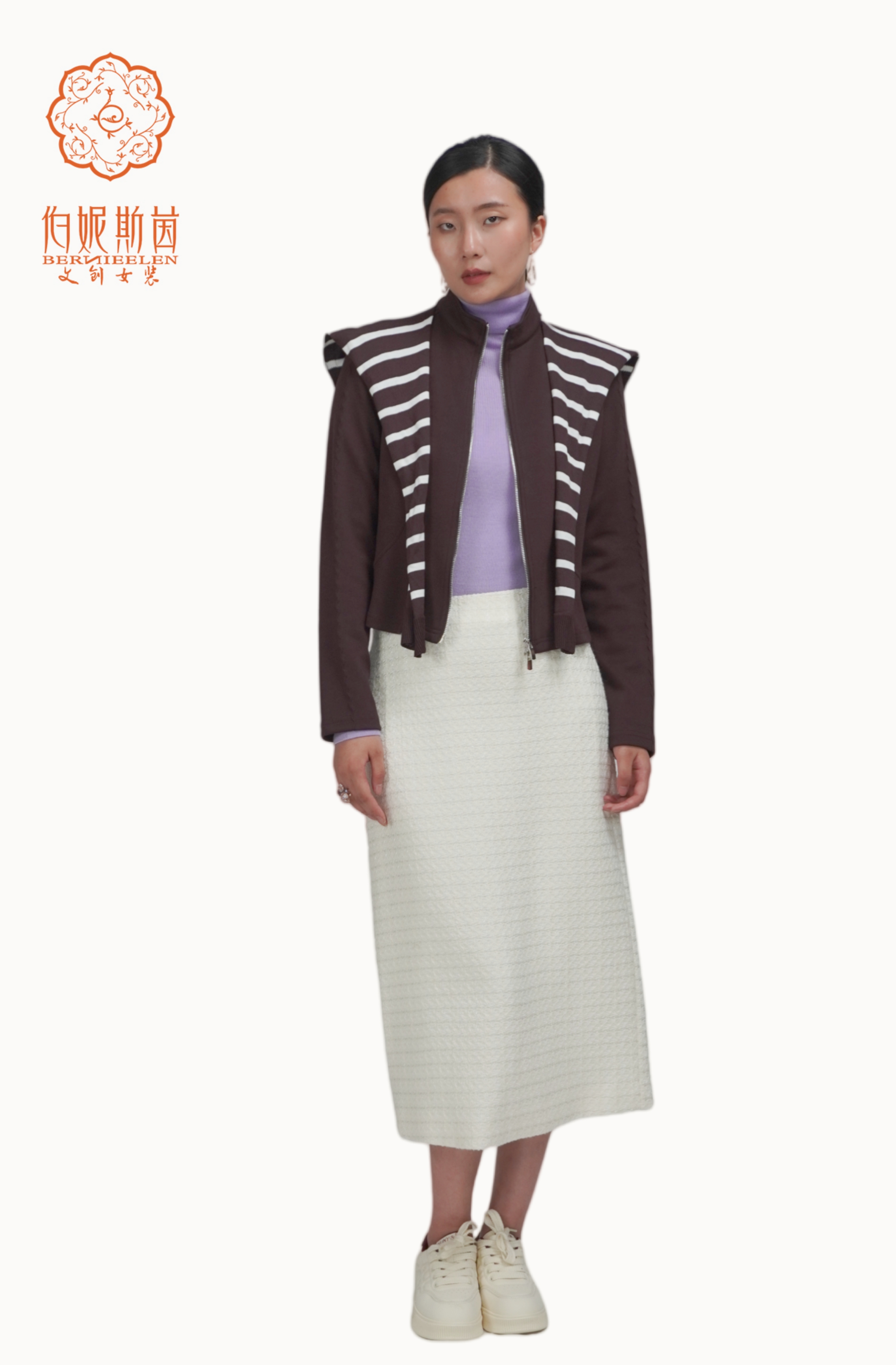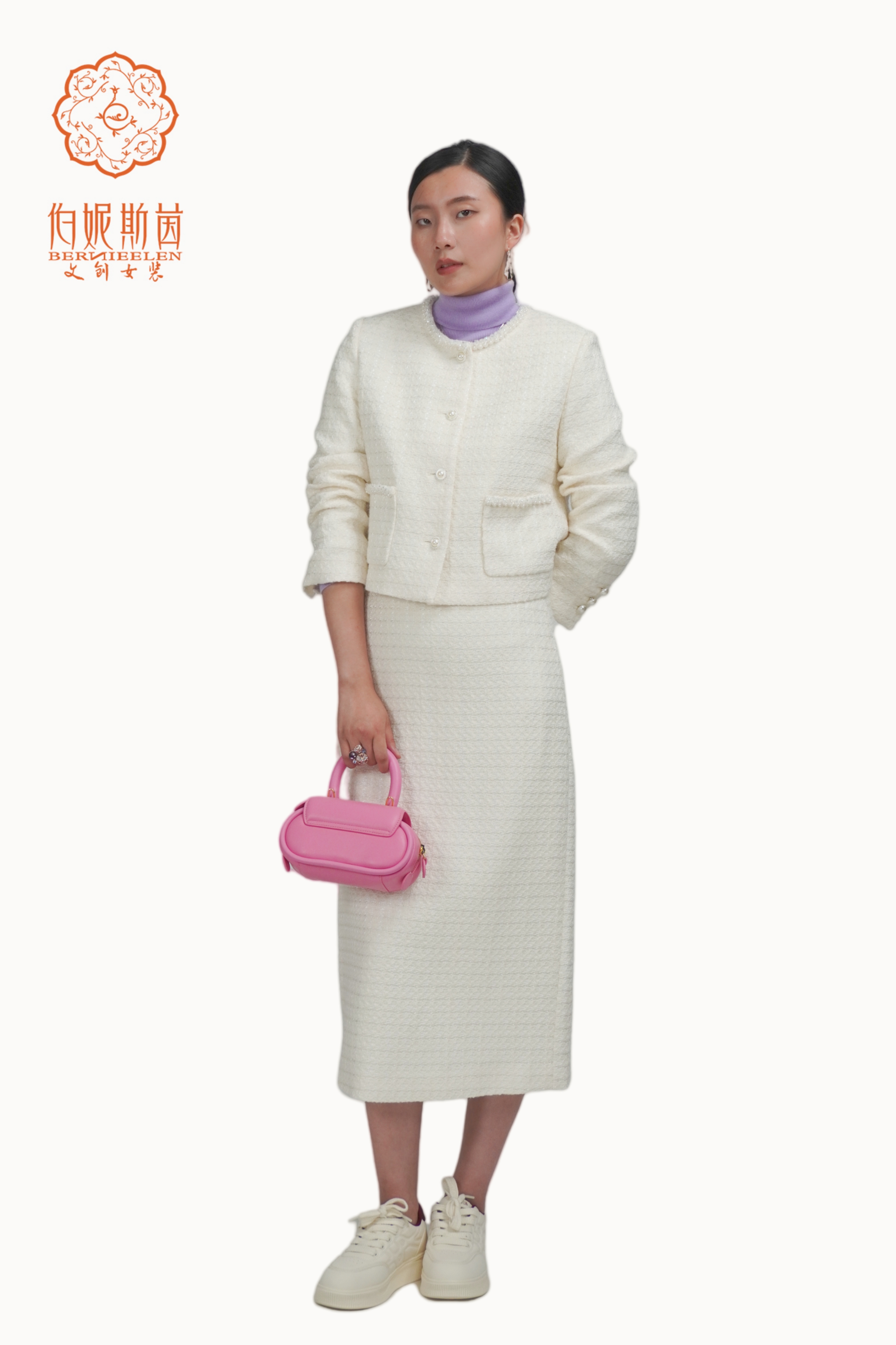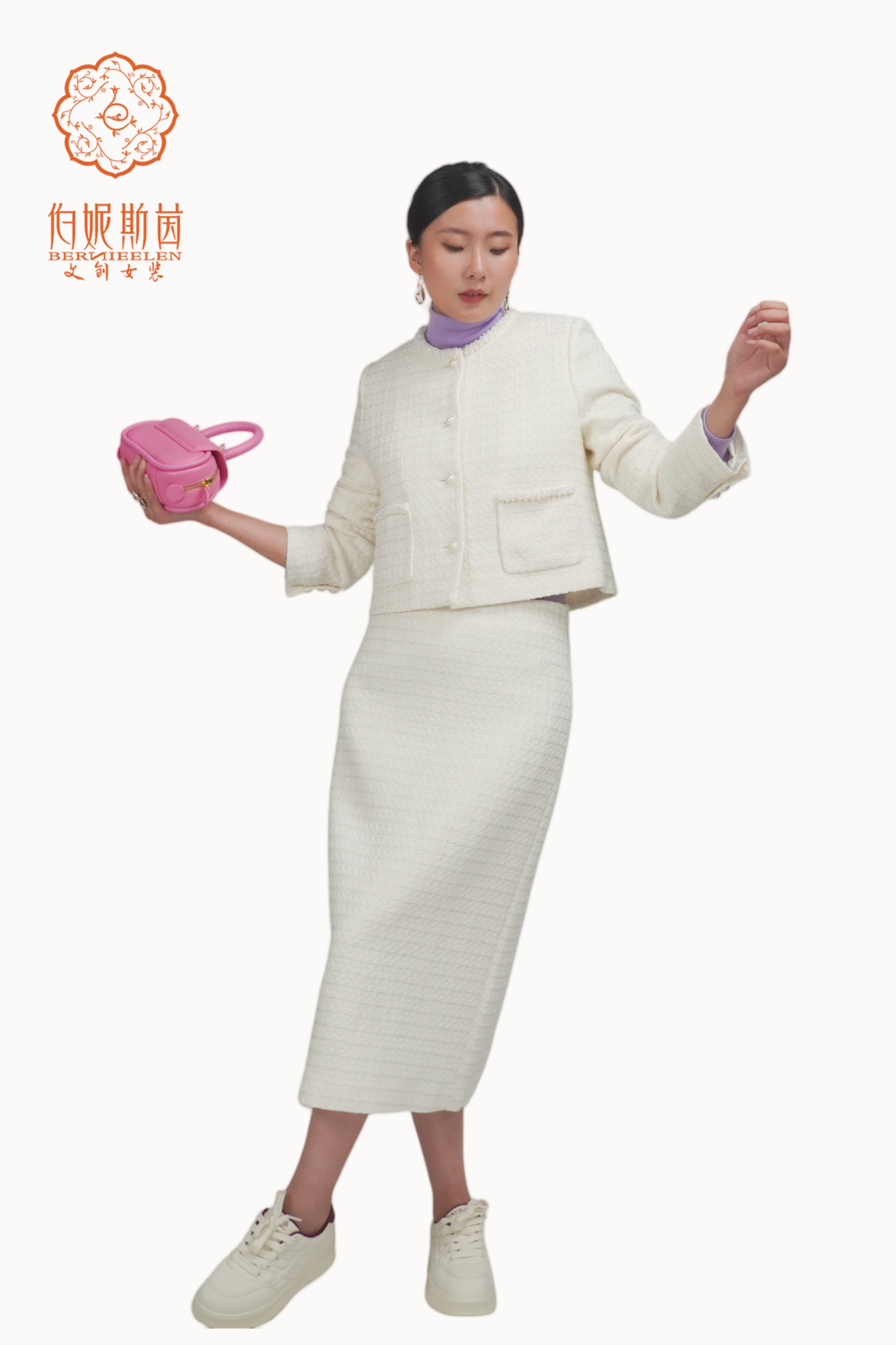 SZ3B55_凝脂色_半裙_春秋_高腰直筒包臀中长款小香风_高级女装_BERNIEELEN 伯妮斯茵