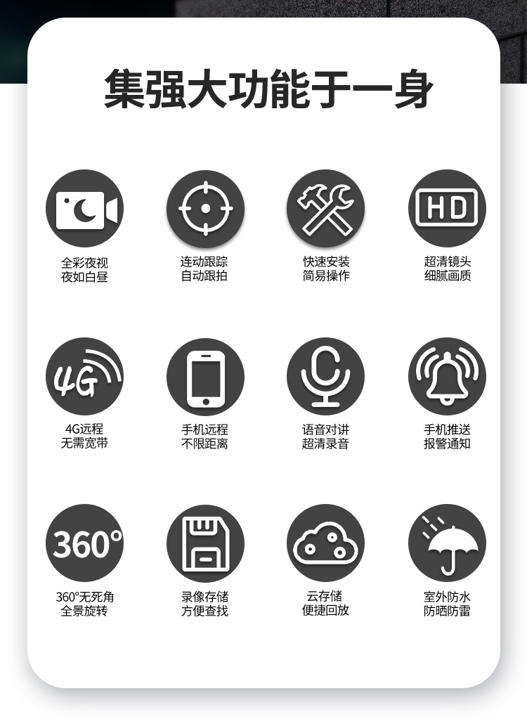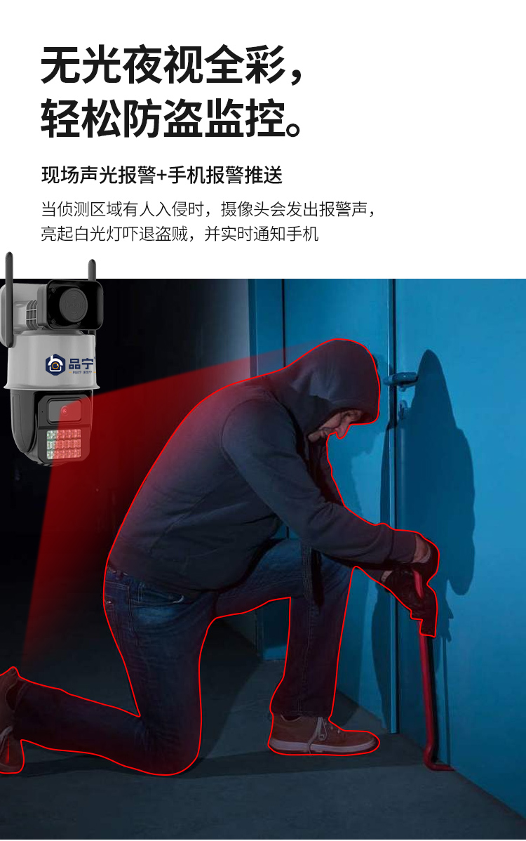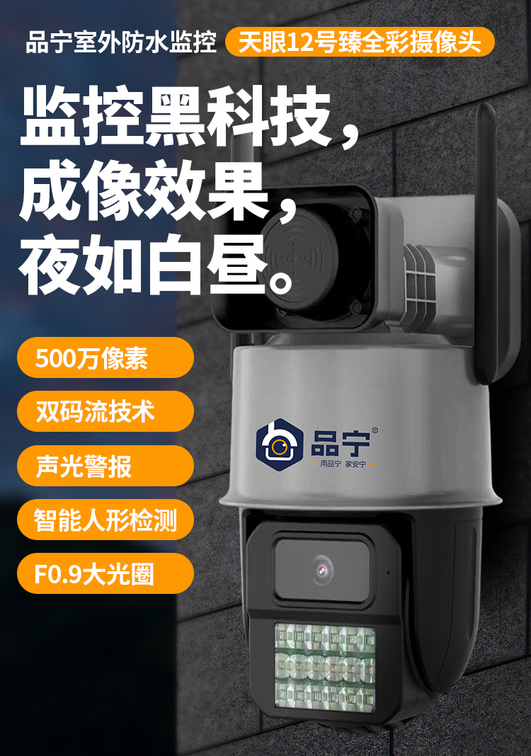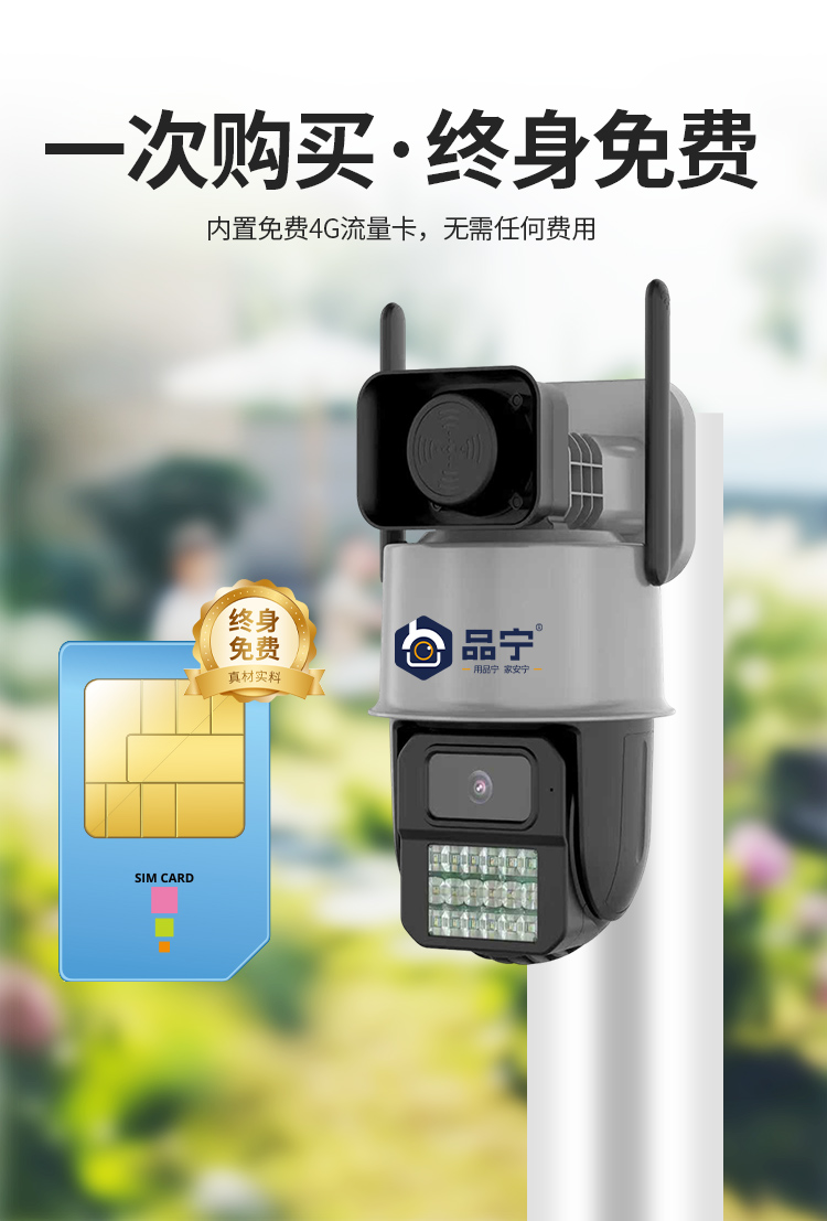 品宁天眼12号4G监控终身免流全彩夜视自动巡航