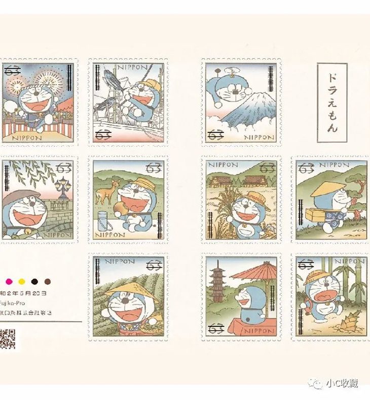它诞生在日本。所以,今年日本邮政官方特别发行了哆啦A梦50周年纪念邮票,设计采用怀旧风格,邮票为不干胶材质,满满的都是童年回忆!