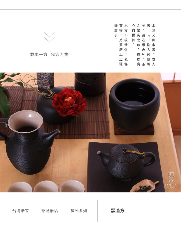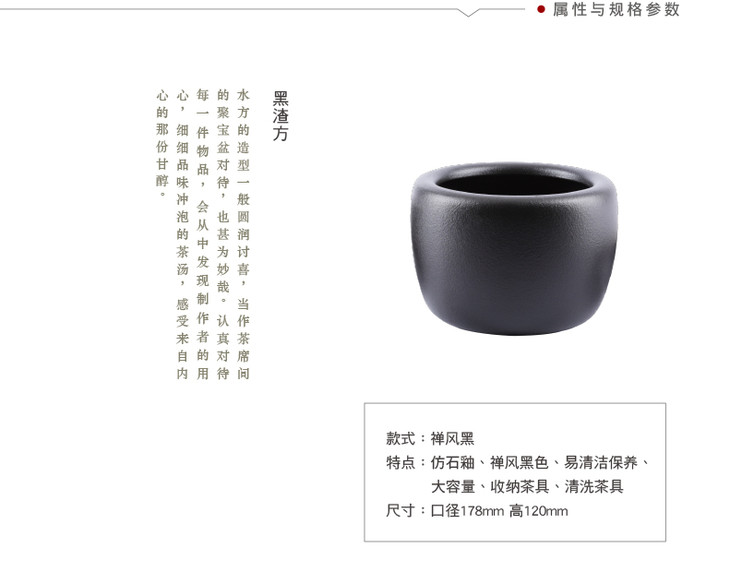 【LOHAS陆宝 禅风黑渣方】陆宝陶瓷 茶具配件茶道用品 水盂渣方陶瓷 茶渣桶水方【台湾陆宝】