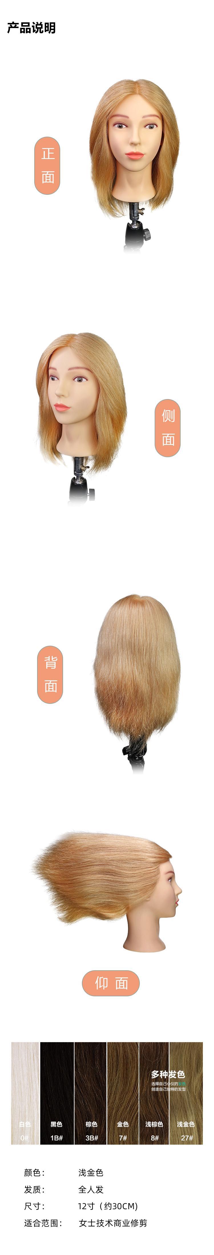 飞彩12寸金色全人发女士教练头