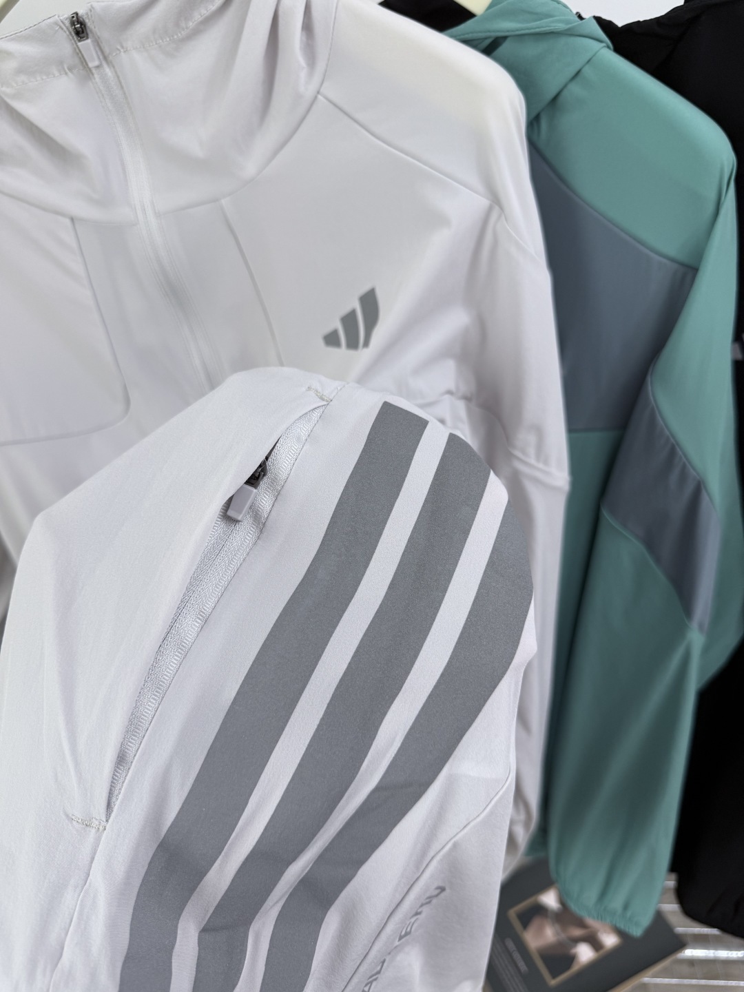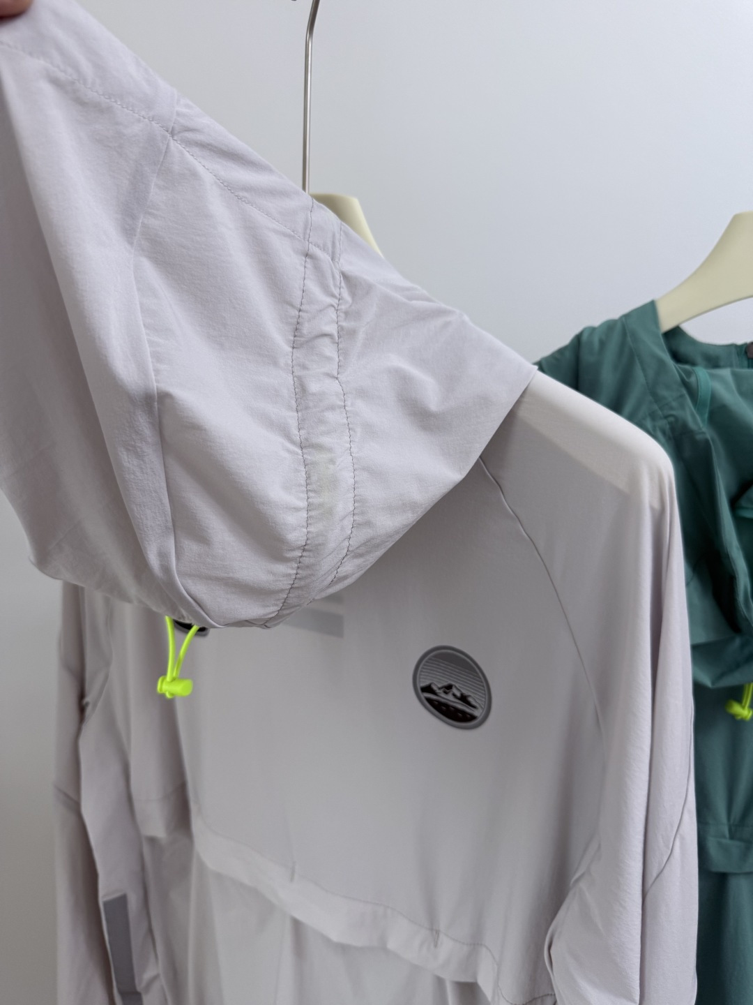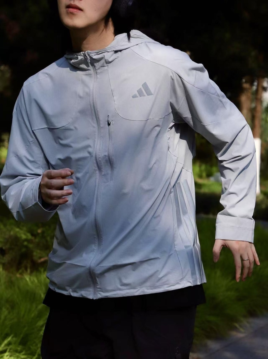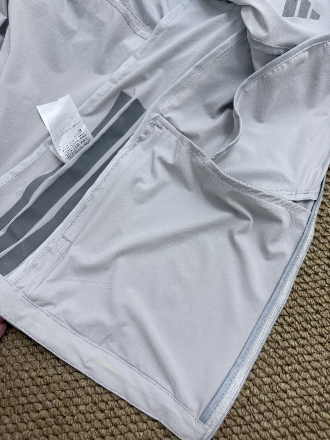 胸前阿滴主标经典反光标logo,内里网格棉陪衬不只是一件简单薄的外套,也是一件防紫外线皮肤衣,轻薄透气还不闷汗。