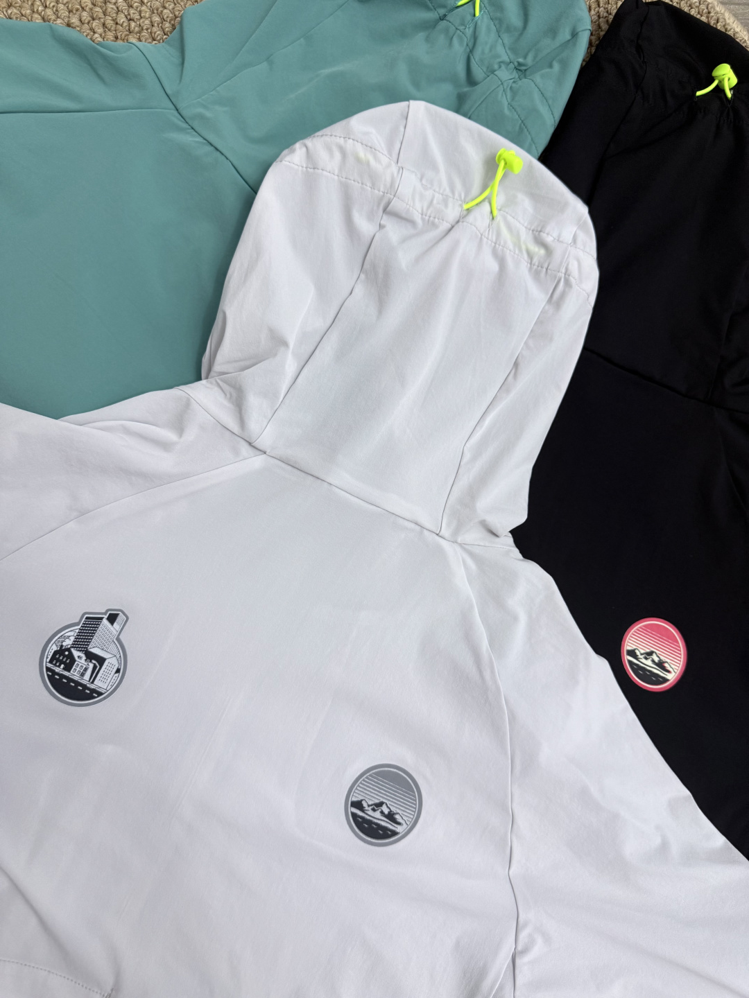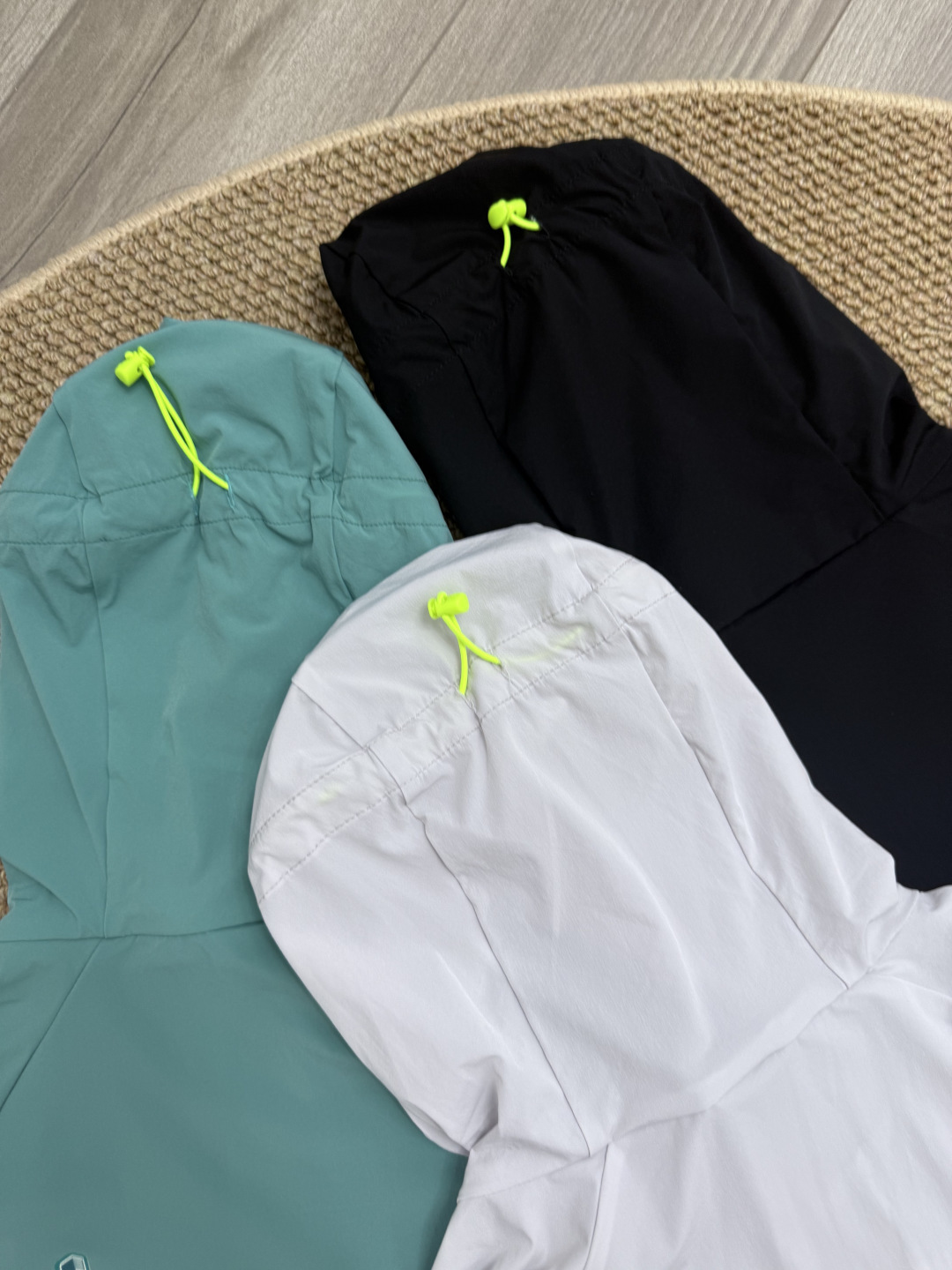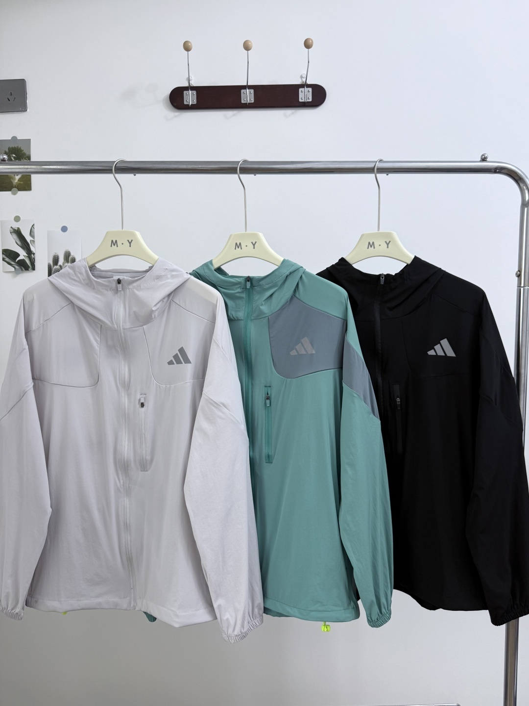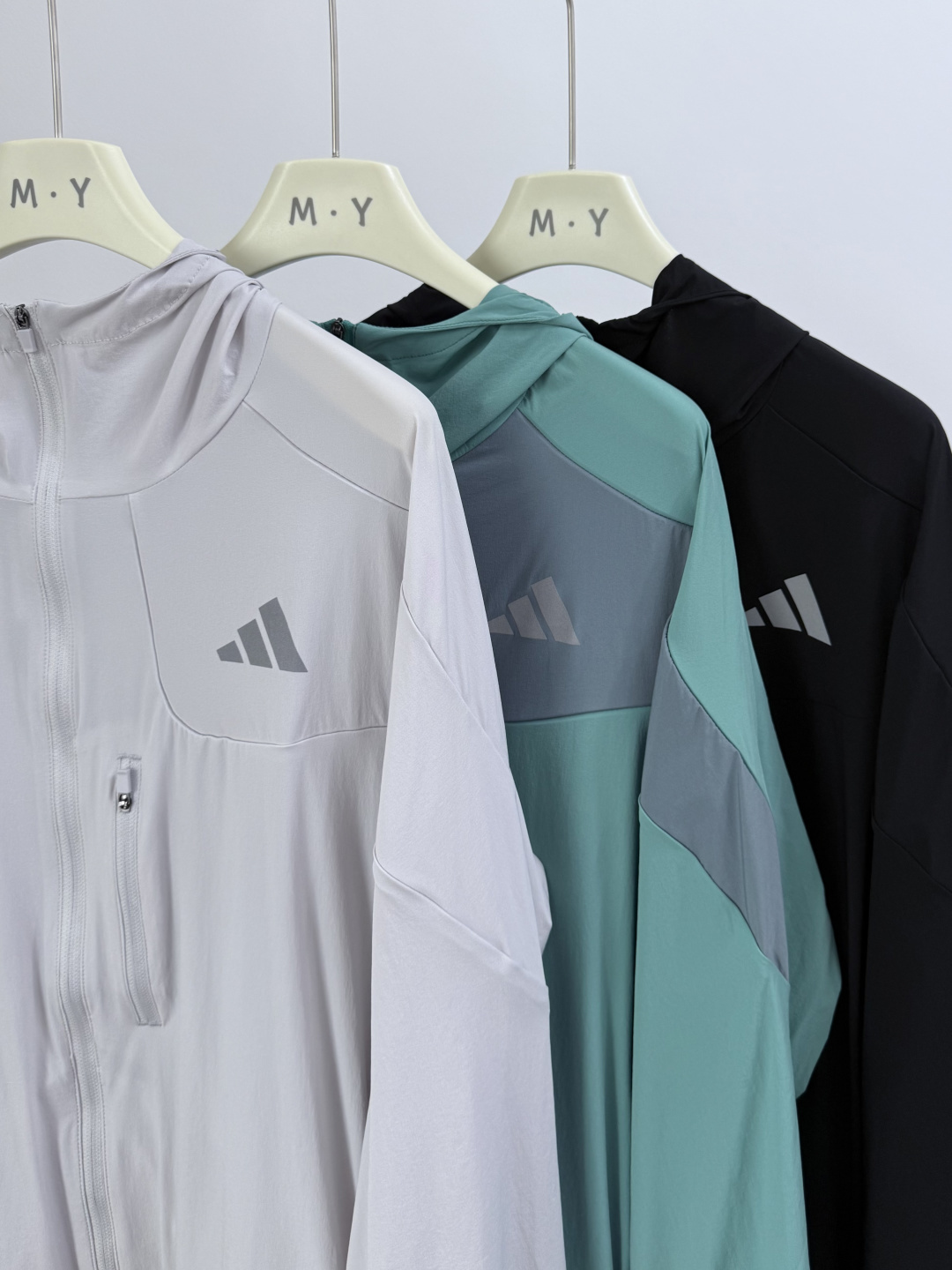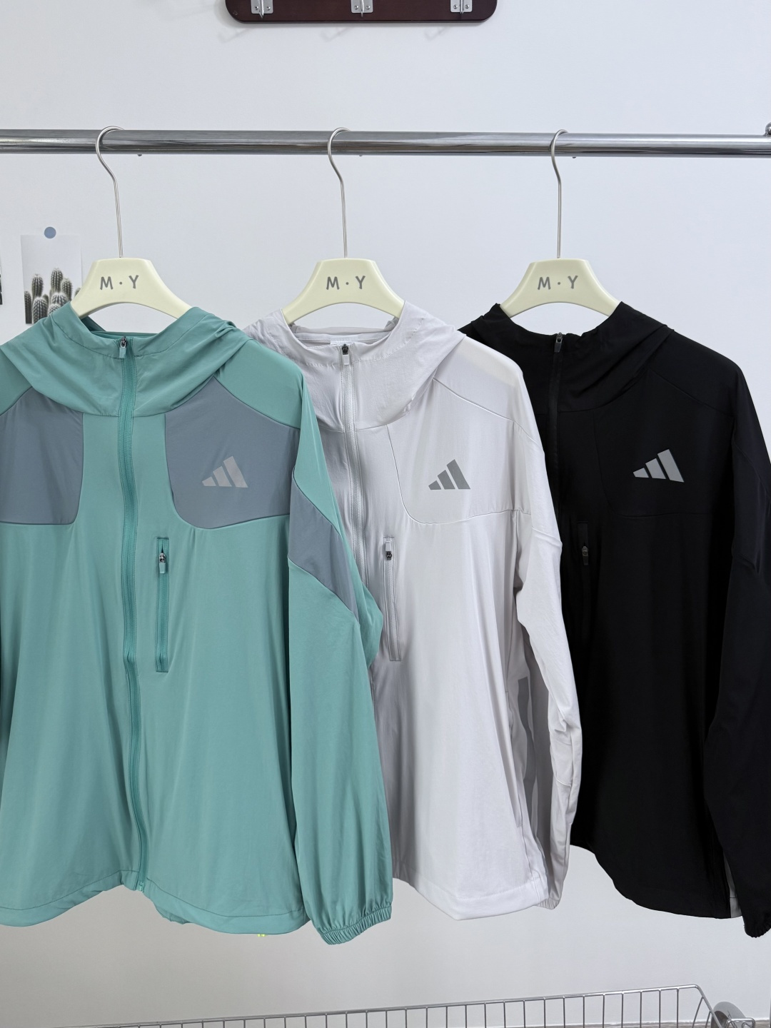 胸前阿滴主标经典反光标logo,内里网格棉陪衬不只是一件简单薄的外套,也是一件防紫外线皮肤衣,轻薄透气还不闷汗。