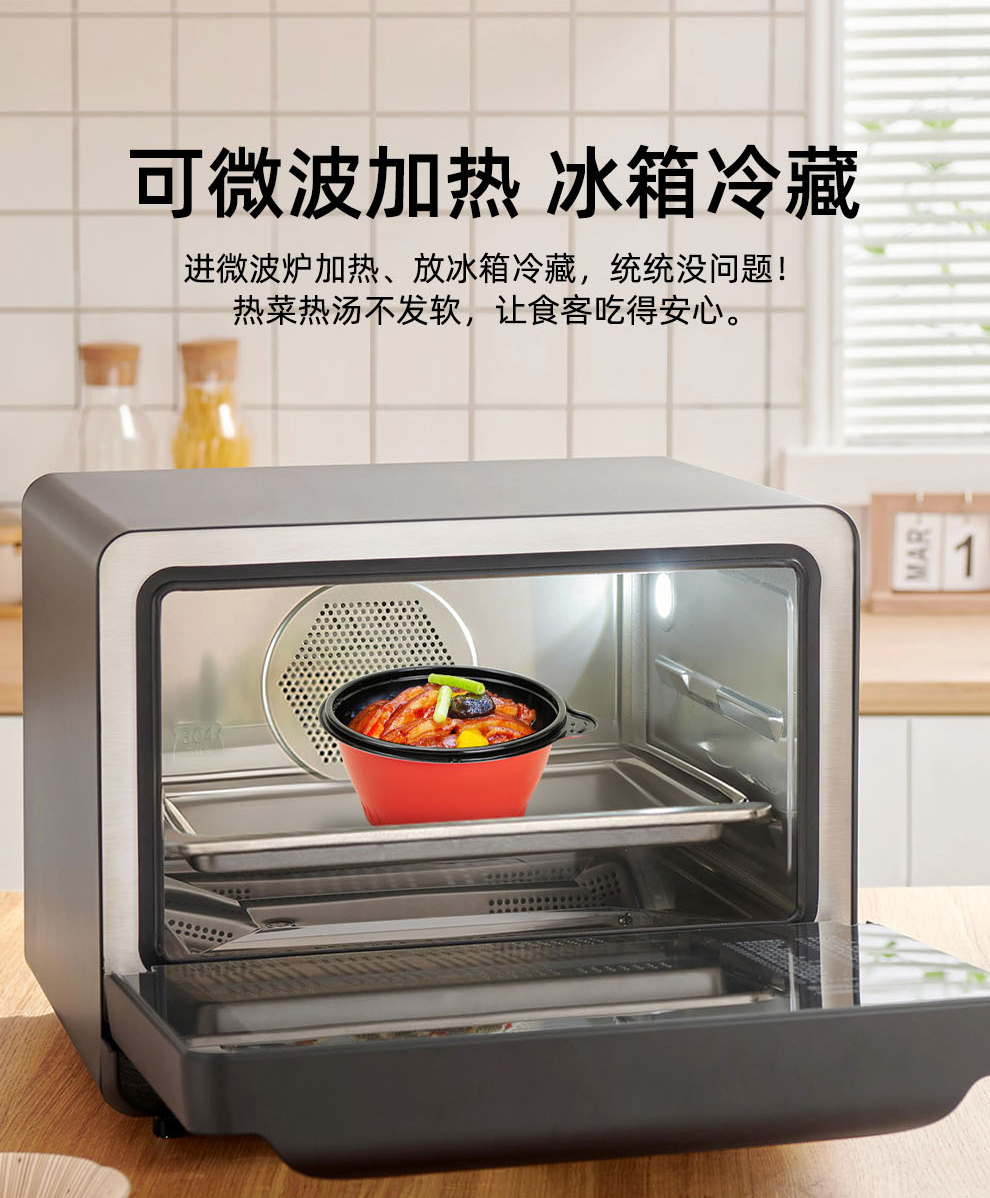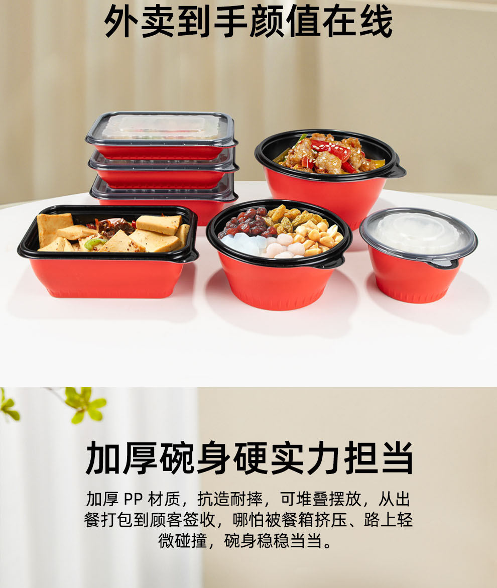 喇叭花一次性打包盒外卖餐盒防漏饭盒商用可微波加热免缠膜面碗