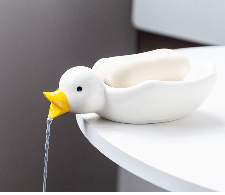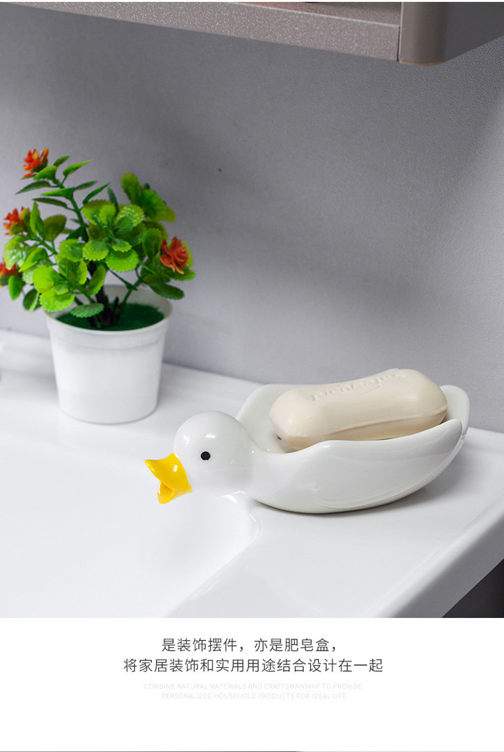 创意可爱陶瓷鸭子肥皂盒不积水2个装