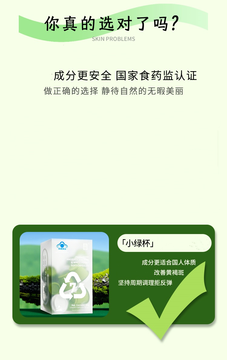 热卖中!!免疫低下 小绿杯当归白芍软胶囊 蓝帽双批文认证 辅助增强免疫力 辅助改善黄褐斑 甄选地道当归 白芍 红花 珍珠粉 吃出健康透亮自然肌