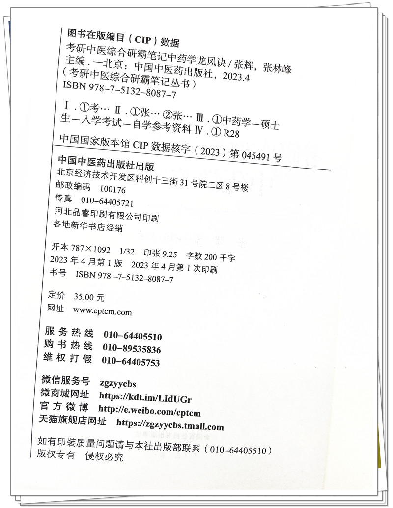书名:2024年考研中医综合研霸笔记中药学龙凤诀