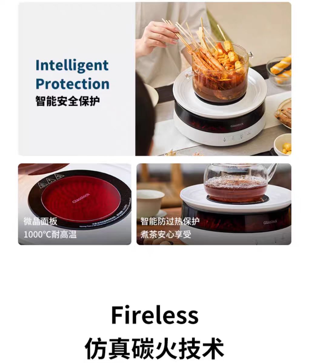4楼Eubelle欧蓓 Glasslock围炉煮茶器GE-HI03 白色/灰色 电茶炉全玻璃养生壶 吊牌价:439元 活动价:359元
