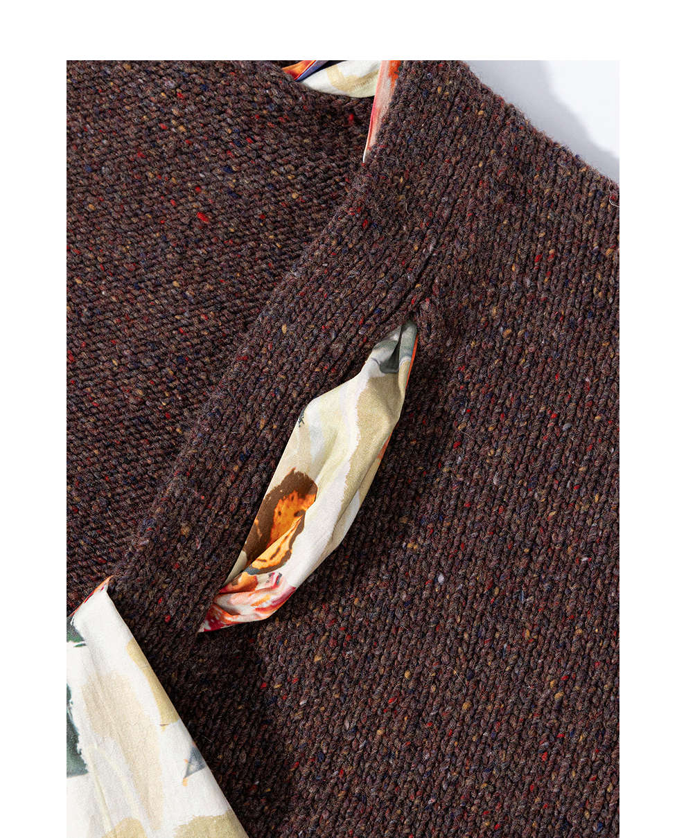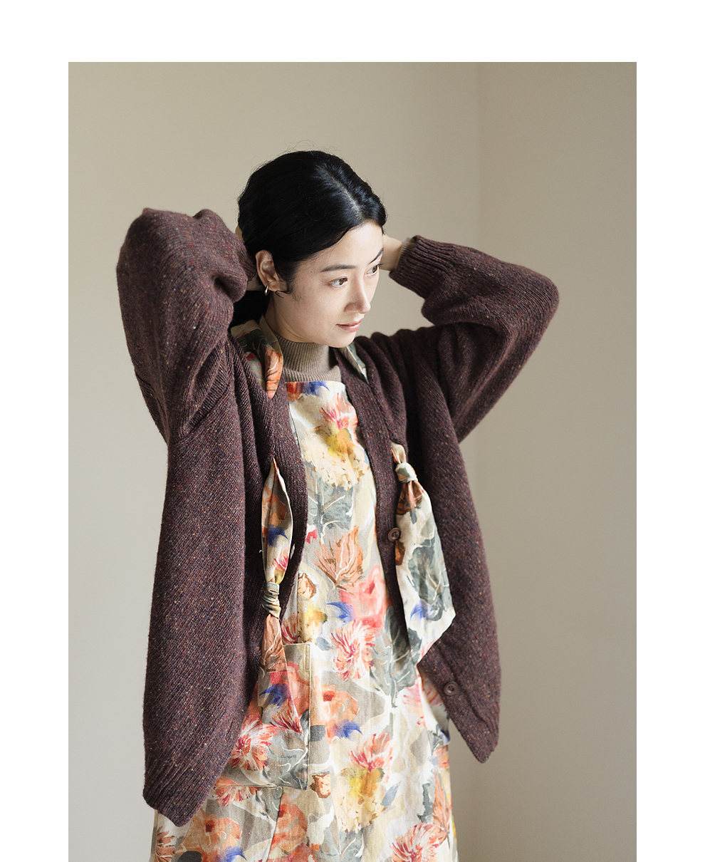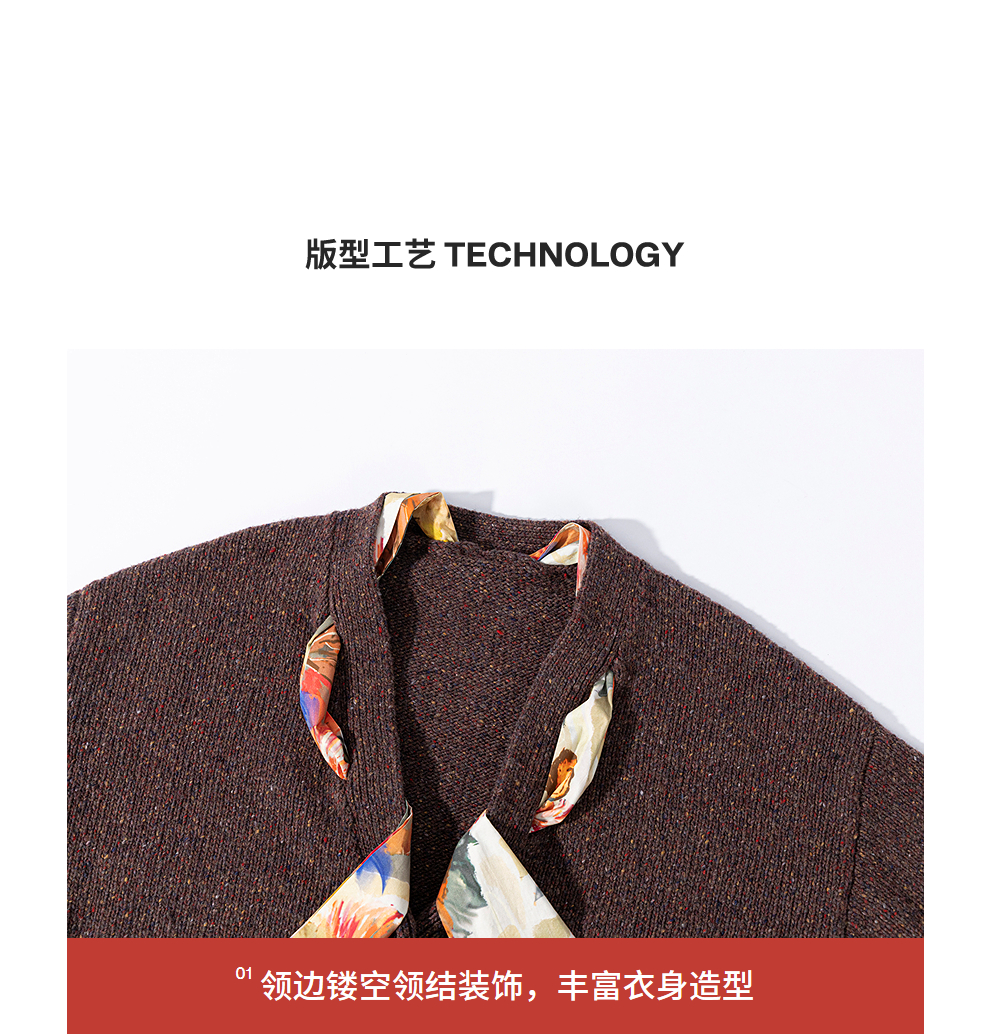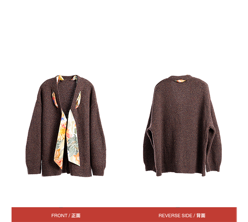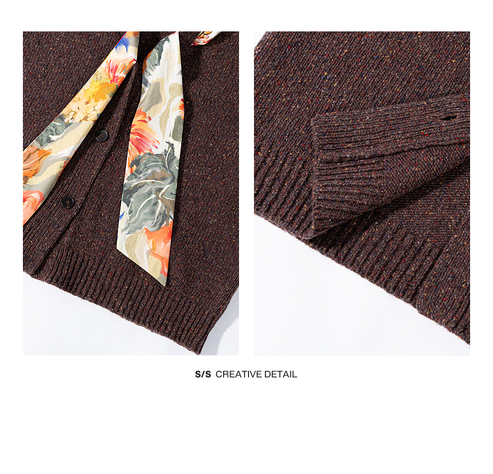 绽放843朵/彩点羊毛宽松粗针领结装饰开襟毛针织衫女新款加厚开衫