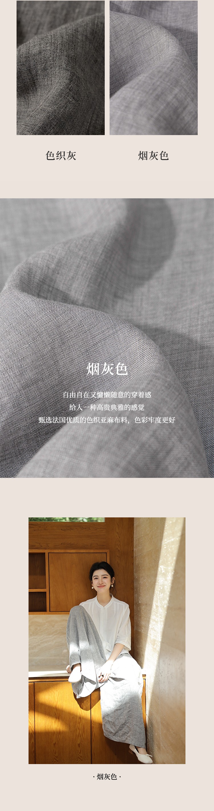 新绽放582朵【黑白灰系列·山本裤】高级灰法国亚麻色织宽松阔腿裤